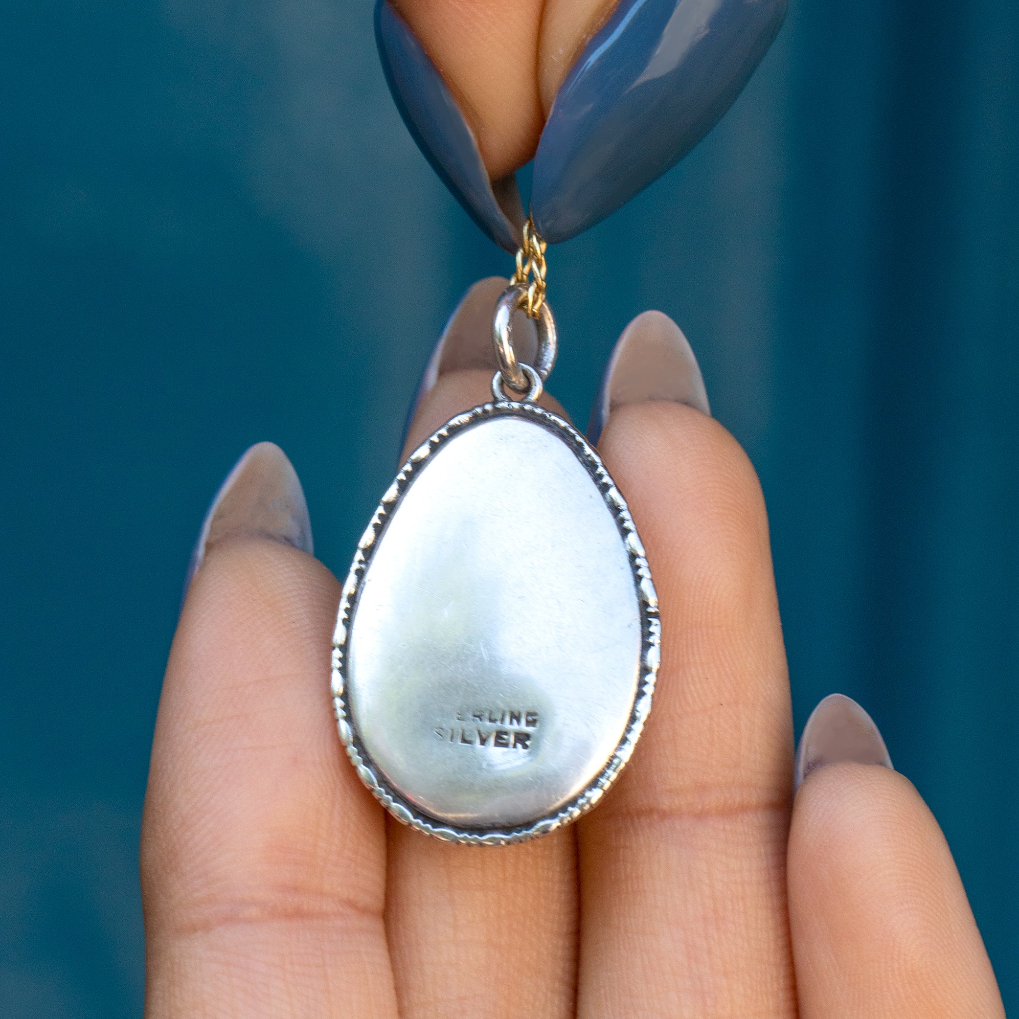 STAMPS: 'Sterling Silver' at the back of the pendant.