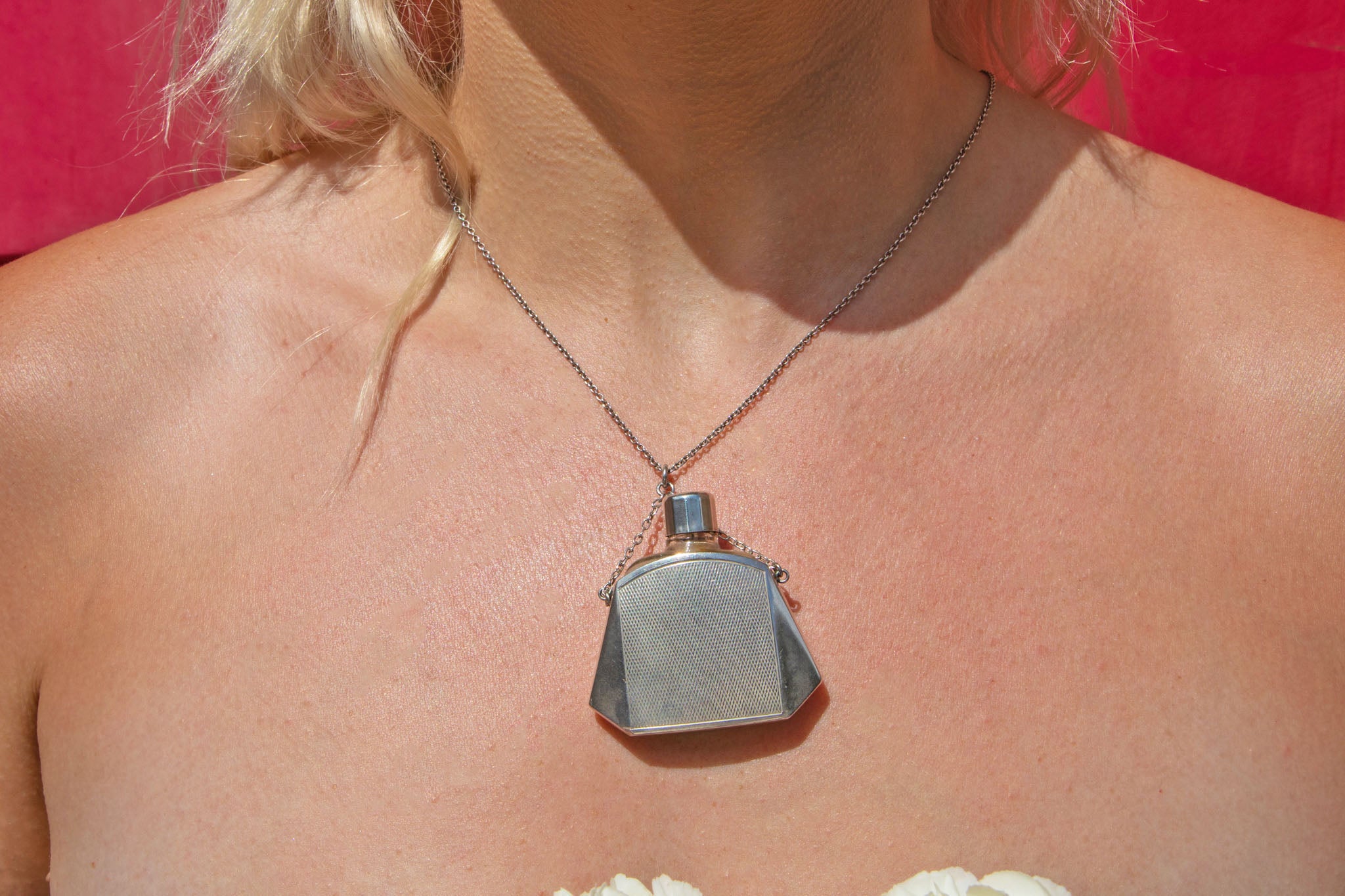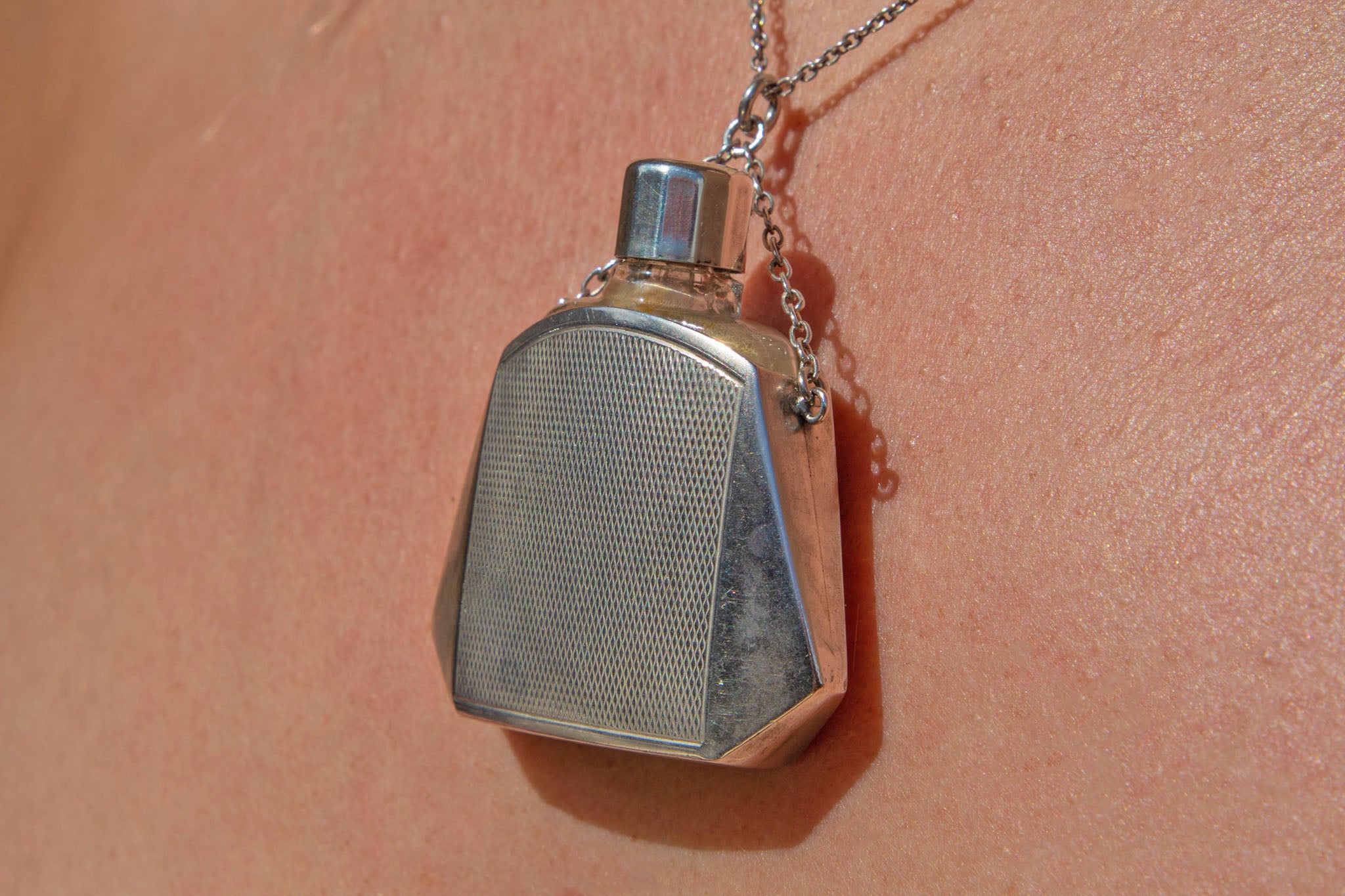 The lid on this antique perfume bottle unscrews so you can easily fill her up with your favourite scent. We can vision her on a super long silver chain, against a crisp white shirt or chunky knit!
