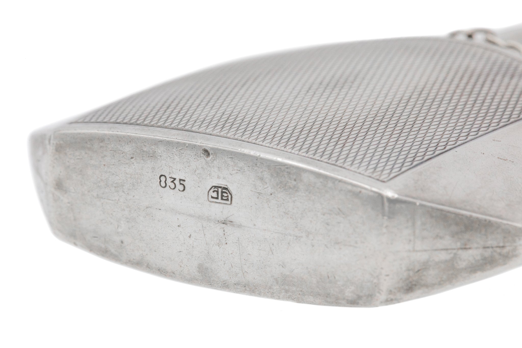 STAMPS & HALLMARKS: "835" for 835 Silver, unidentified maker's mark on base of bottle, likely German.