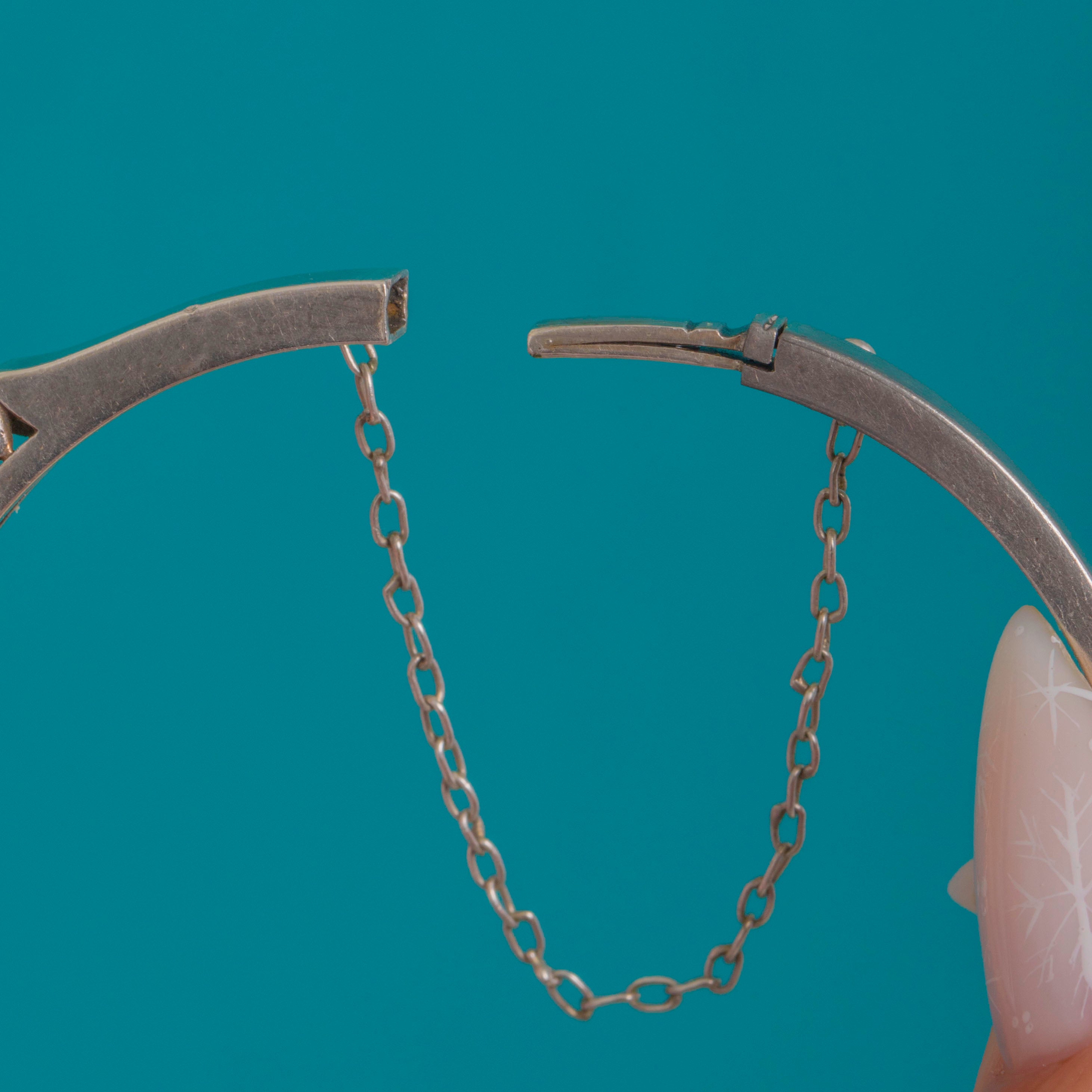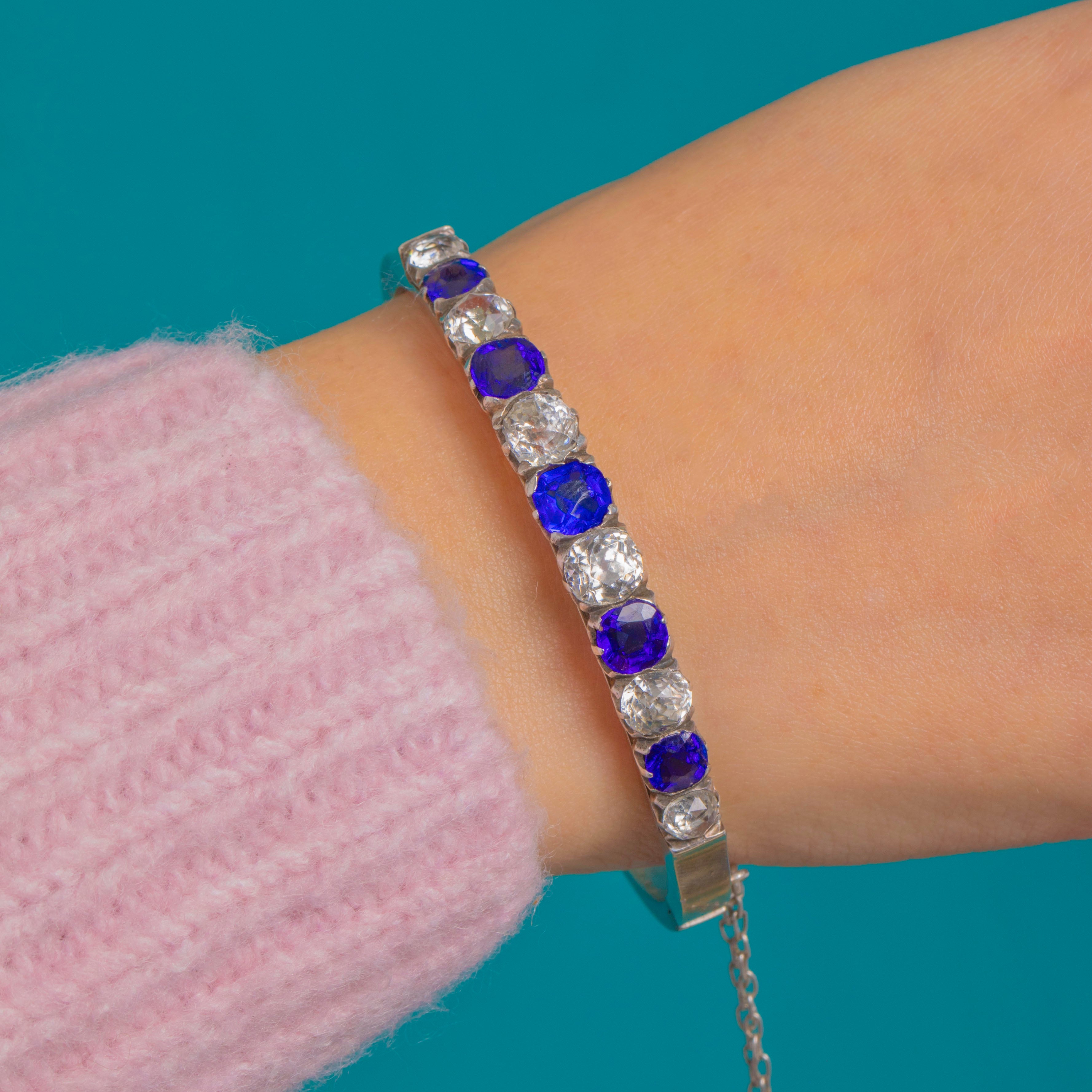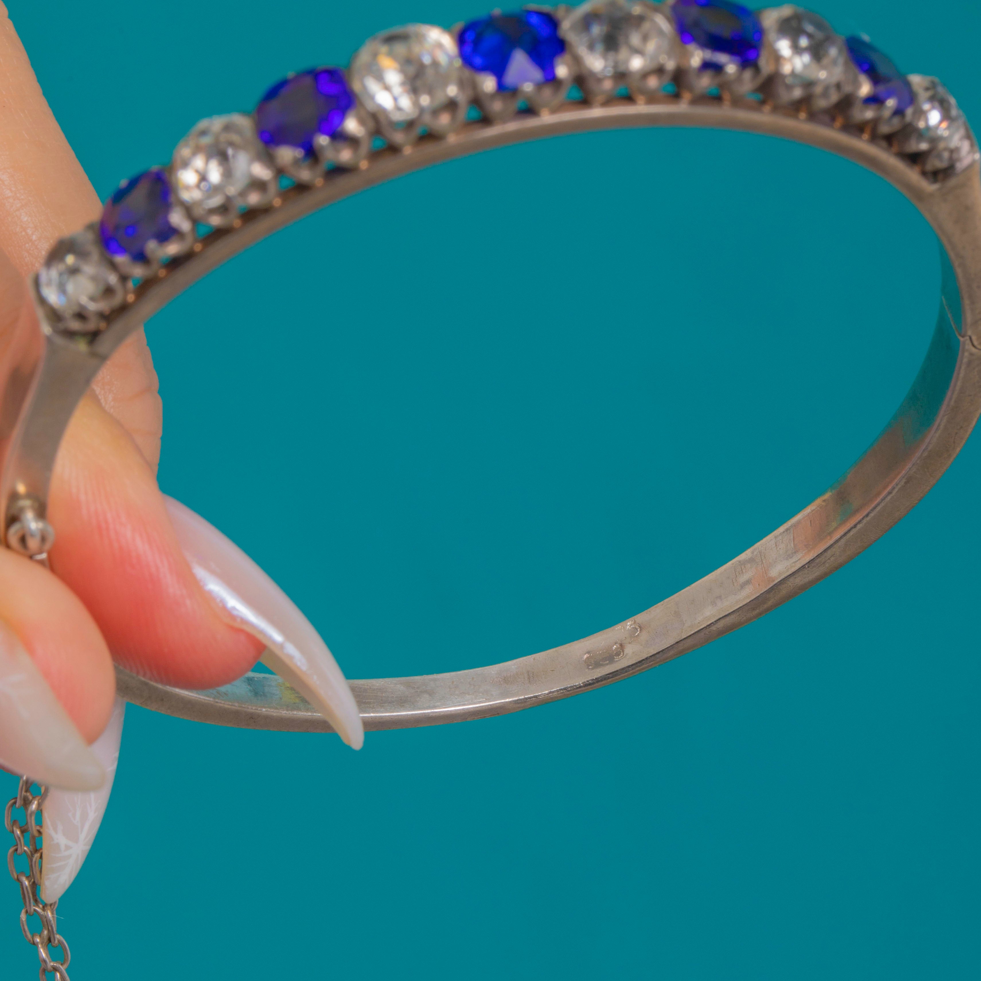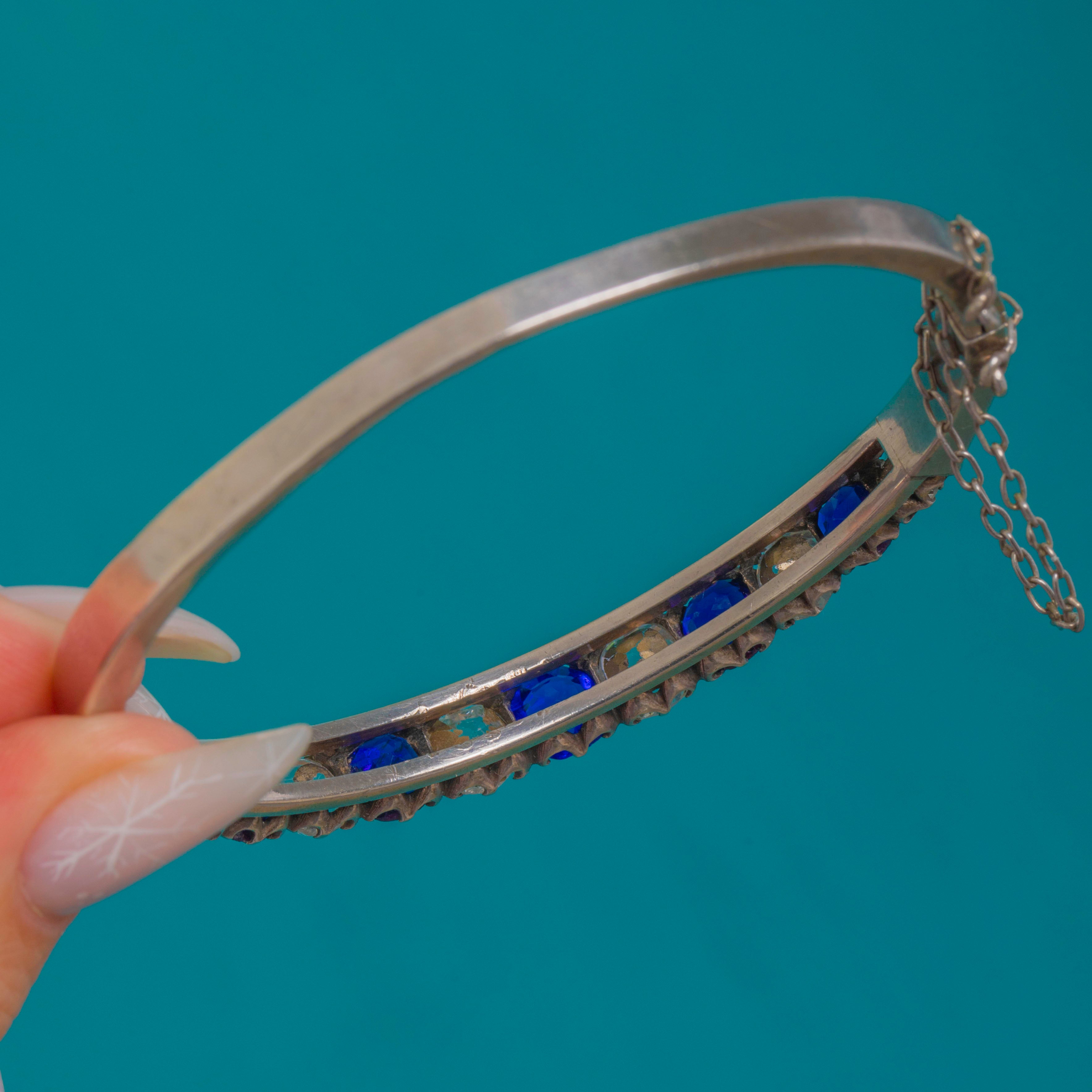 Art Deco Sterling Silver Blue & White Paste Bangle