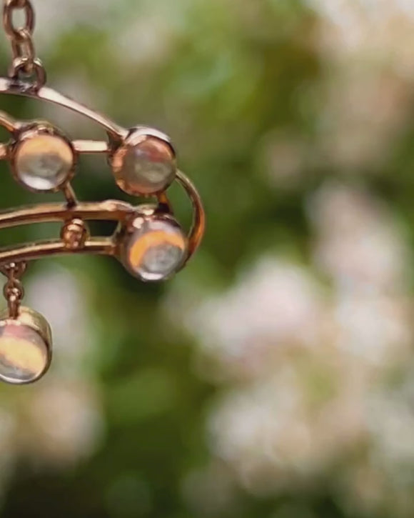 This antique necklace has been crafted from a bright 9ct Gold and has a generous helping of gleaming Moonstones, with a combined weight of 2.80ct, creating an eye-catching and alluring piece that will set your style apart from the crowd!