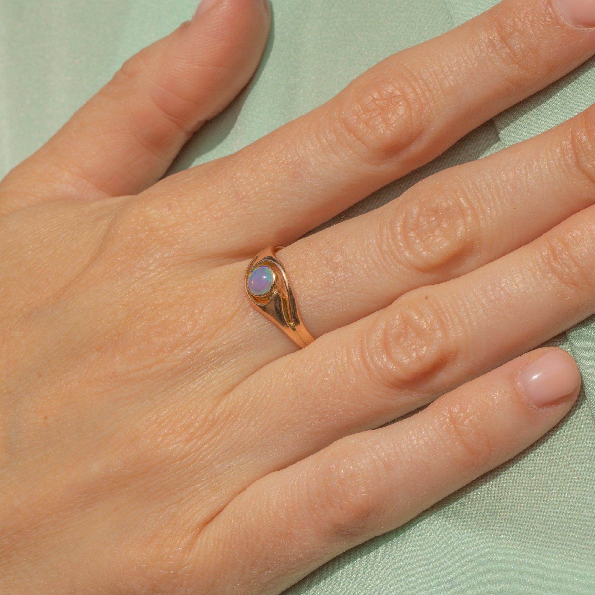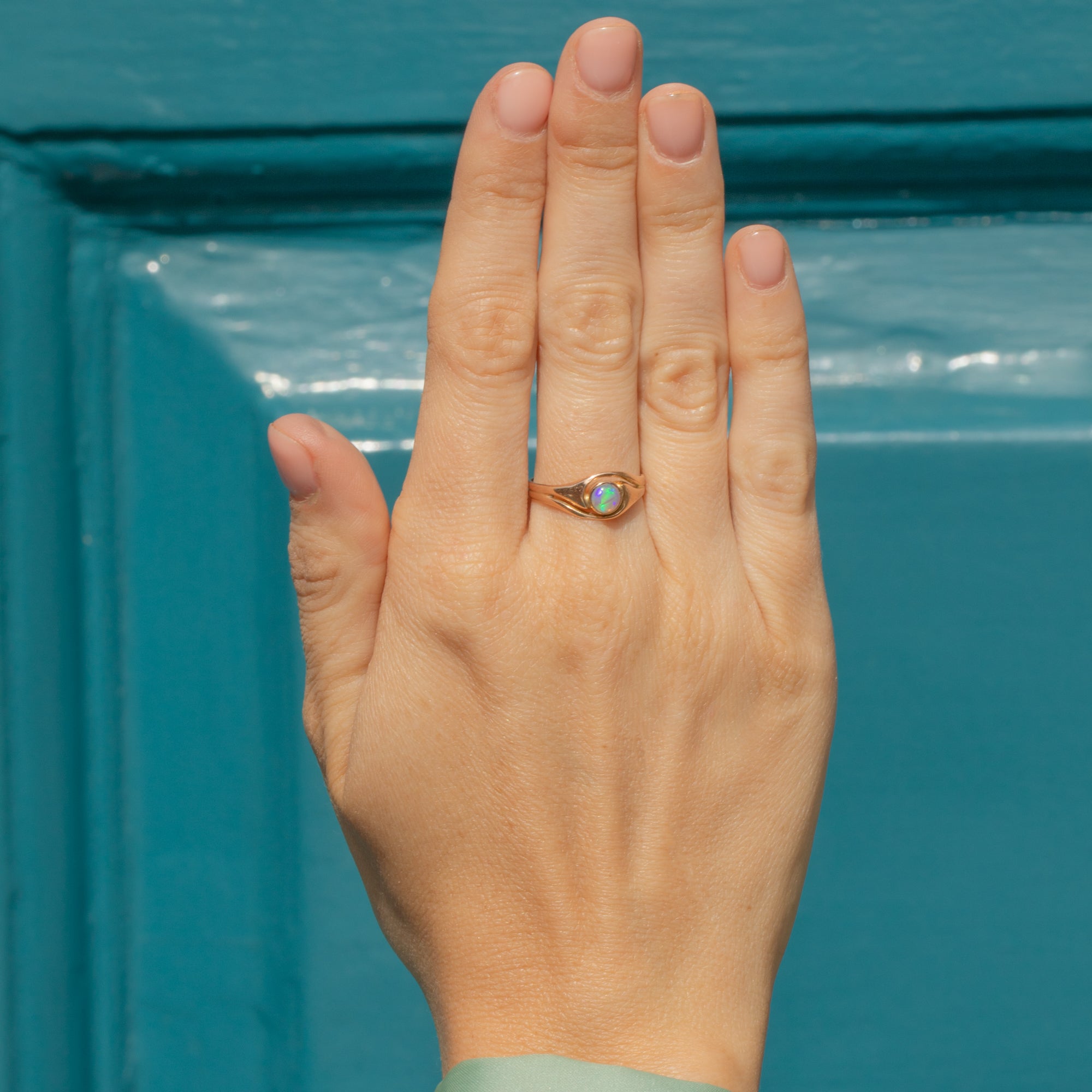 Crafted from warm 9ct Gold, this Art Nouveau 9ct Gold Opal twist ring has a dynamic shape quintessential of the period known for its asymmetry and abstractness.