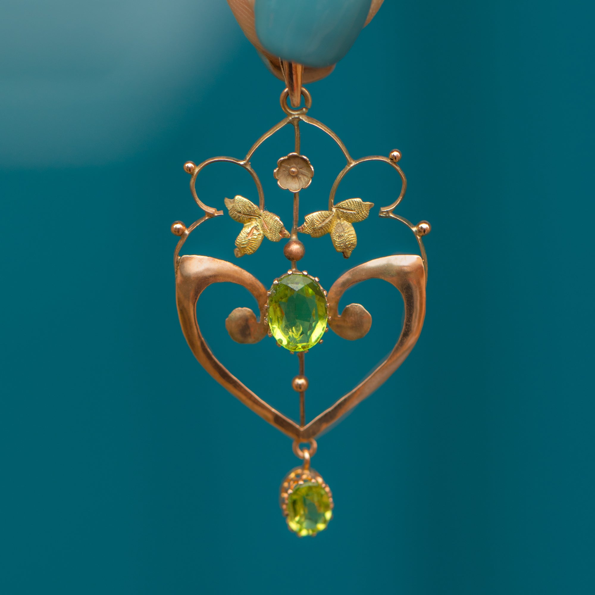 Art Nouveau 9ct Gold Peridot Lavalier Charm
