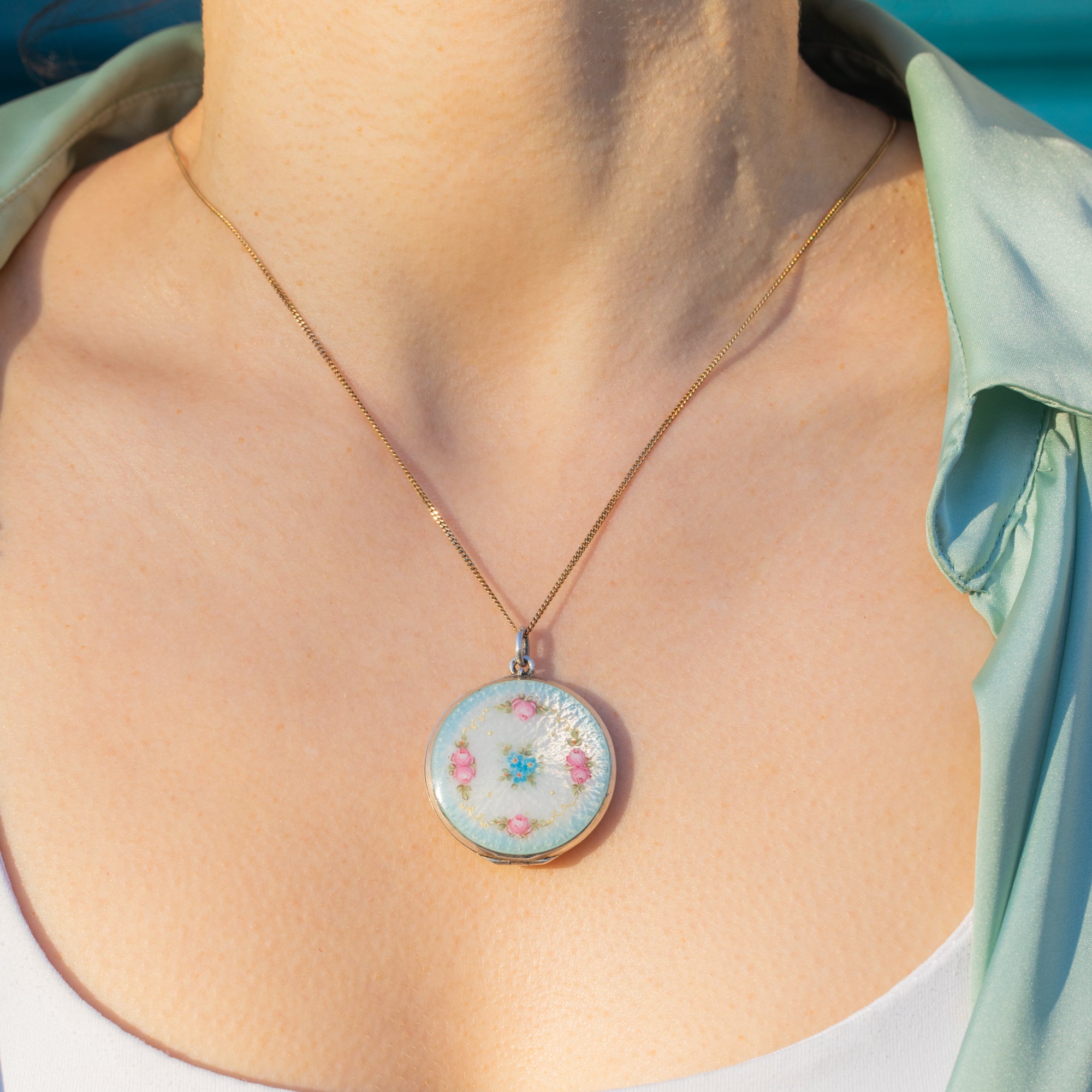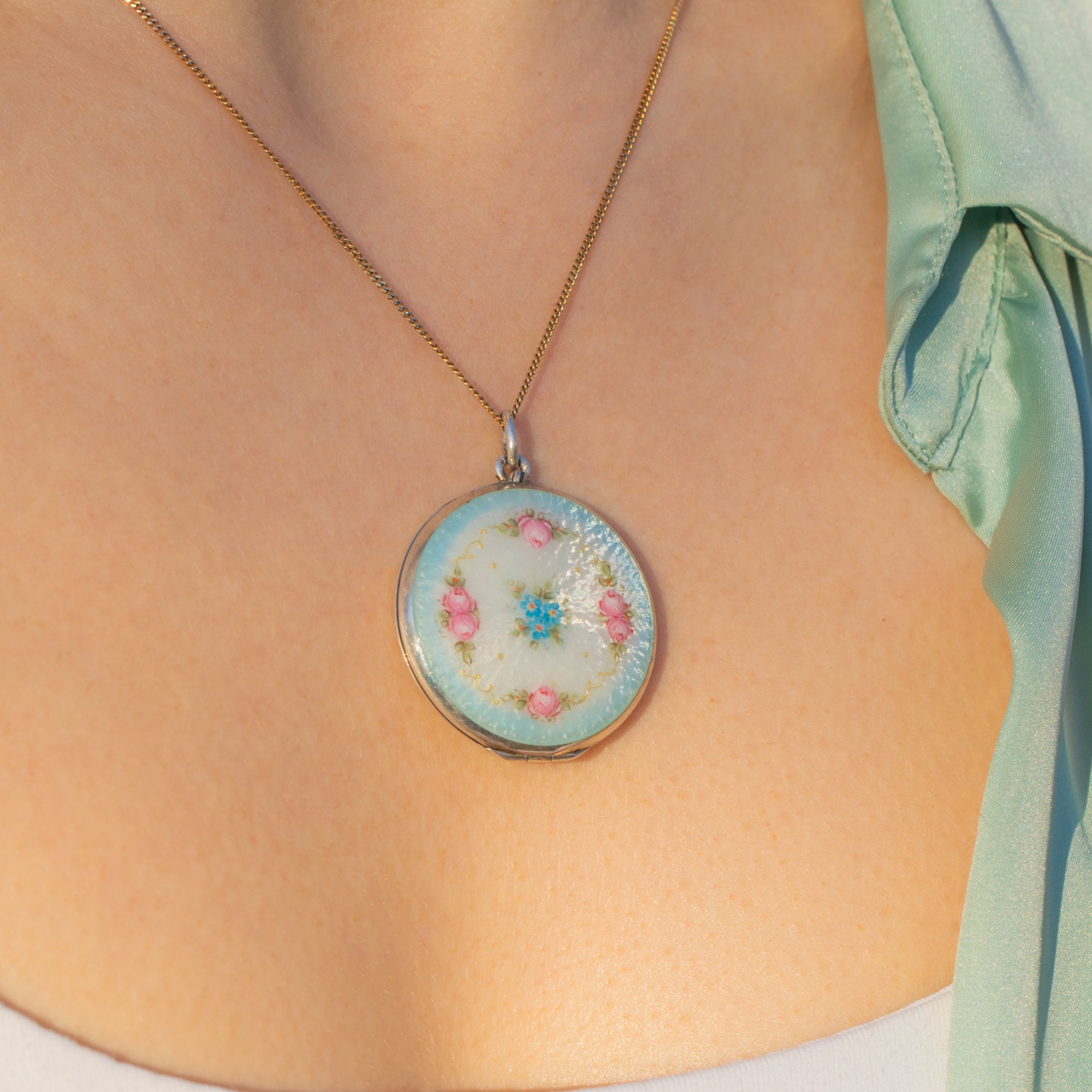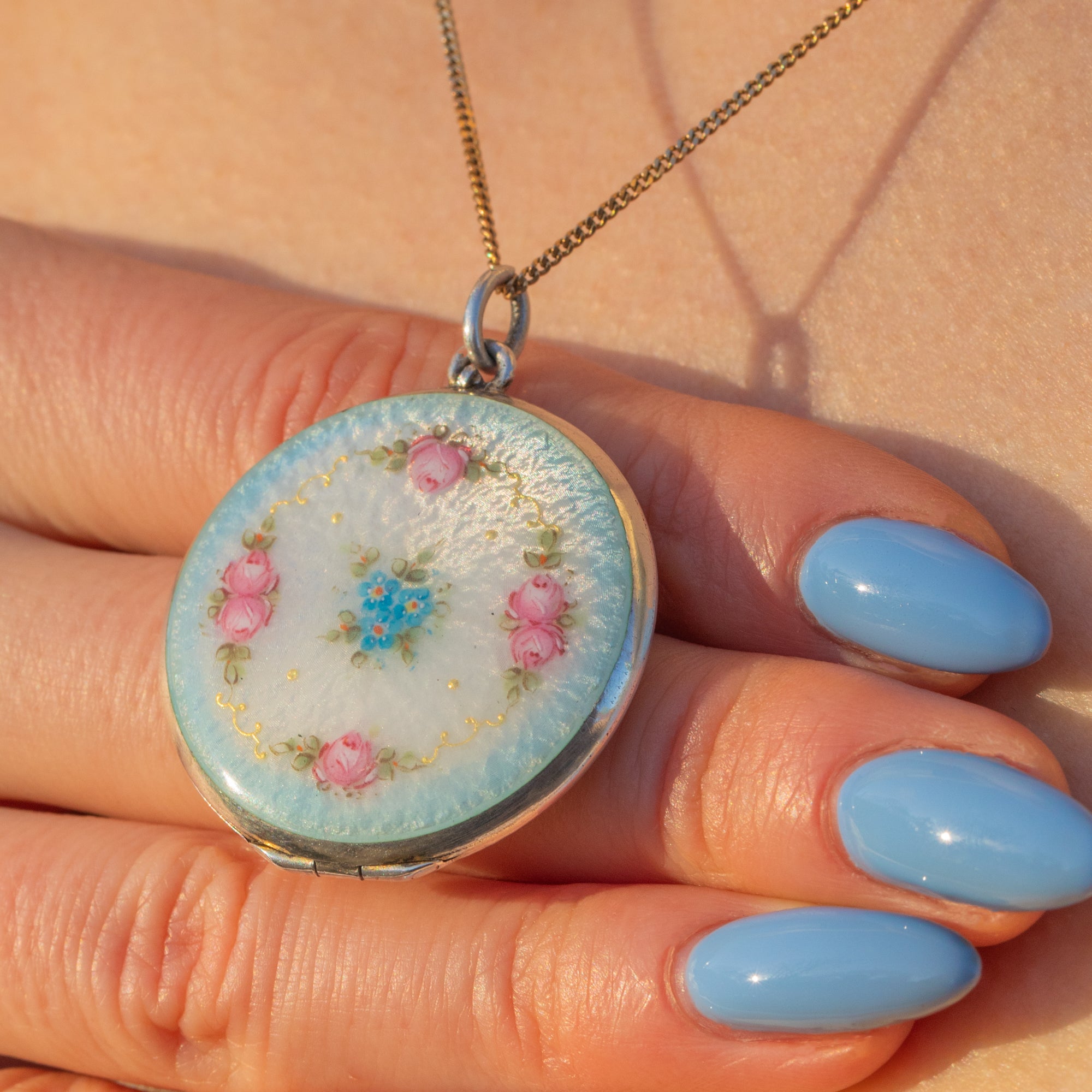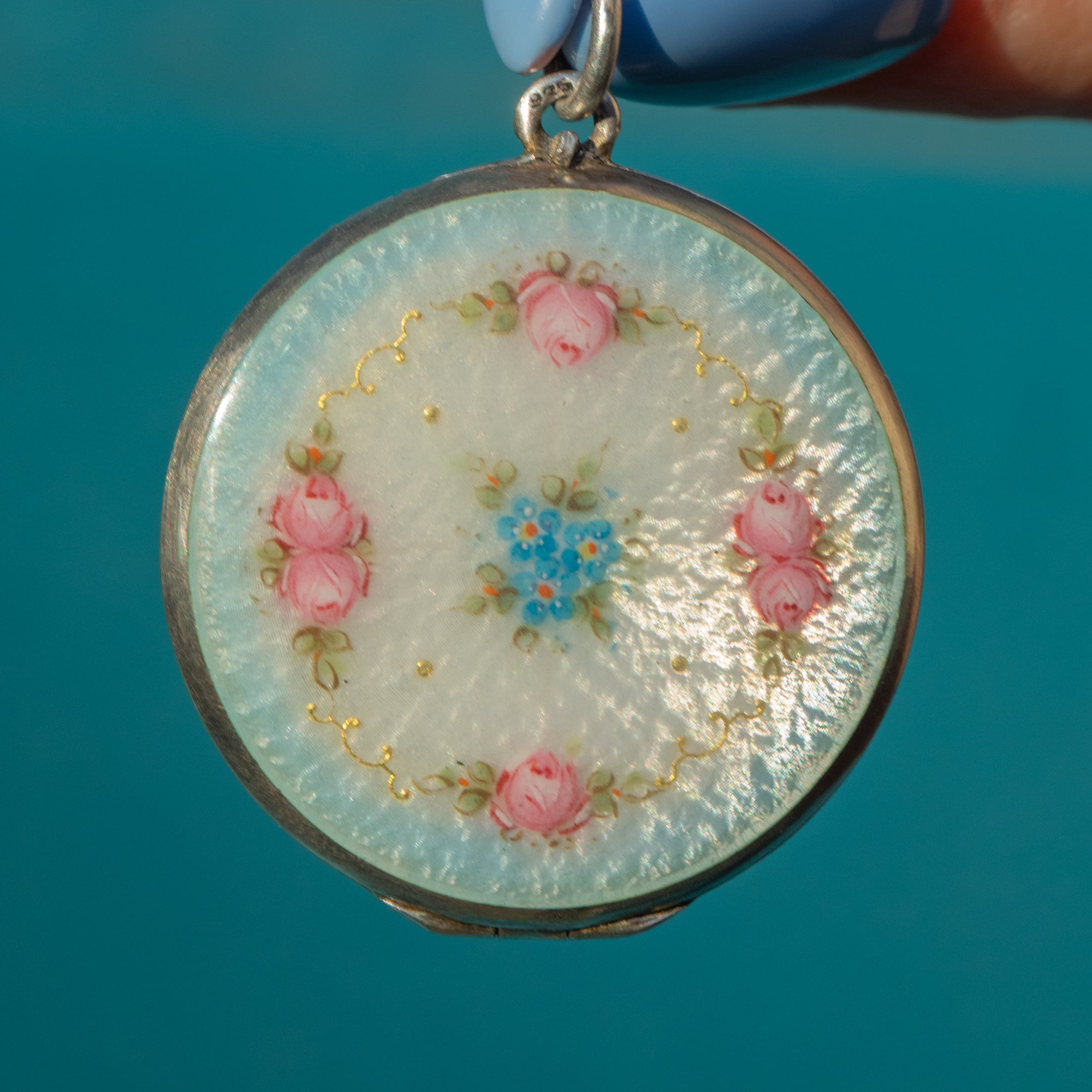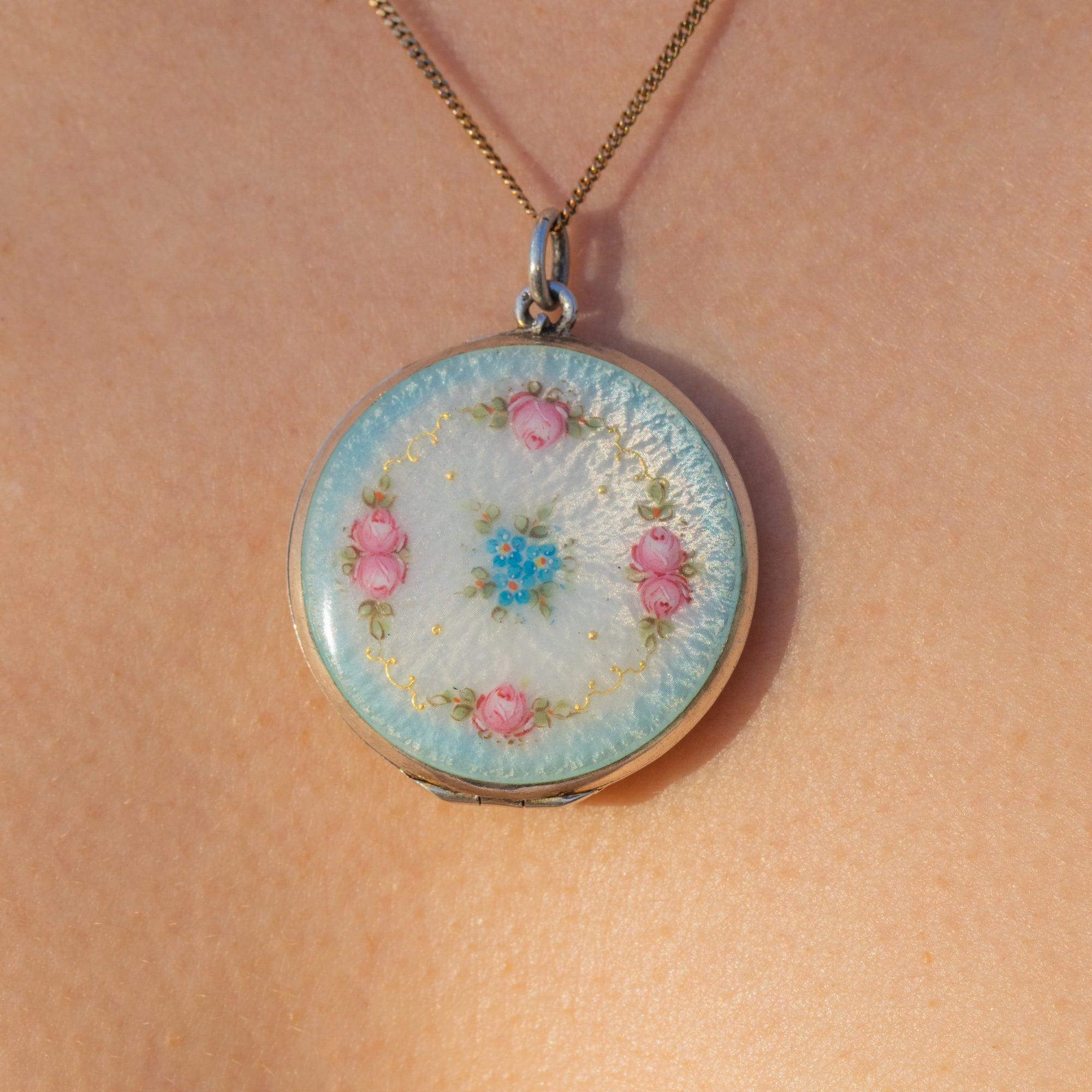 Art Nouveau Roses & Forget-Me-Not Guilloche Enamel Locket