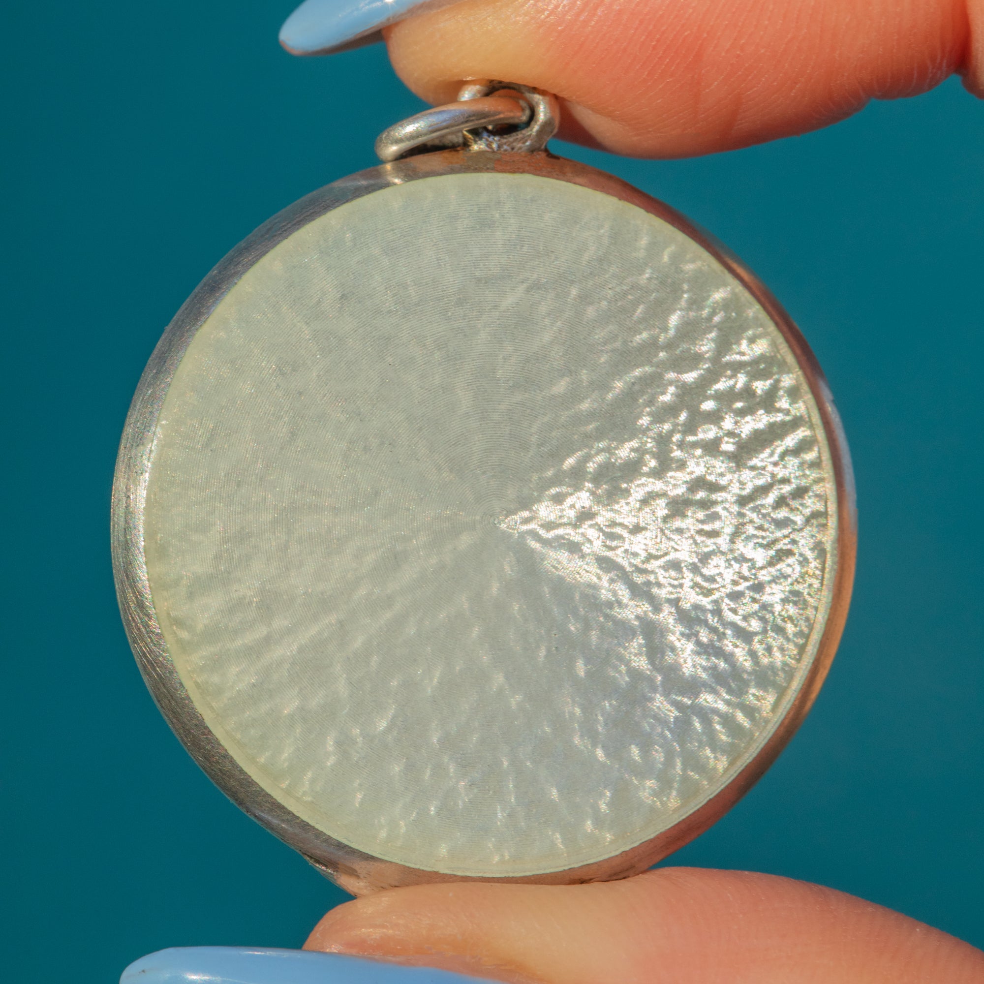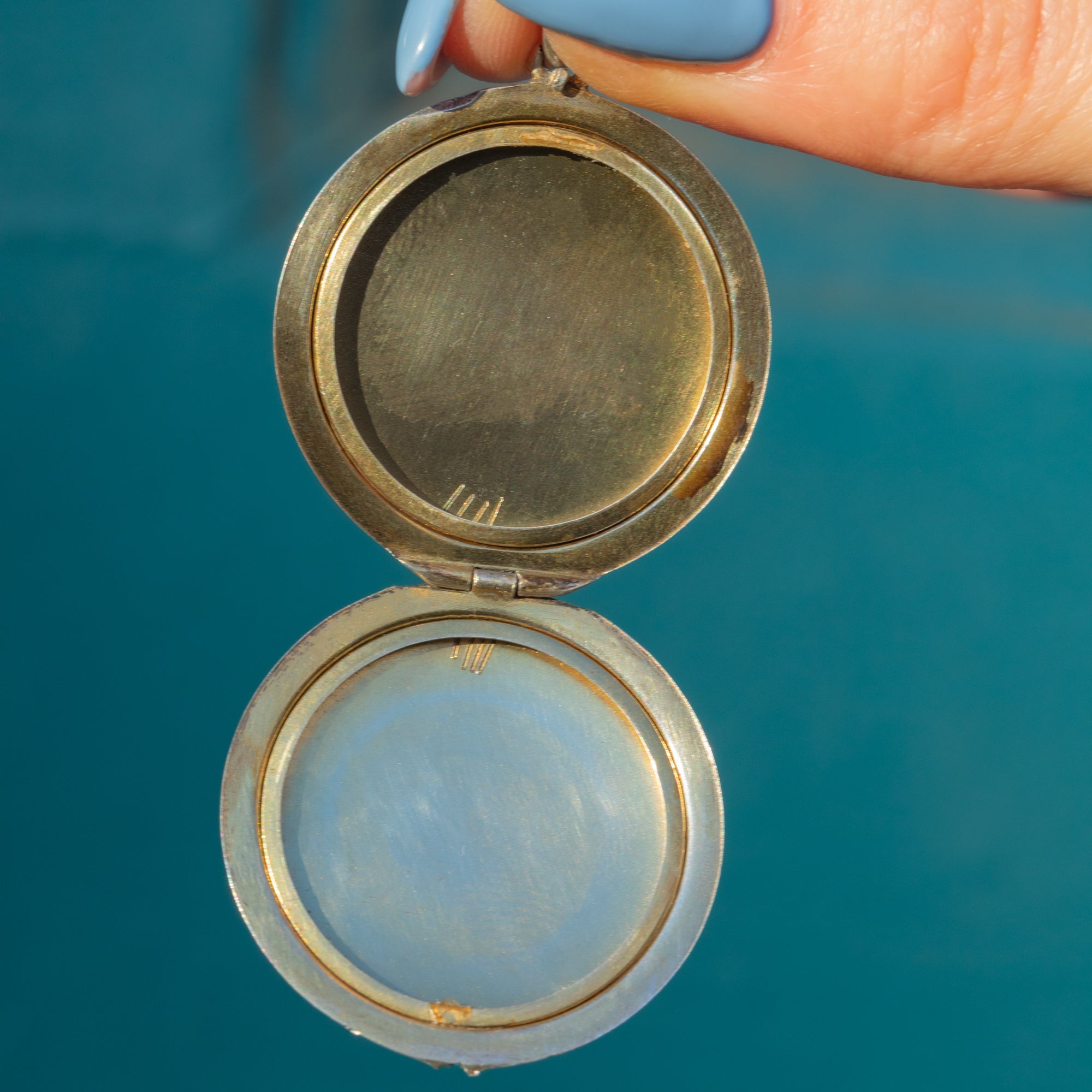 VERY GOOD. This Art Nouveau roses and forget-me-not Guilloché Enamel locket is in very good condition overall. The Enamel is gorgeous and free from wear and the design has kept beautifully with a smooth glossy finish. Inside the locket, there are some marks, however this will be mostly hidden once your photographs have been placed inside. Complete with two frames, this Art Nouveau locket is set to become your most cherished keepsake!