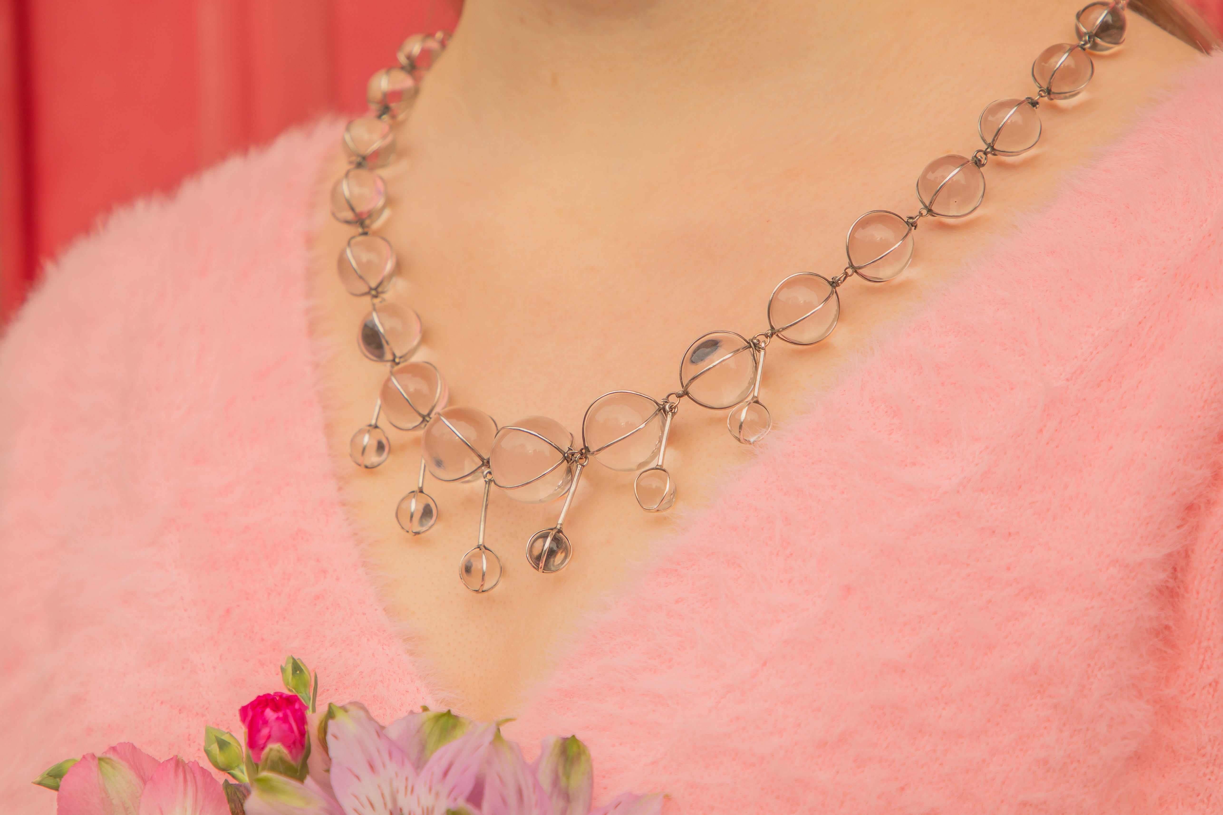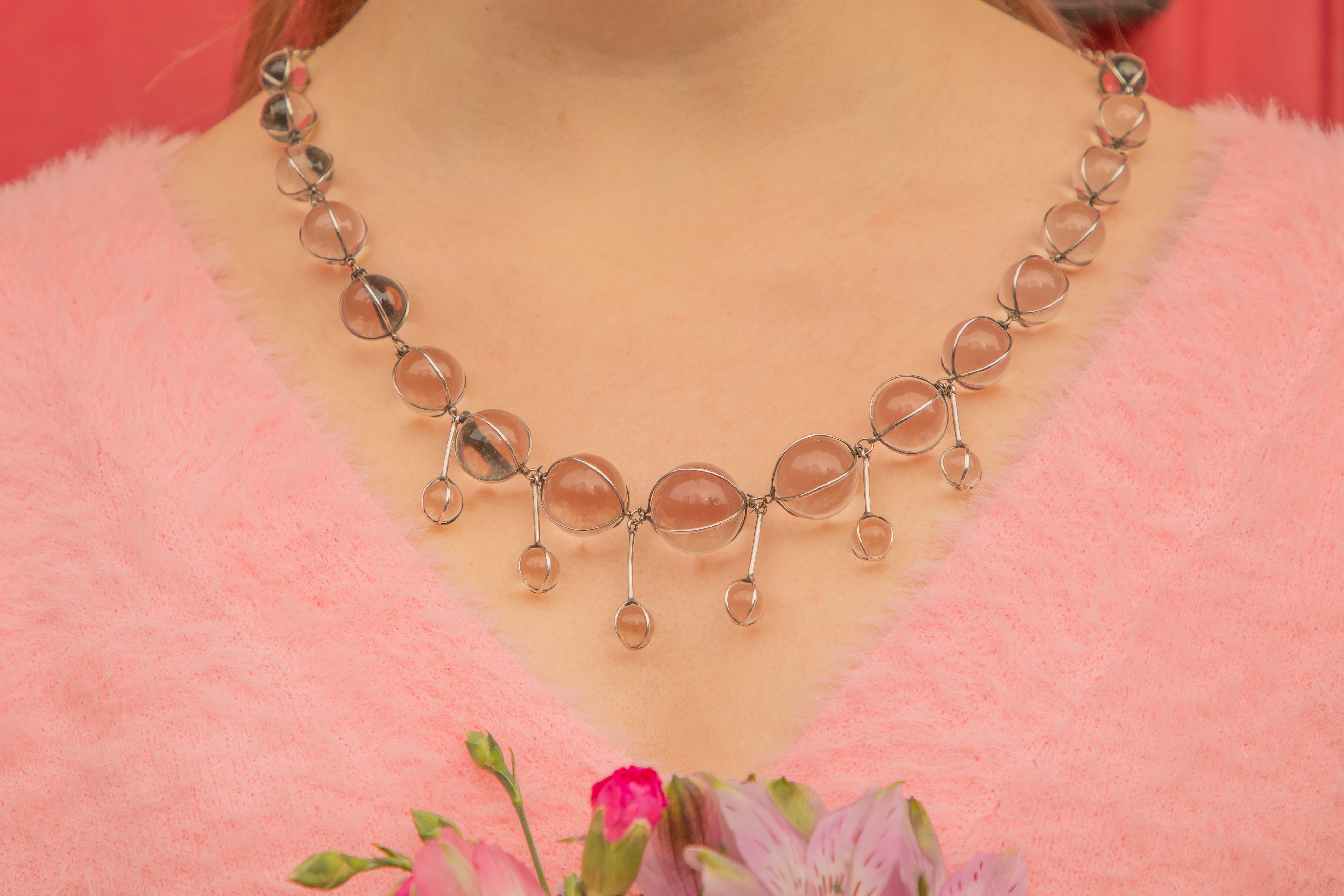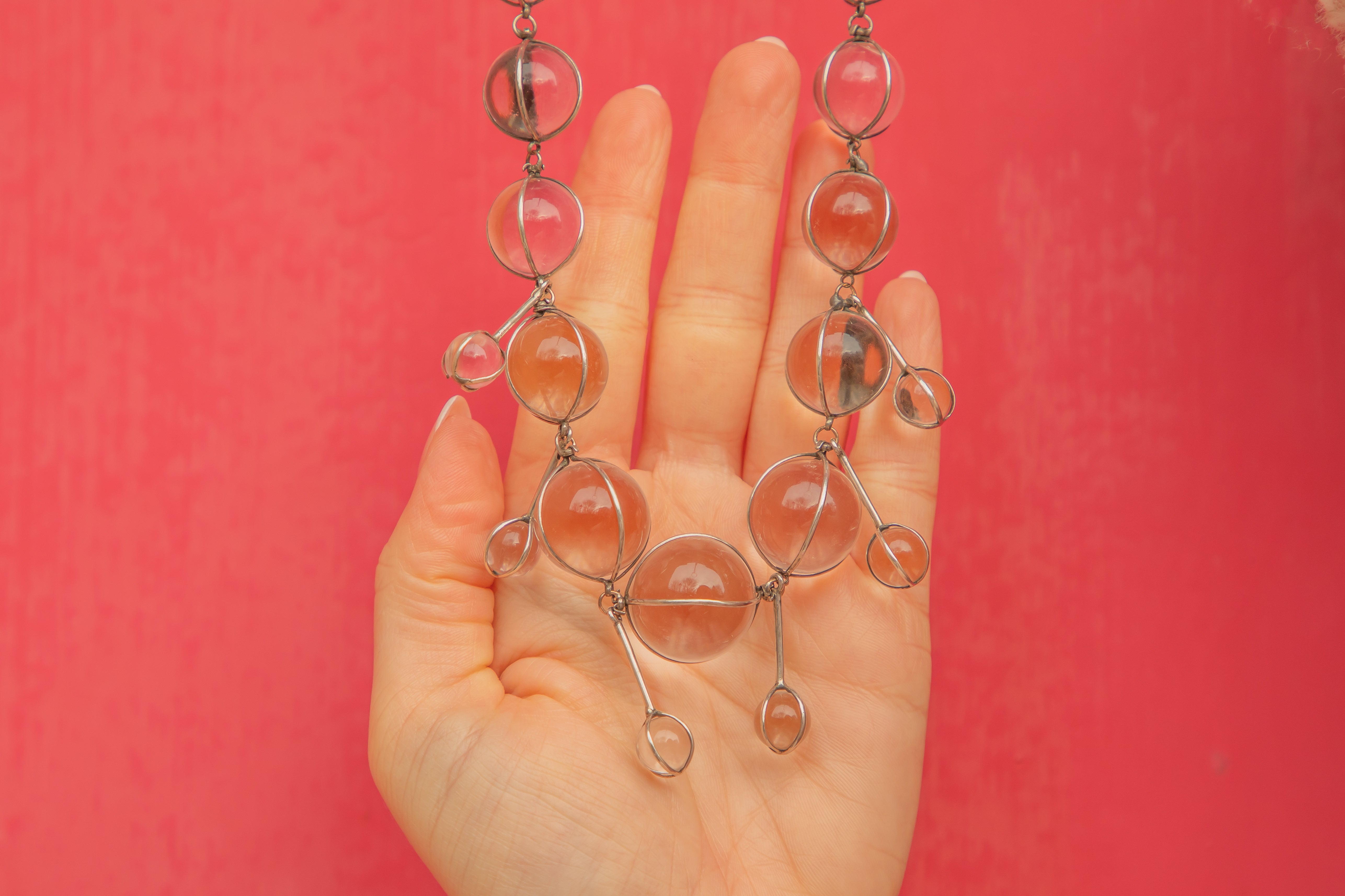 Each Rock Crystal orb is suspended within Sterling Silver wire, so maximum area on display! If you are looking for an antique piece to elegantly frame your décolletage, then this piece might just be 'the one'.