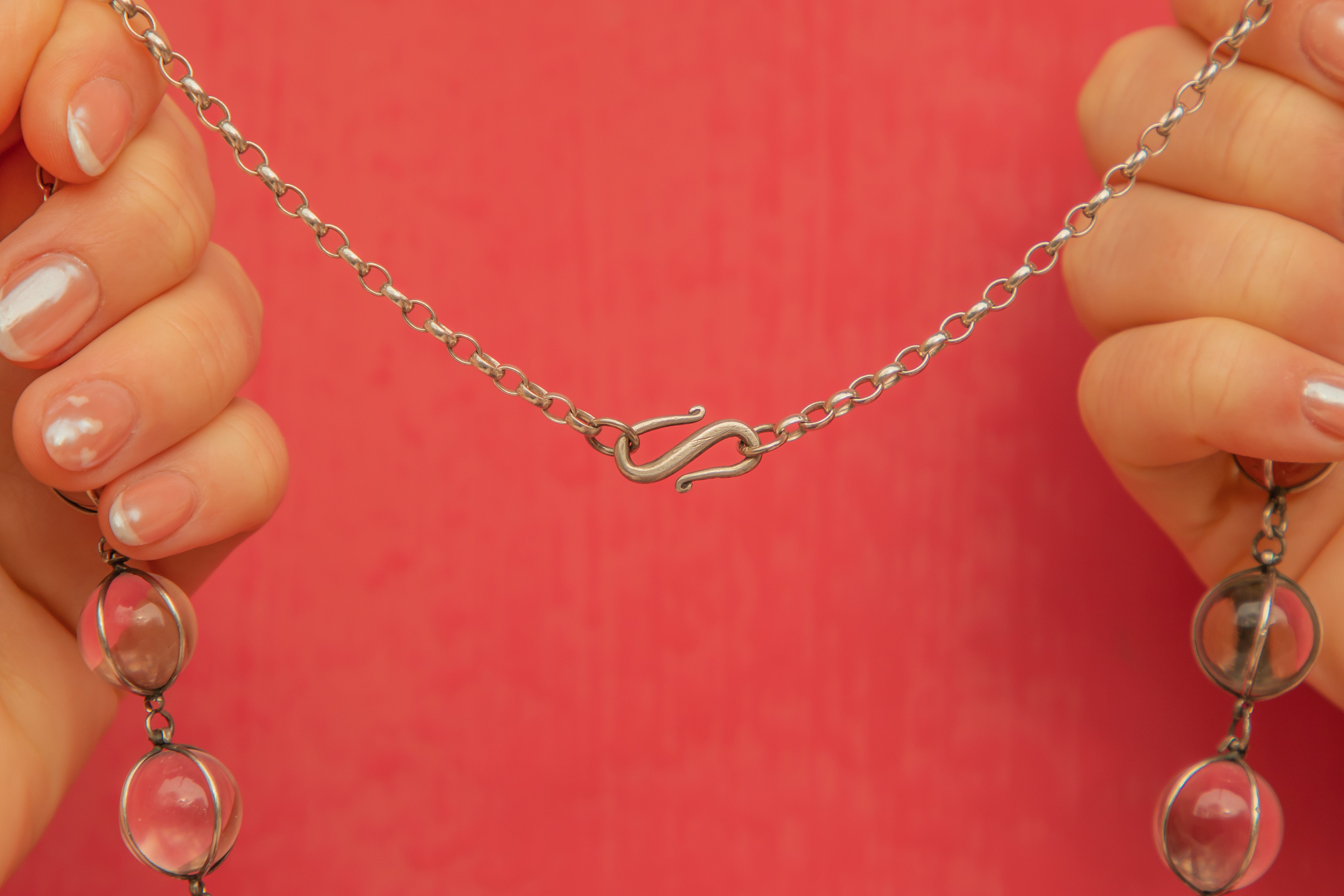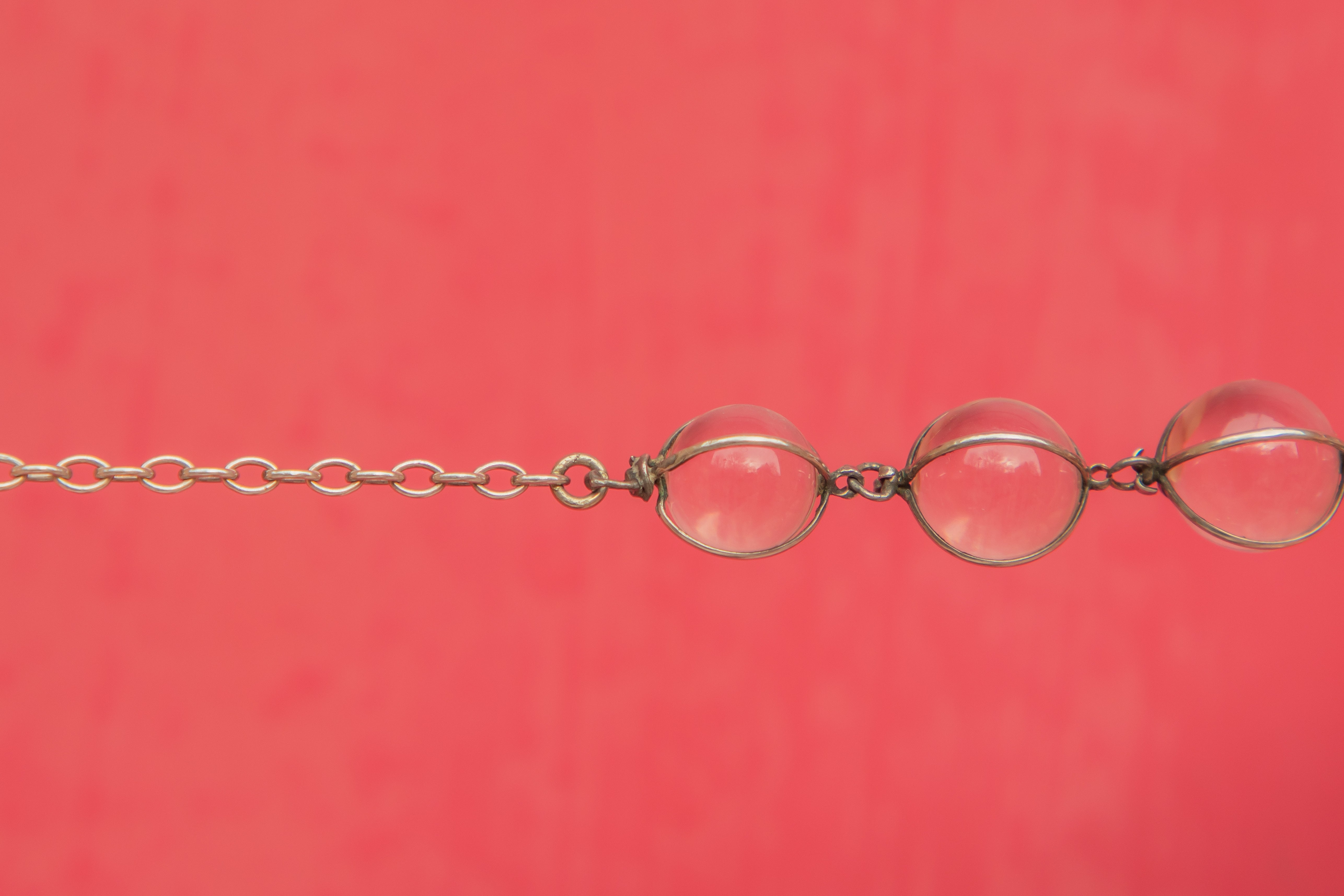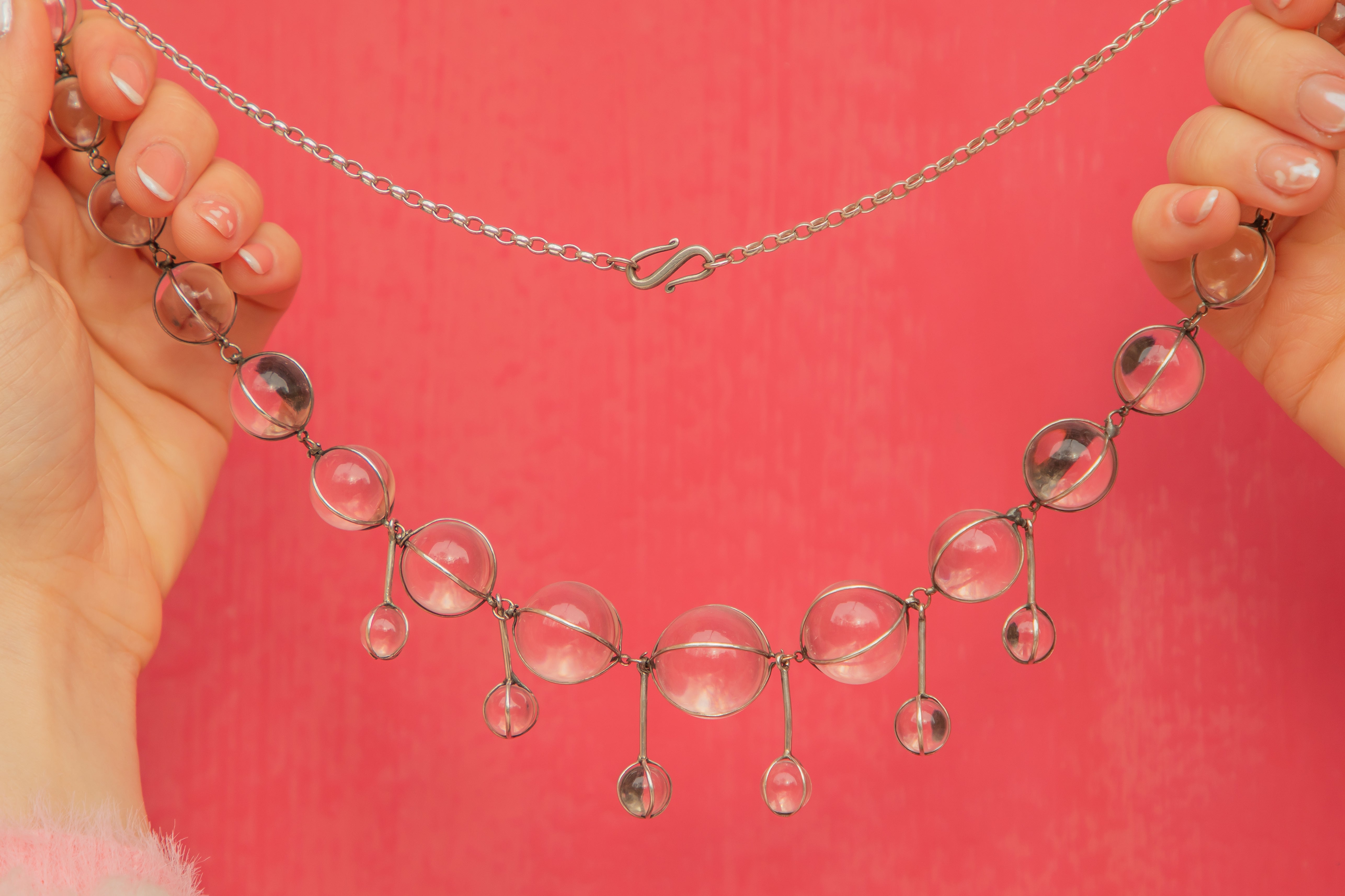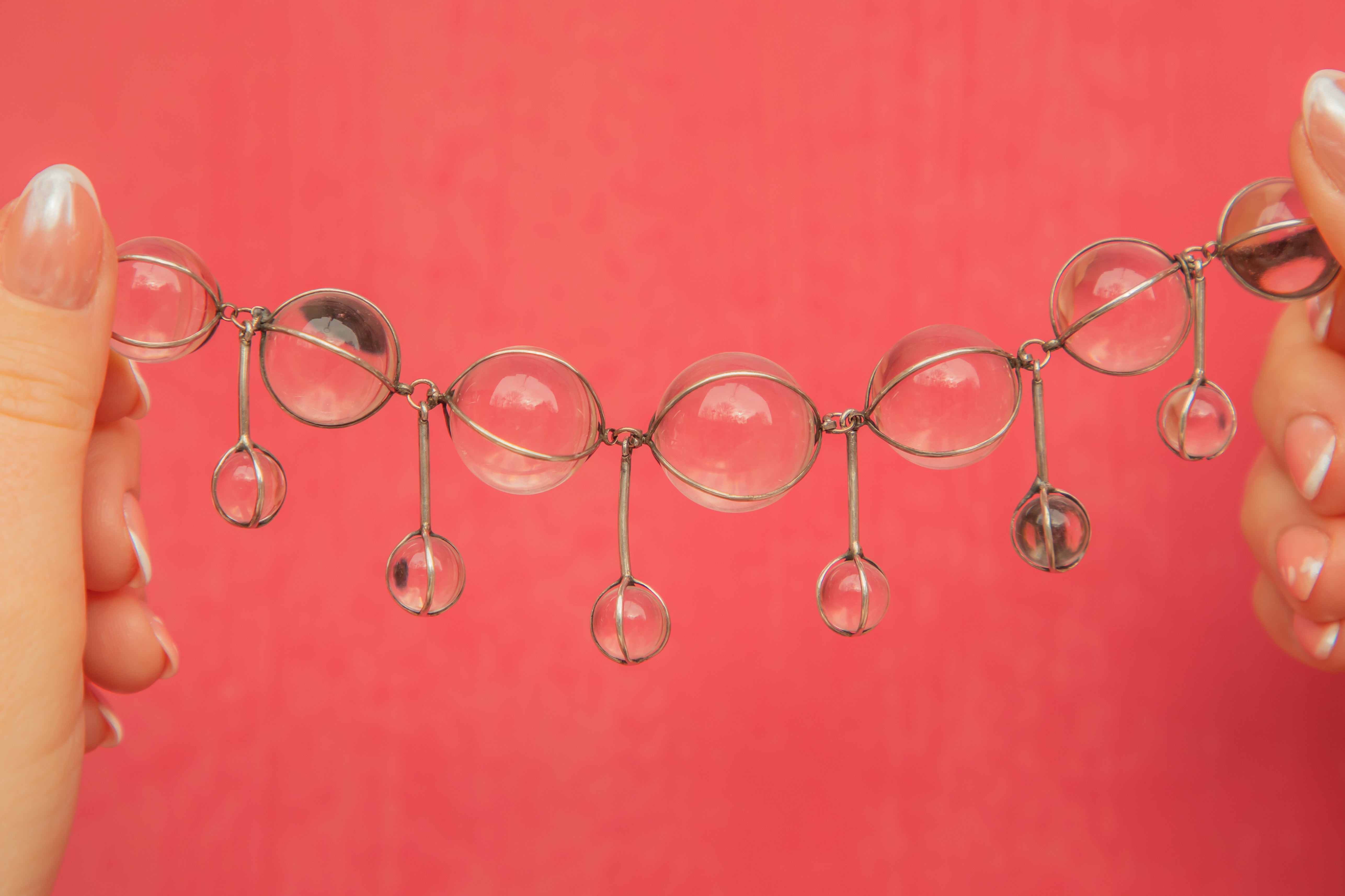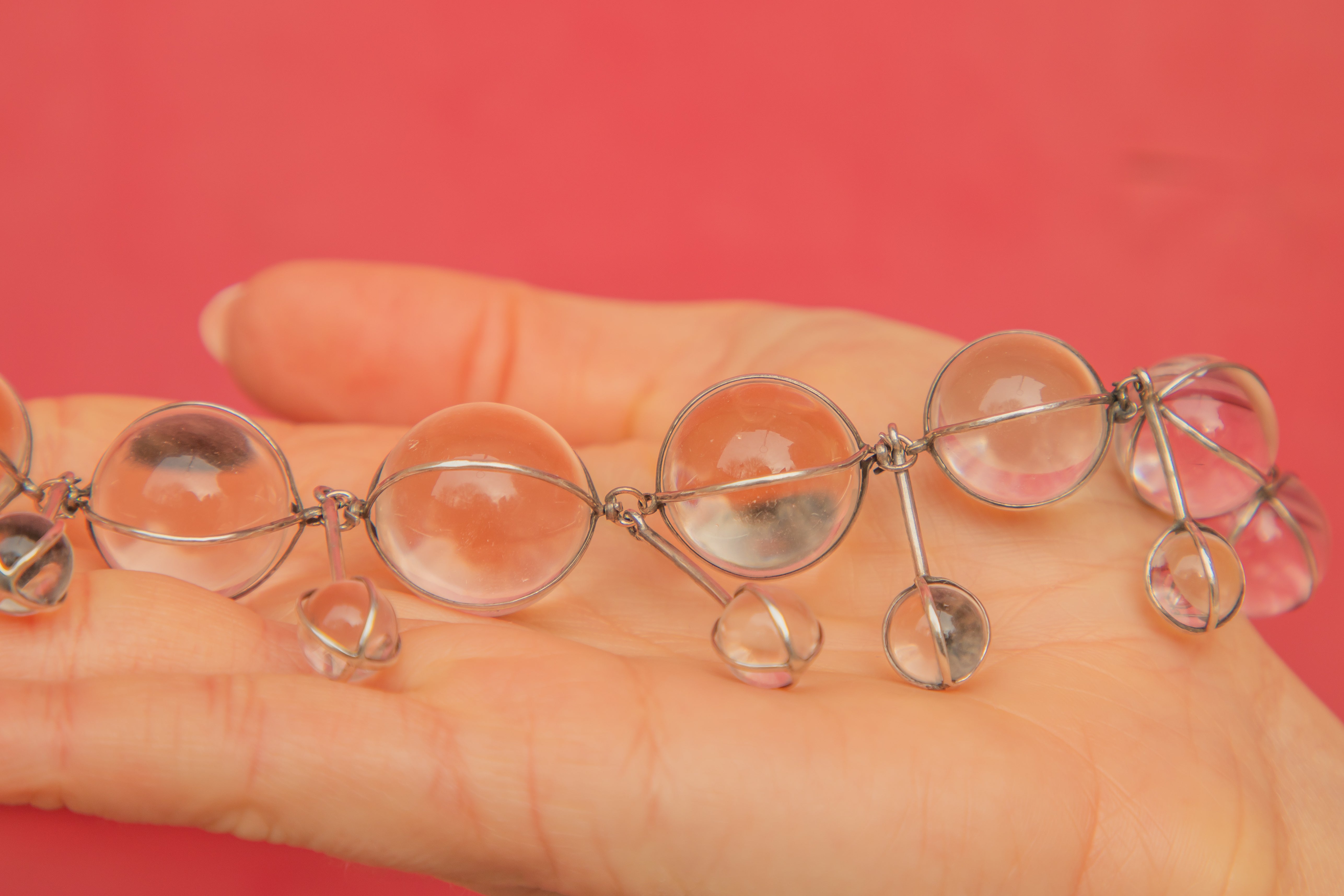 There is so much to say about this incredible Arts & Crafts 'pools of light' necklace, which is composed of seventeen graduating rock crystal orbs. Weighing in at an impressive 107g, this is a statement necklace which you won't want to miss out on!
