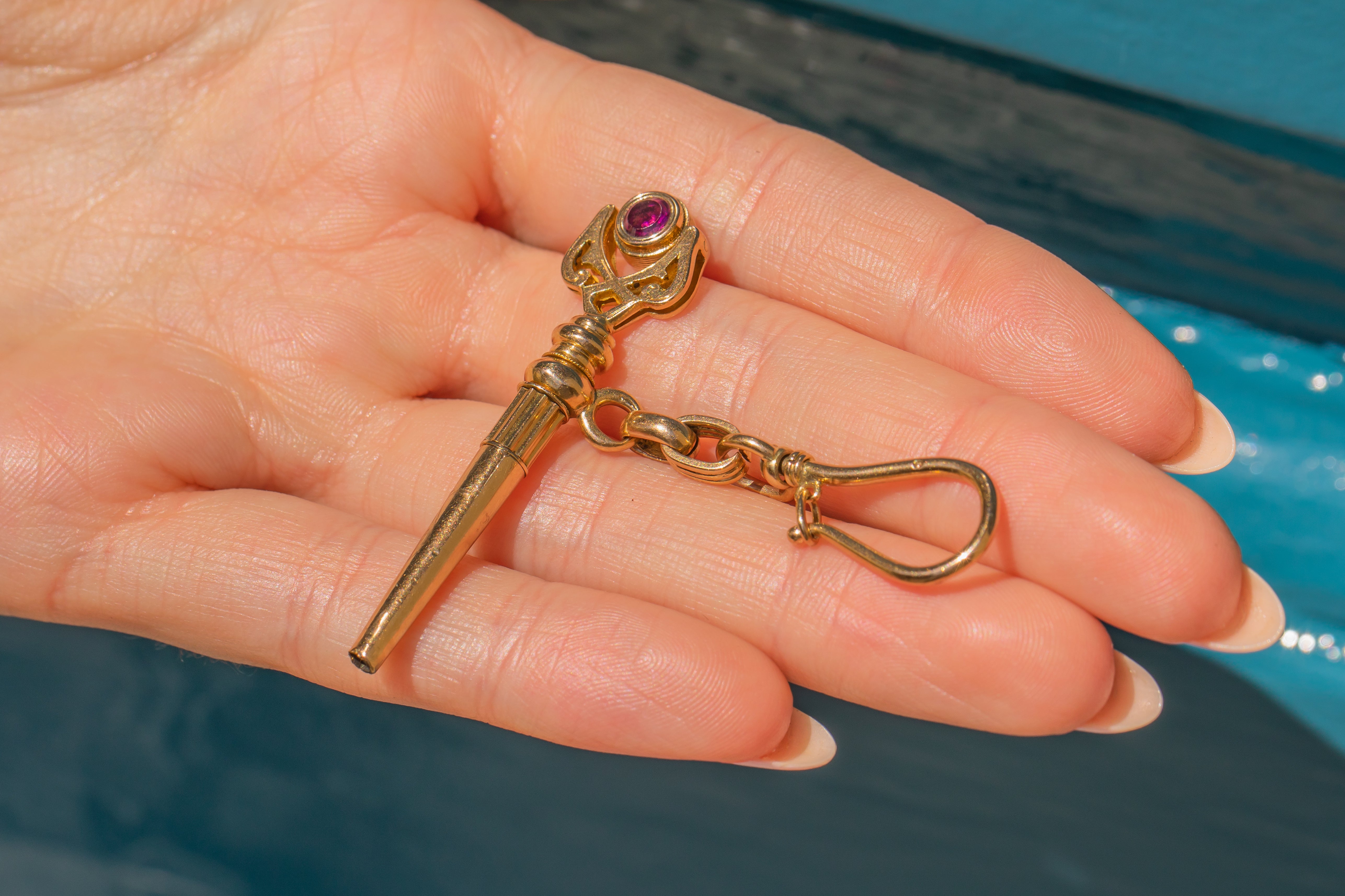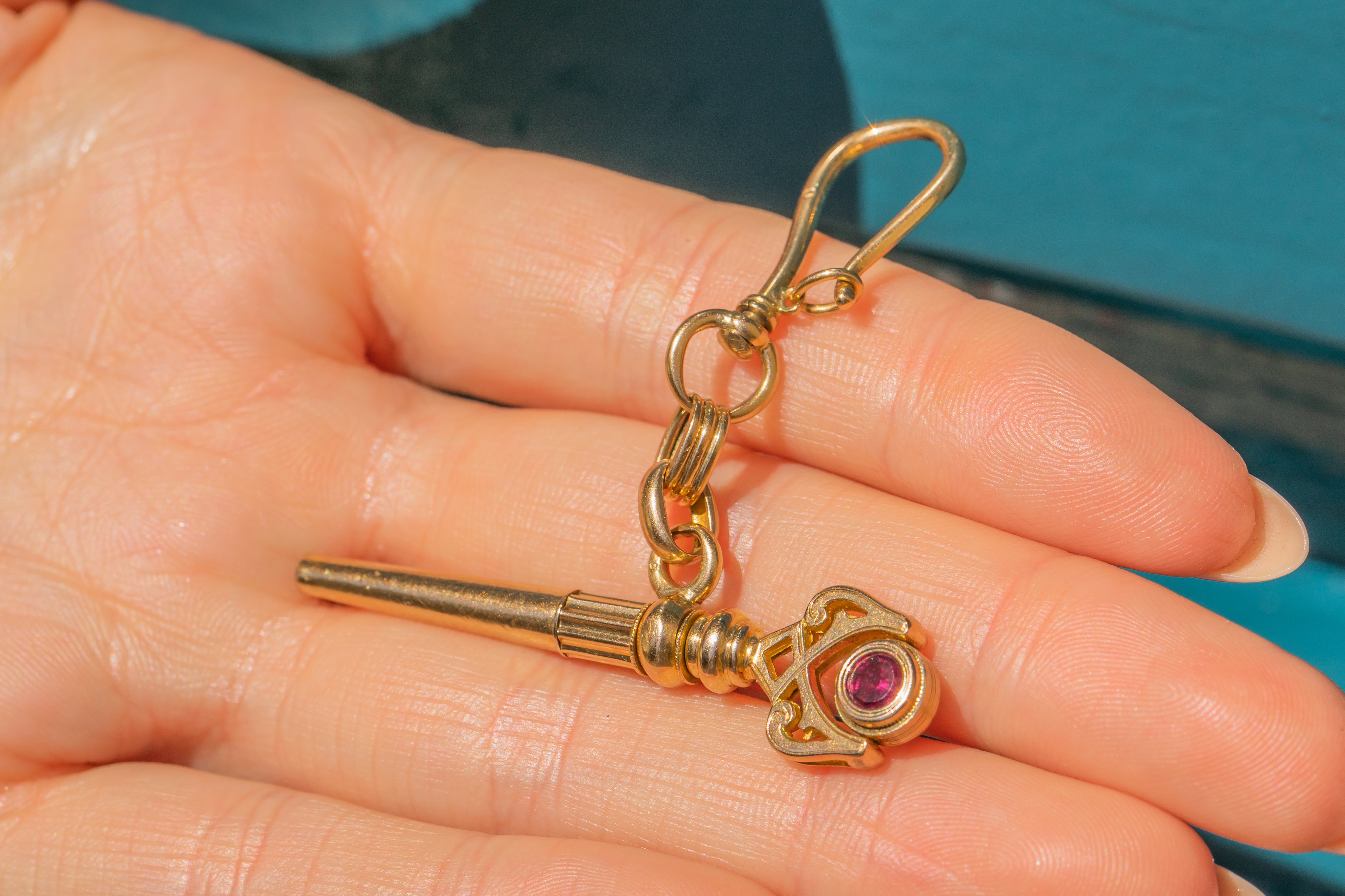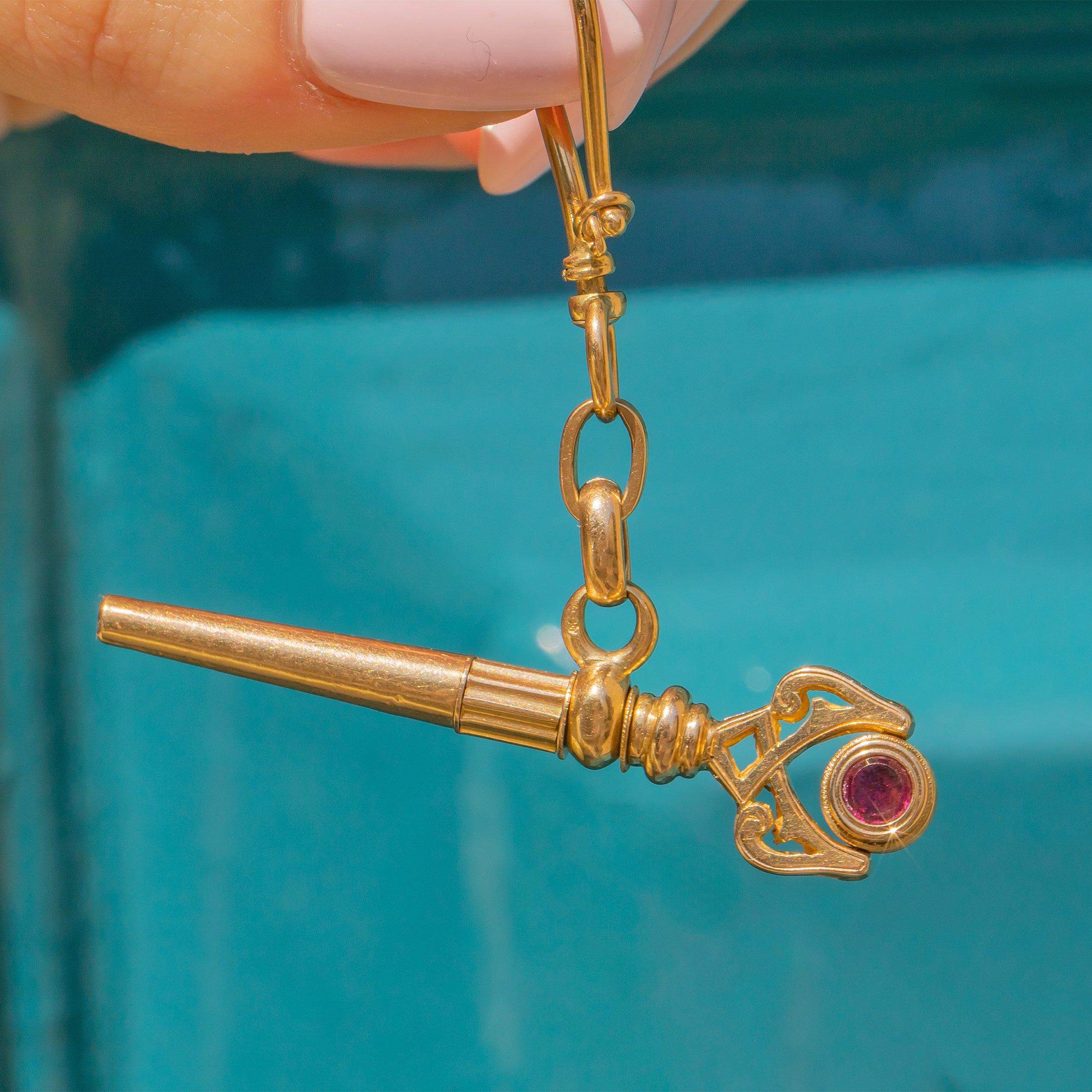Austro-Hungarian 14ct Gold Fancy Watch Key Pendant, Garnet Swivel Mechanism