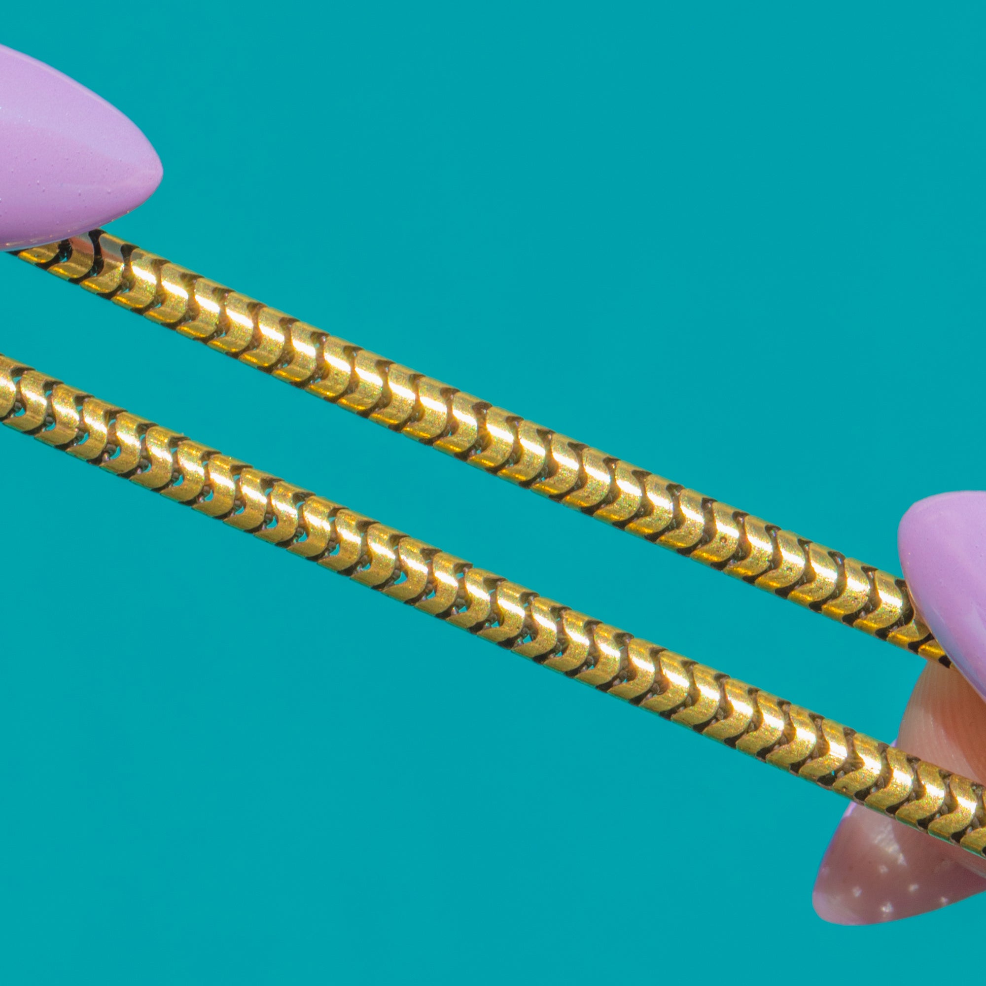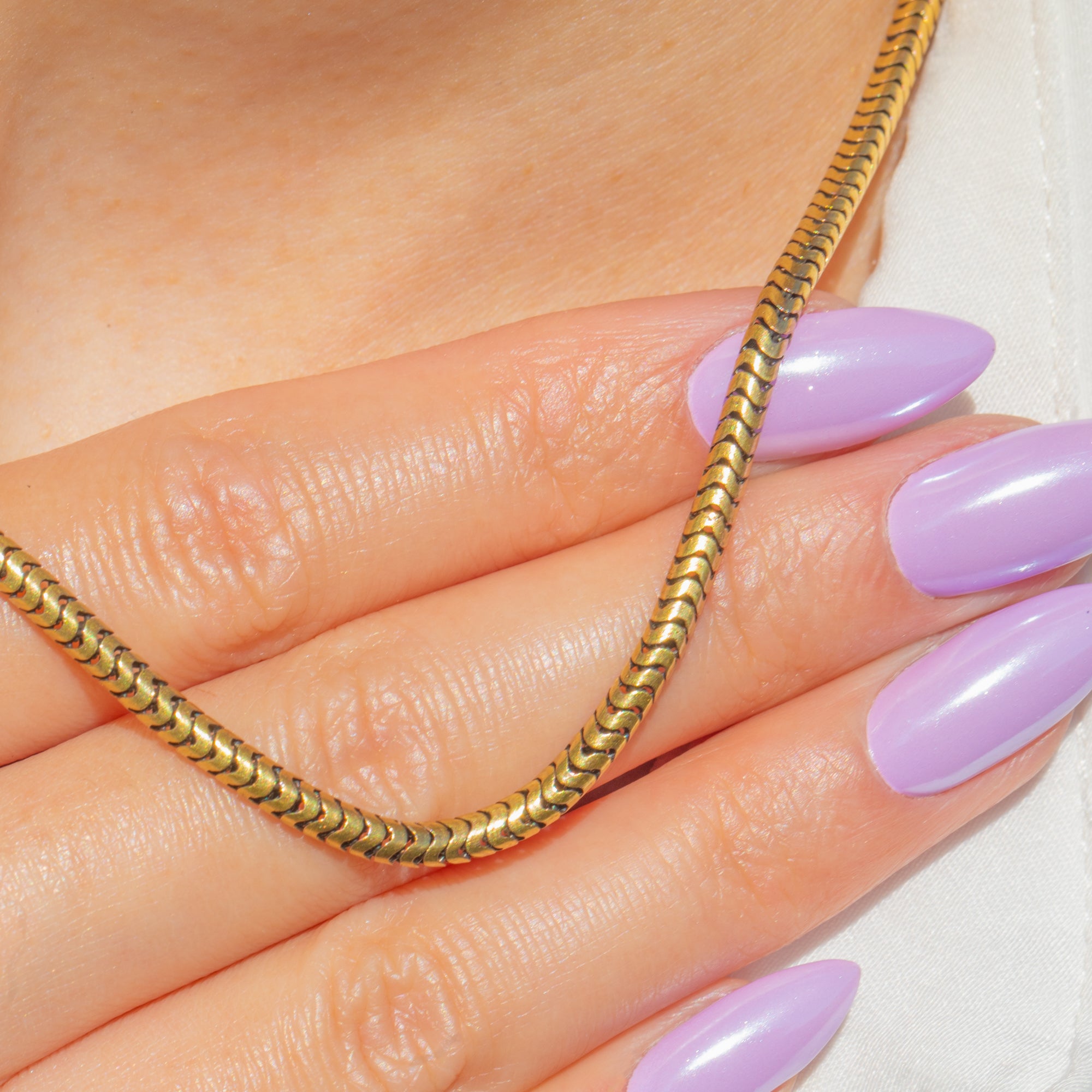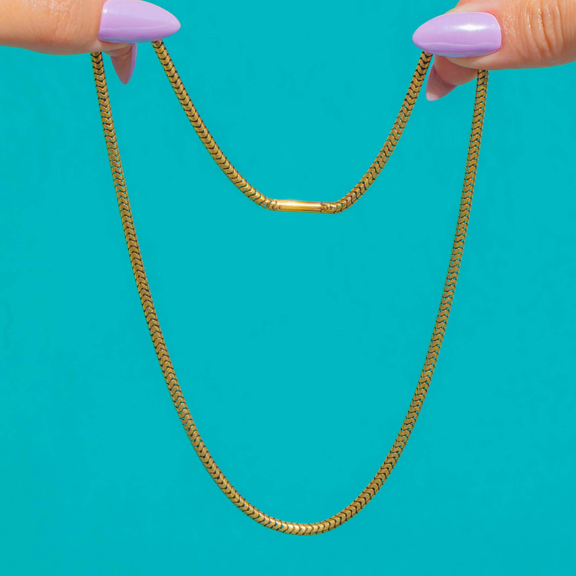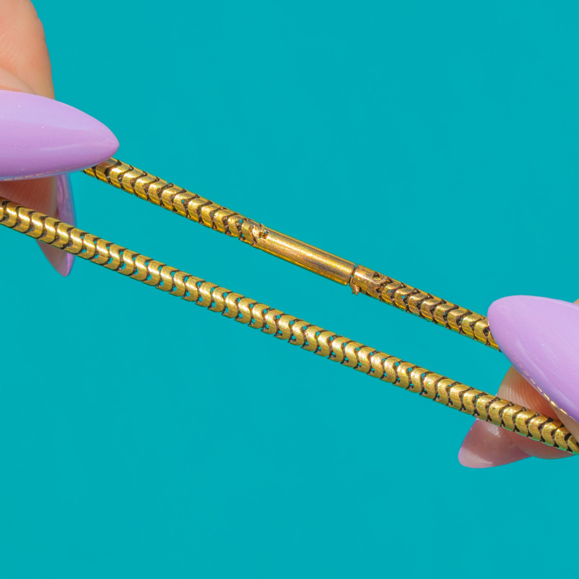 A quintessential Victorian staple, this chunky 15ct Gold snake chain drapes with that coveted liquid silk movement. Its tightly articulated links create a smooth, gleaming ribbon of Gold that sits beautifully at the collar, offering effortless elegance whether worn alone or as a luxe foundation for your favourite pendant.