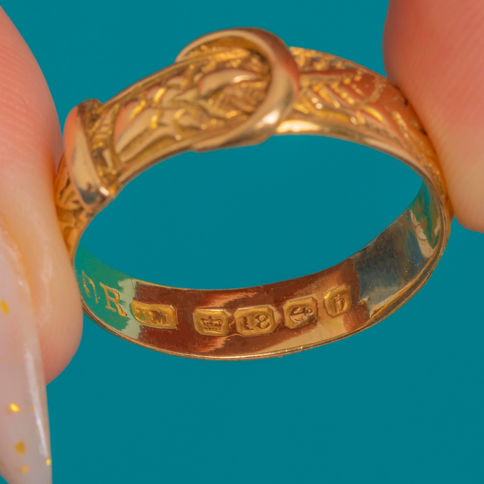 Chunky Engraved Antique 18ct Gold Buckle Ring, c.1901