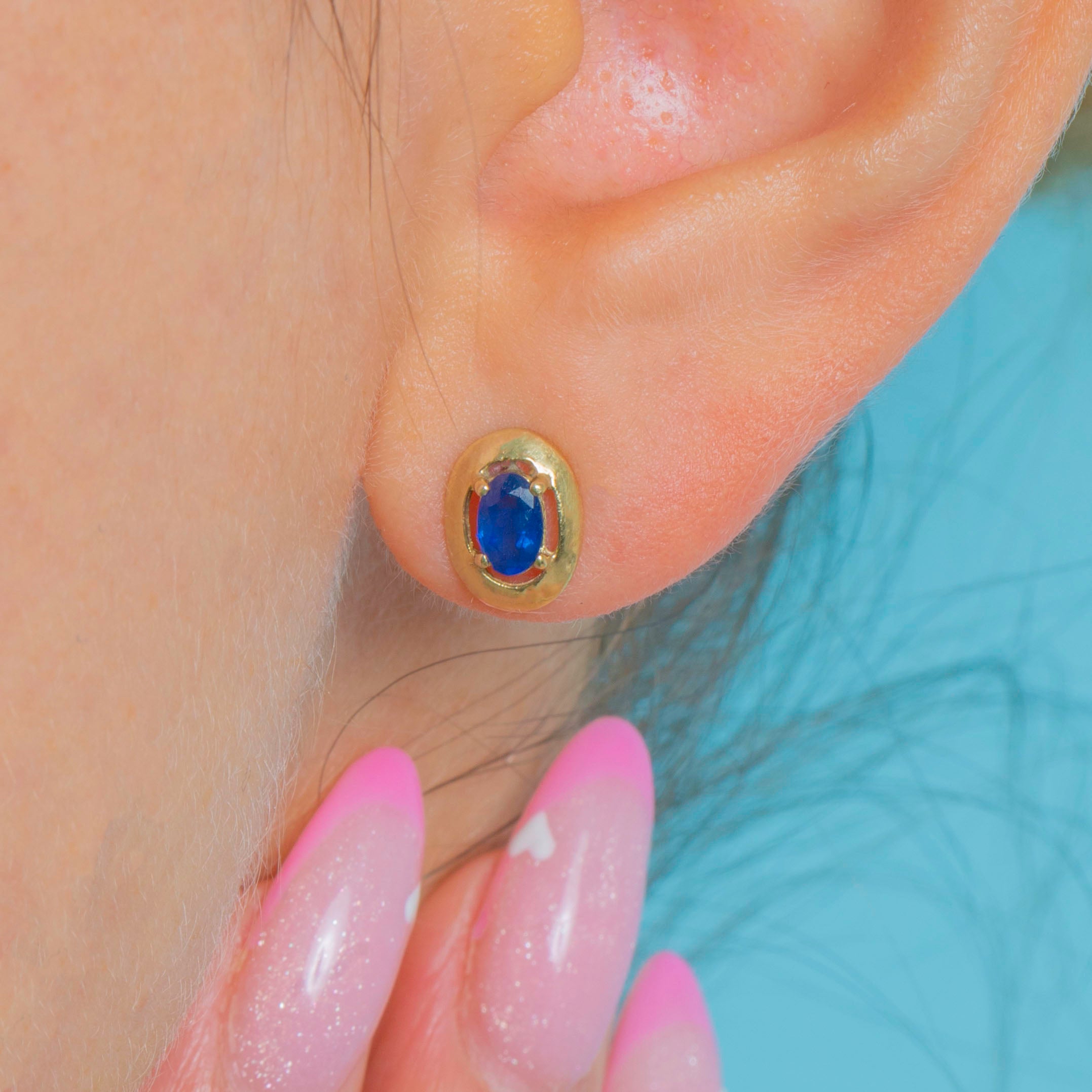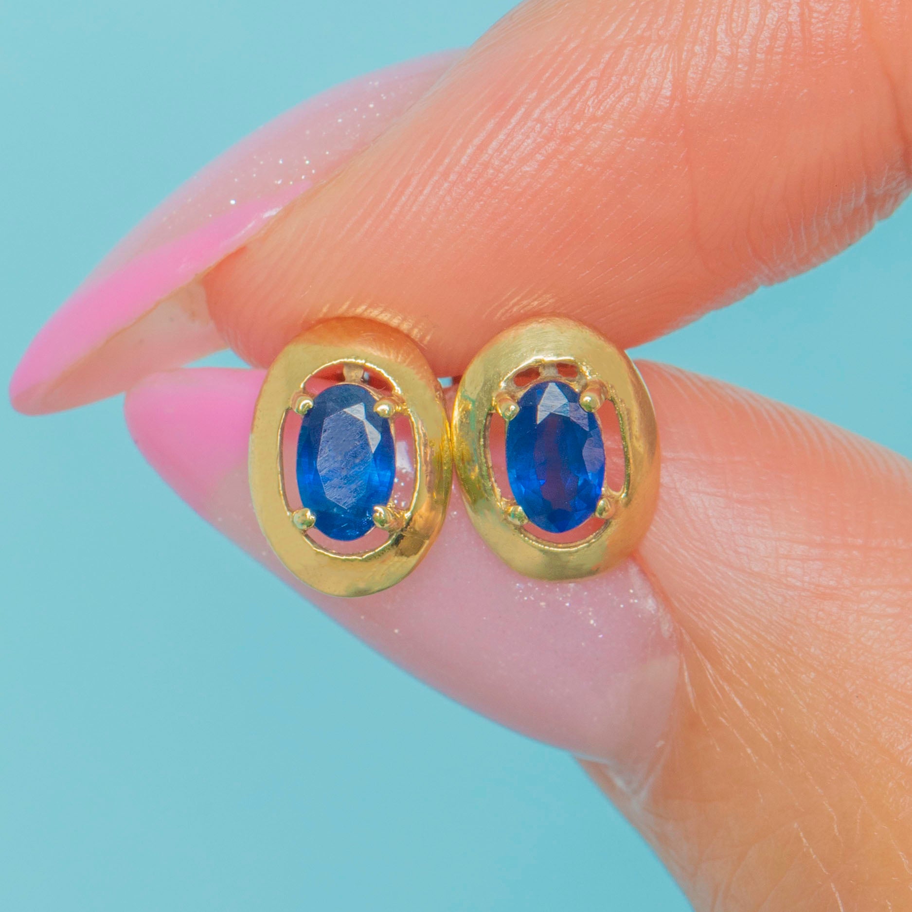Dainty 9ct Gold Oval Sapphire Stud Earrings
