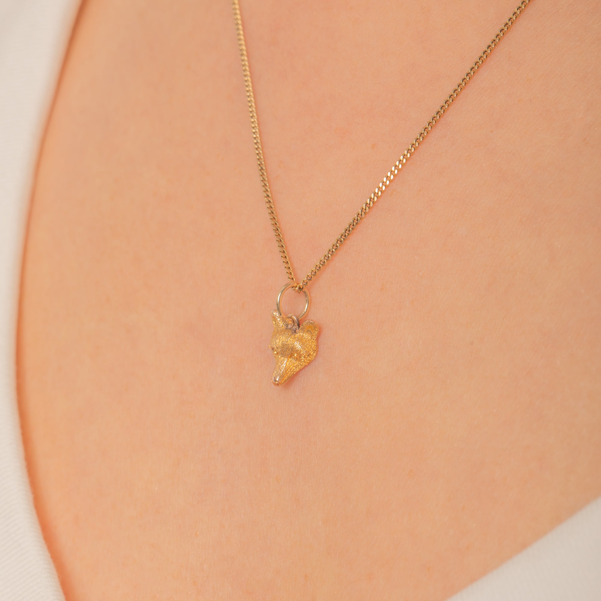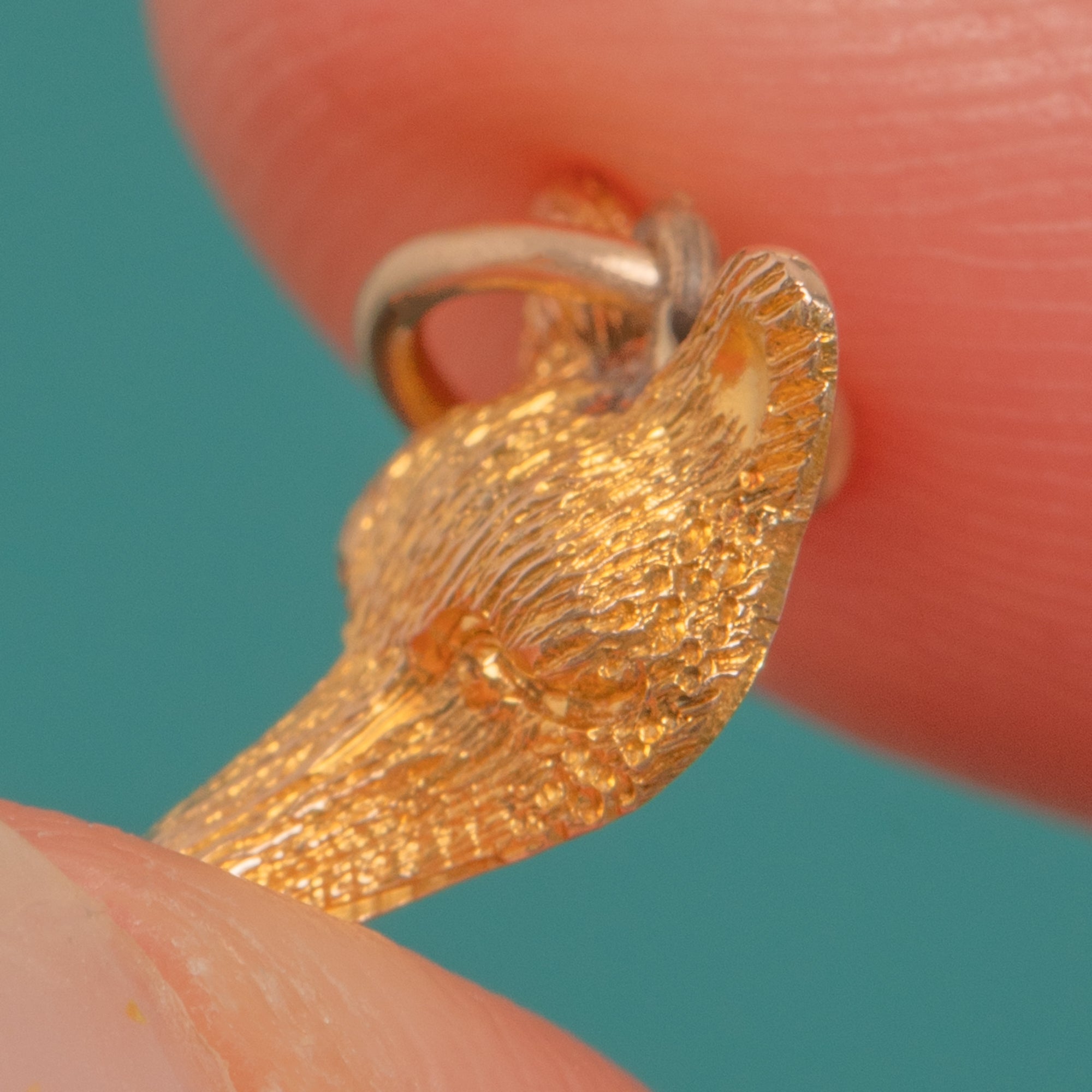 A charming Victorian 9ct Gold fox head charm, finely modelled in high relief with beautifully textured fur and a warm golden glow. Petite yet full of character, it captures the sly, spirited nature of the fox with crisp detailing throughout.