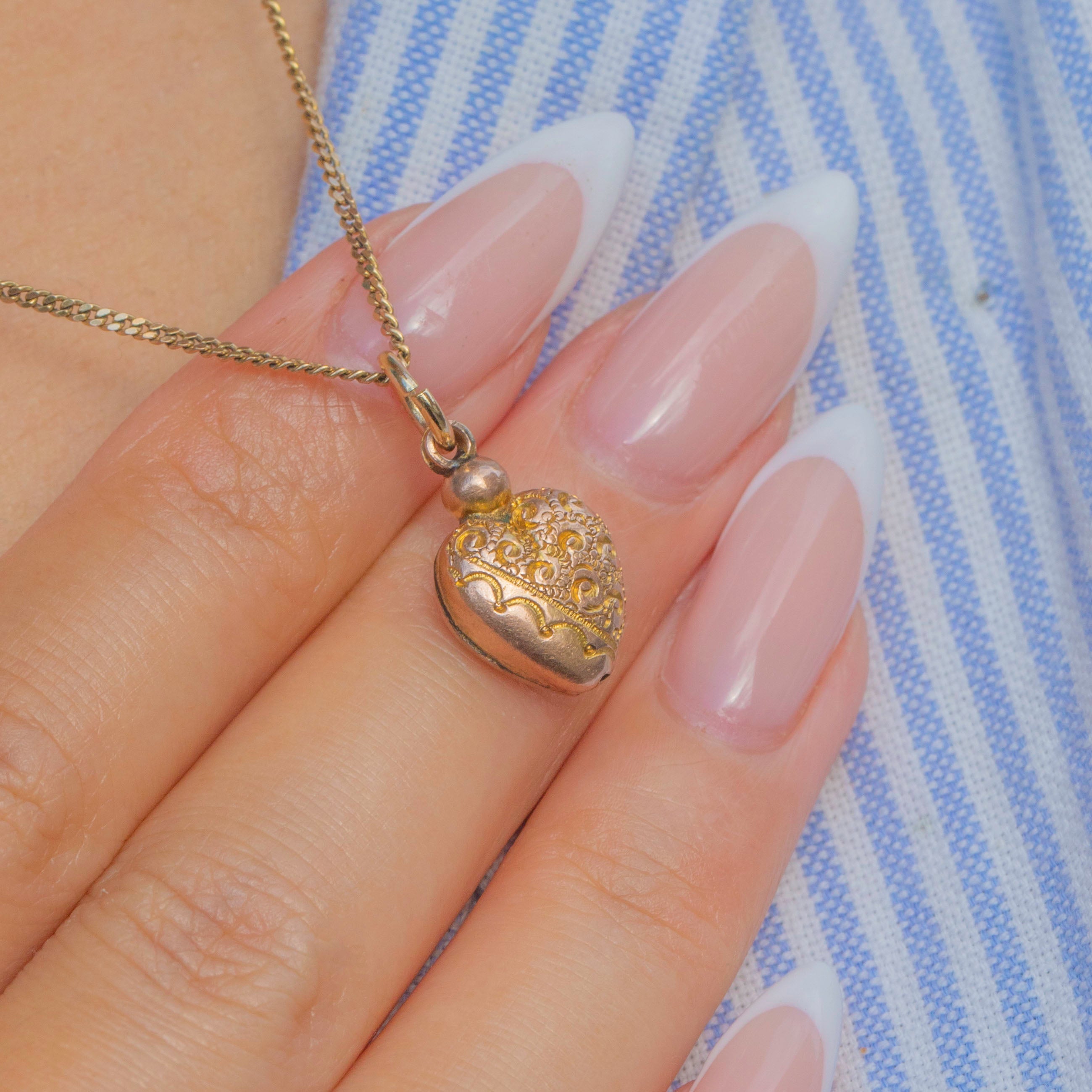 Dainty Victorian 9ct Gold Repousse Heart Pendant
