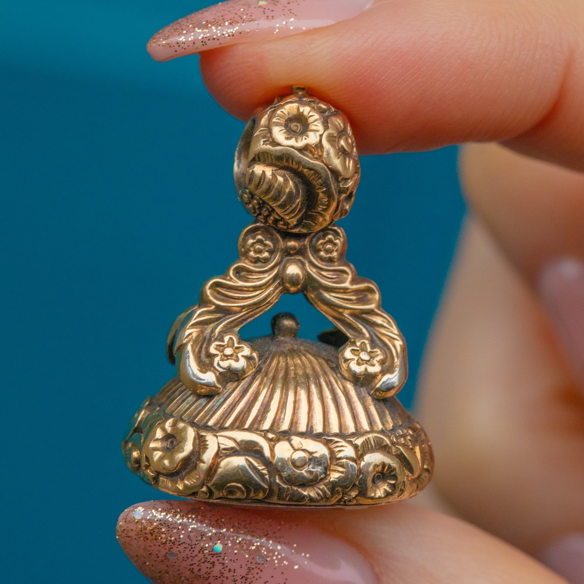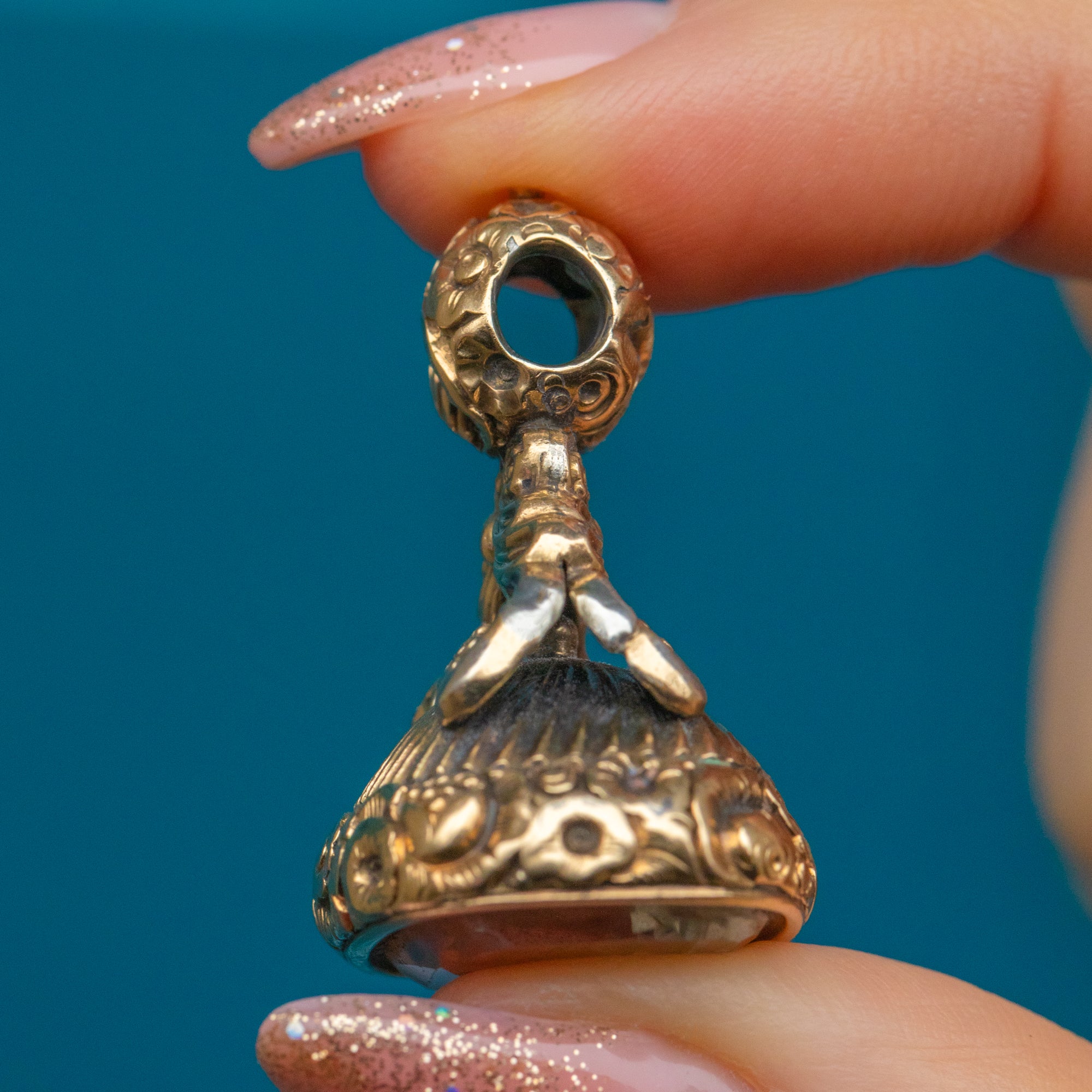 This Early Victorian 15ct Gold Cased Rock Crystal Fob Pendant is impressive! Bursting with decadence and character, she boasts an artic Rock Crystal, with an ornate pillar and dramatic engravings.