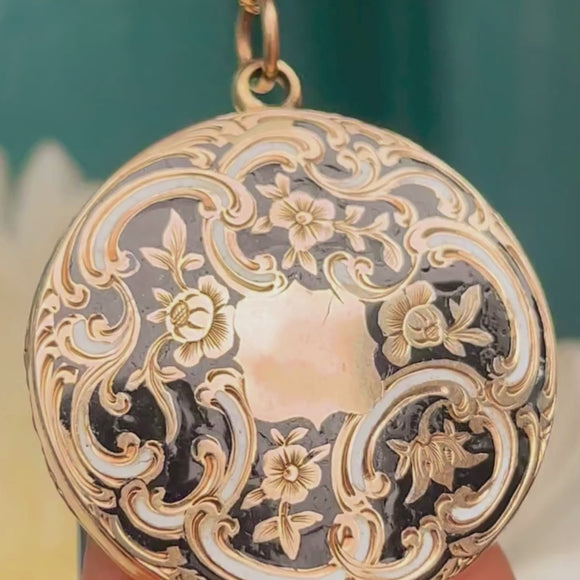 This beautiful early Victorian 9ct Gold black & white Enamel locket will make a superb addition to your collection! This exquisite antique locket is made from 9ct Gold and features floral Enamel work that perfectly captures the exquisite craftsmanship of the Victorian era.