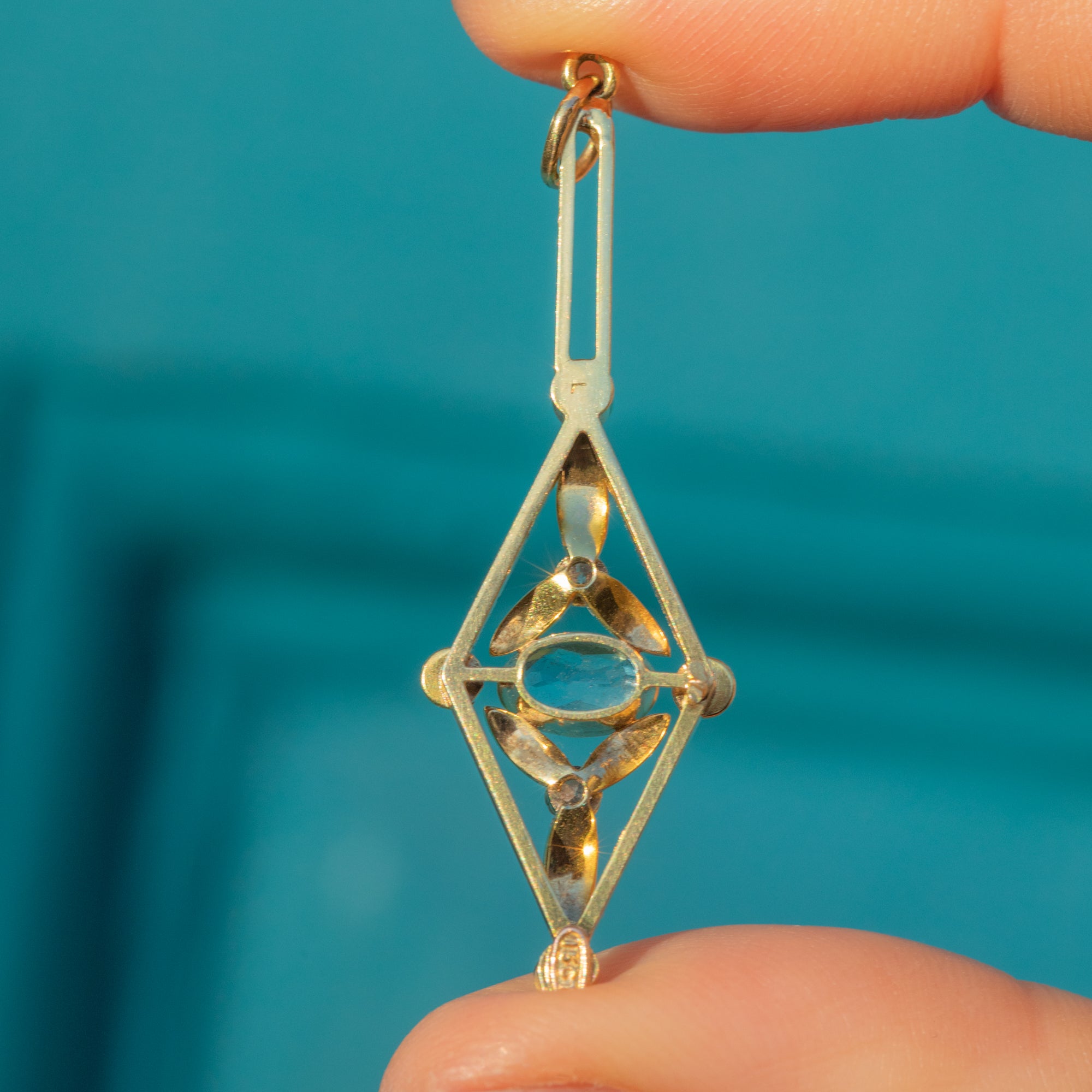 This Edwardian 15ct Gold Aquamarine Diamond drop pendant will instantly elevate your antique jewellery collection!