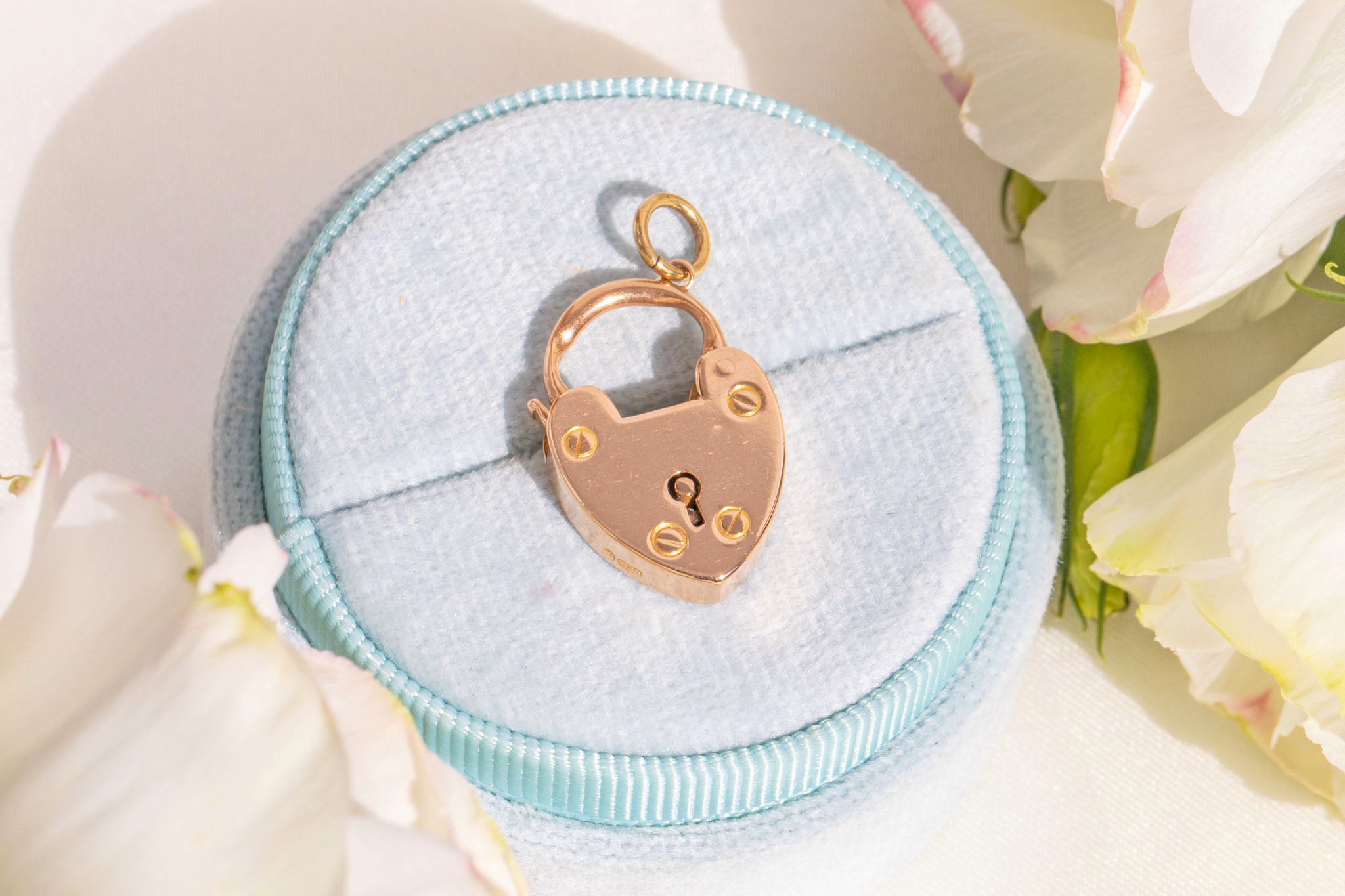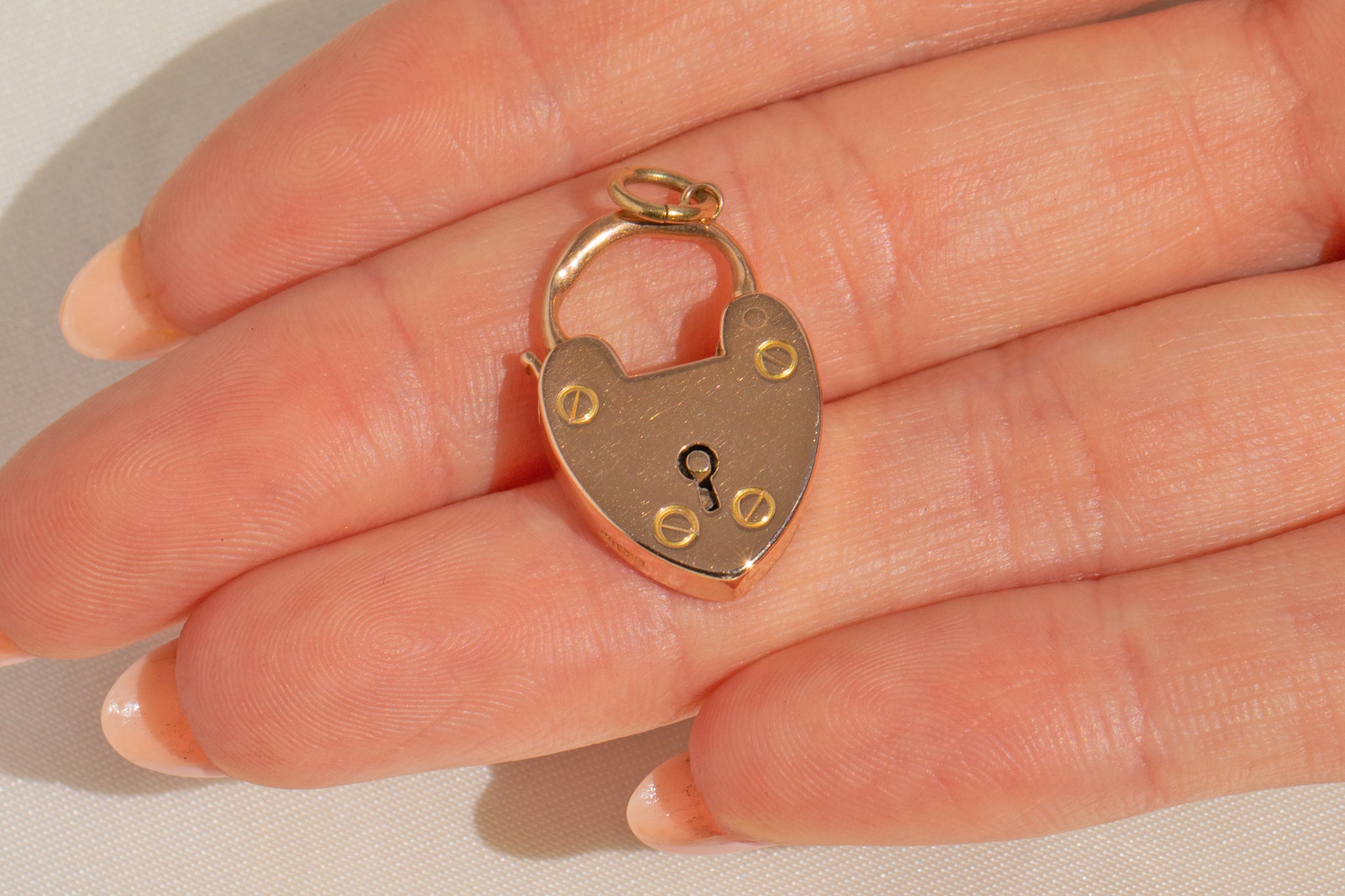 VERY GOOD. This Edwardian 15ct Gold heart padlock charm is in gorgeous condition for her age. There are some minor scratches to the surface of this charm, but these are very subtle. Otherwise, the heart shape has kept well with no dings. The padlock lever is also in fine working order, with the jump-ring securely connected, so that you can wear her with confidence!