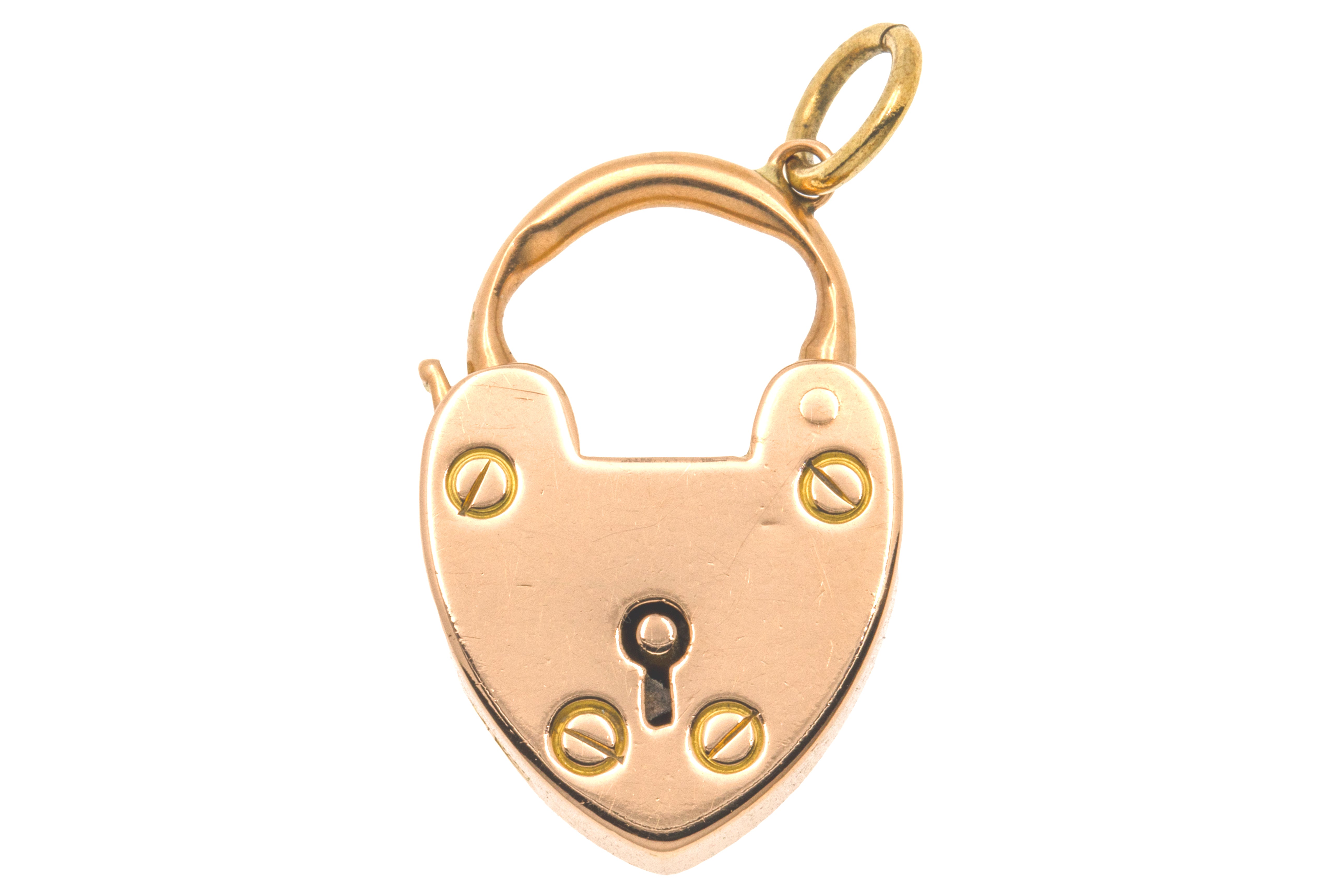 Edwardian 15ct Gold Heart Padlock Charm, c.1902
