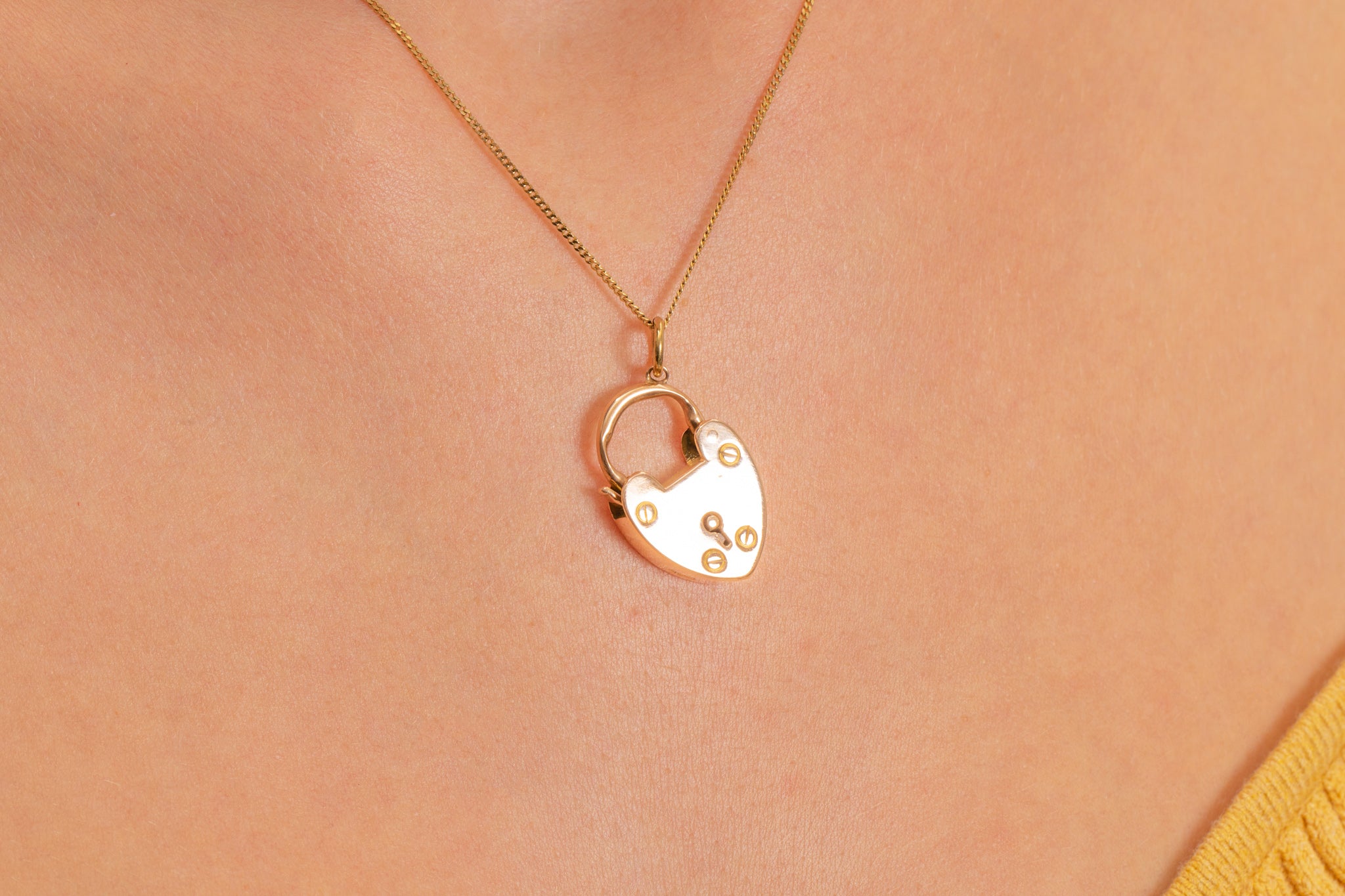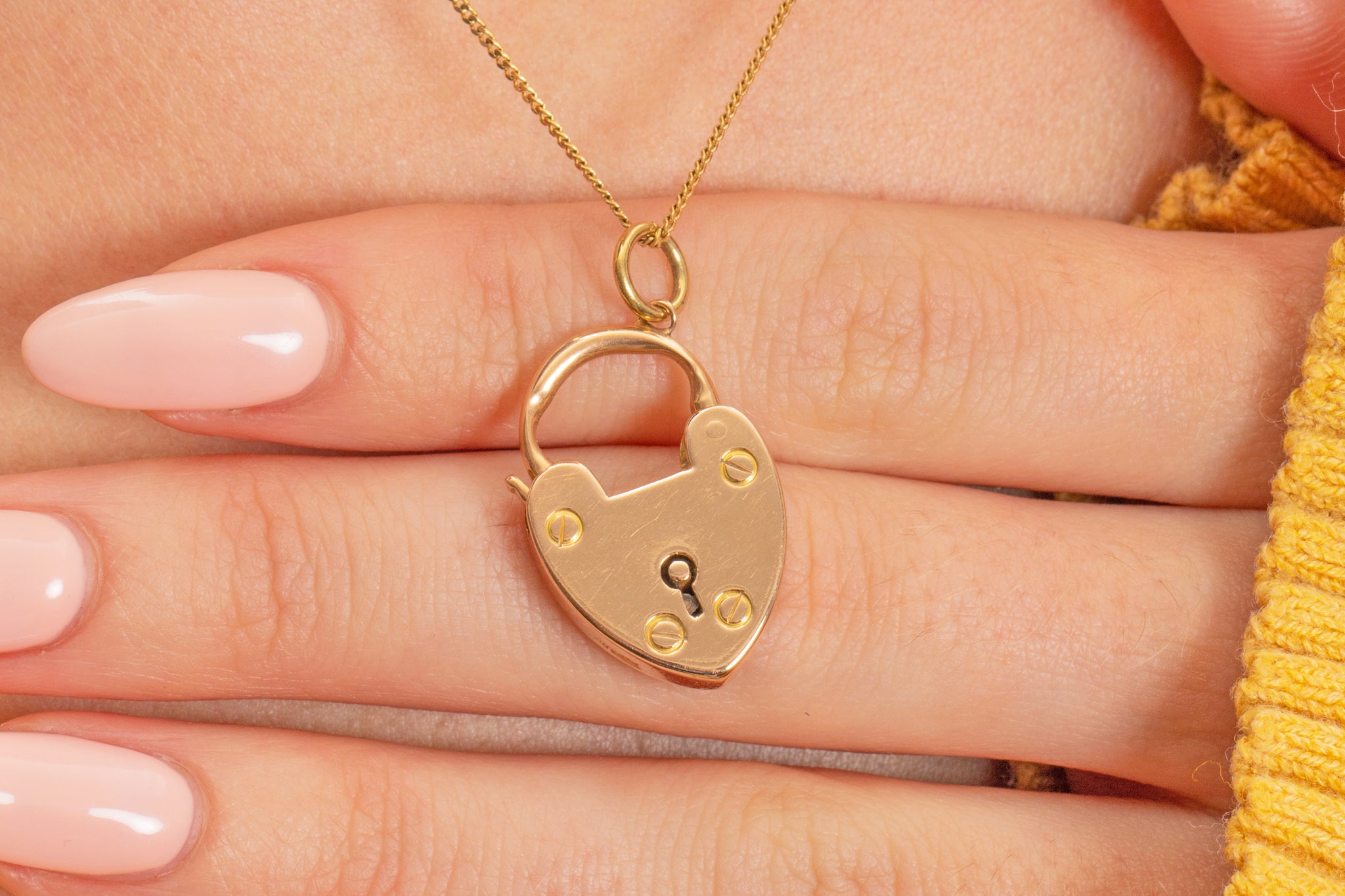 What a sweet Edwardian 15ct Gold heart padlock charm! Crafted from a sumptuous 15ct Gold, she will hang at a lovely angle from a fine Gold chain.