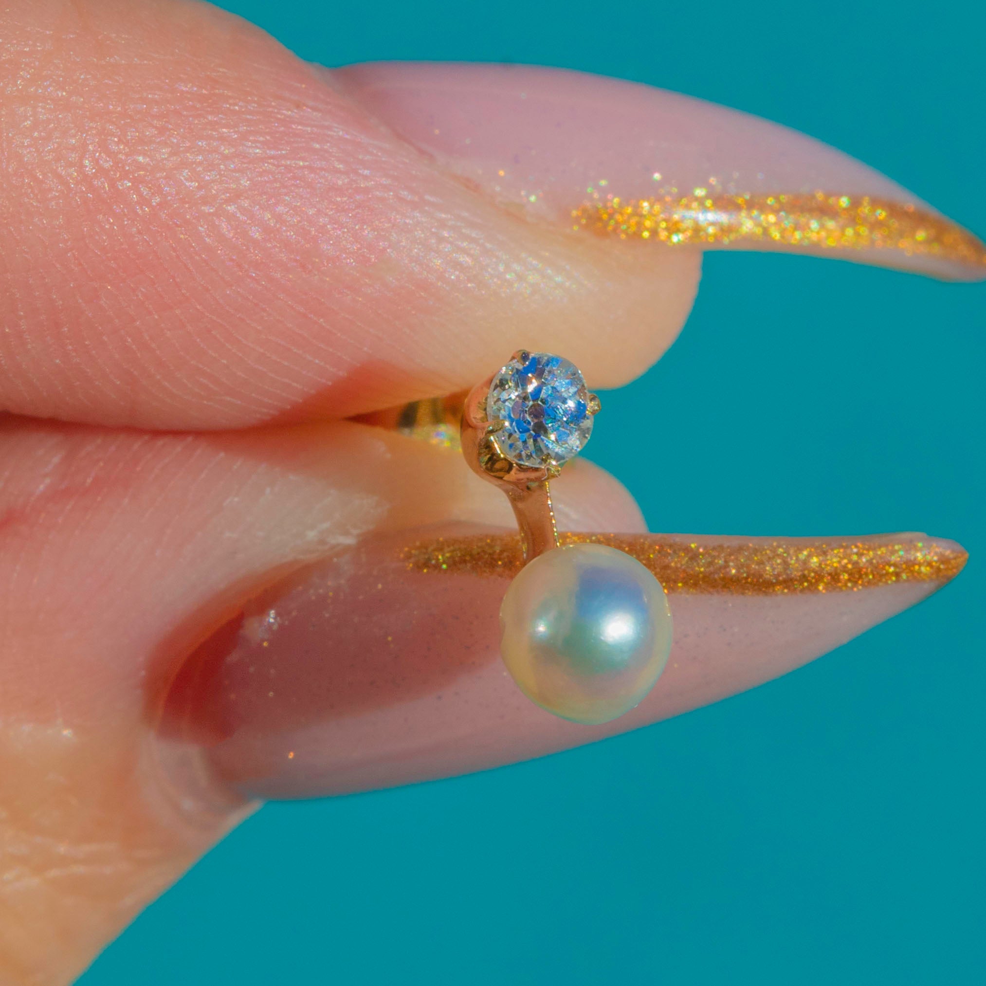 These Edwardian 18ct Gold Pearl and Diamond studs are an elegant and timeless antique pair. Each earring features a lustrous 5mm Pearl accented by a bright Diamond, adding a delicate sparkle that sits beautifully on the ear.