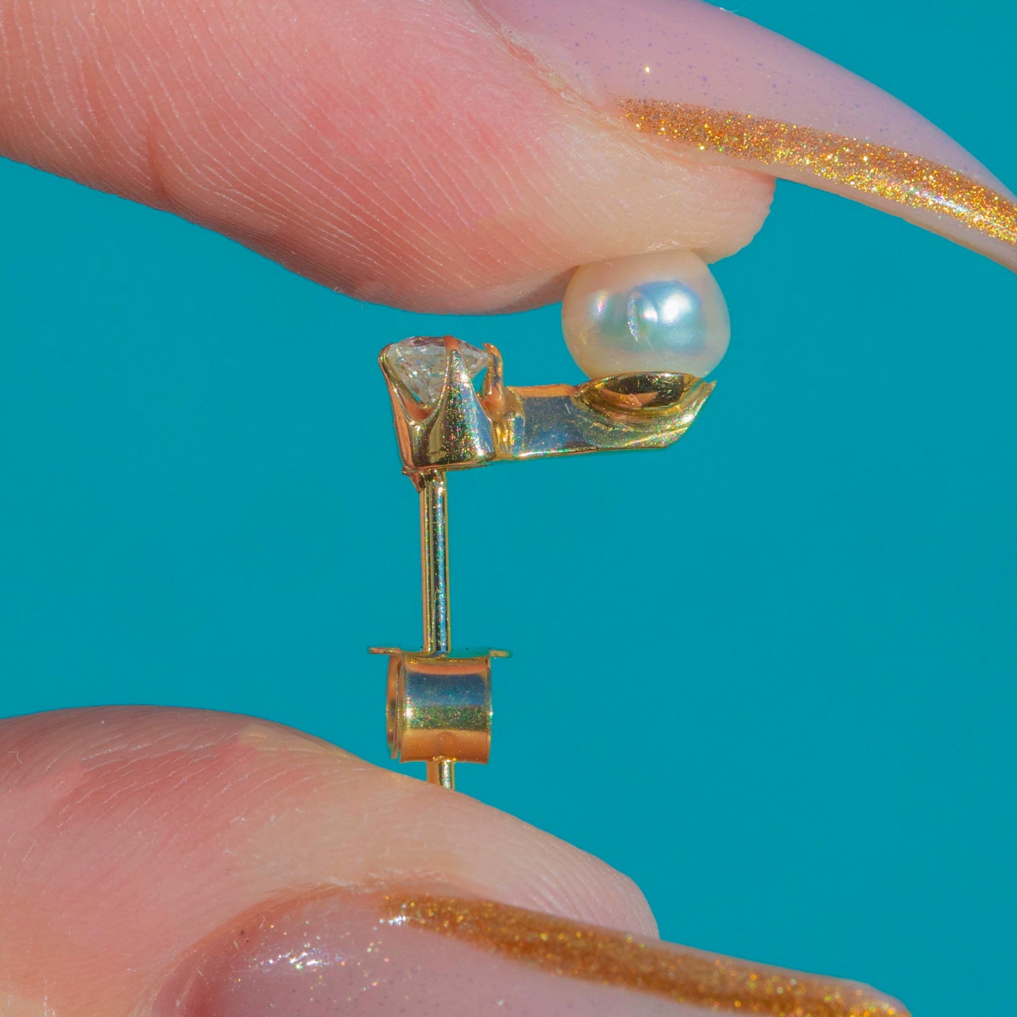 MATERIALS: Tests as 18ct Gold, Pearls, Diamonds (0.15ct total).