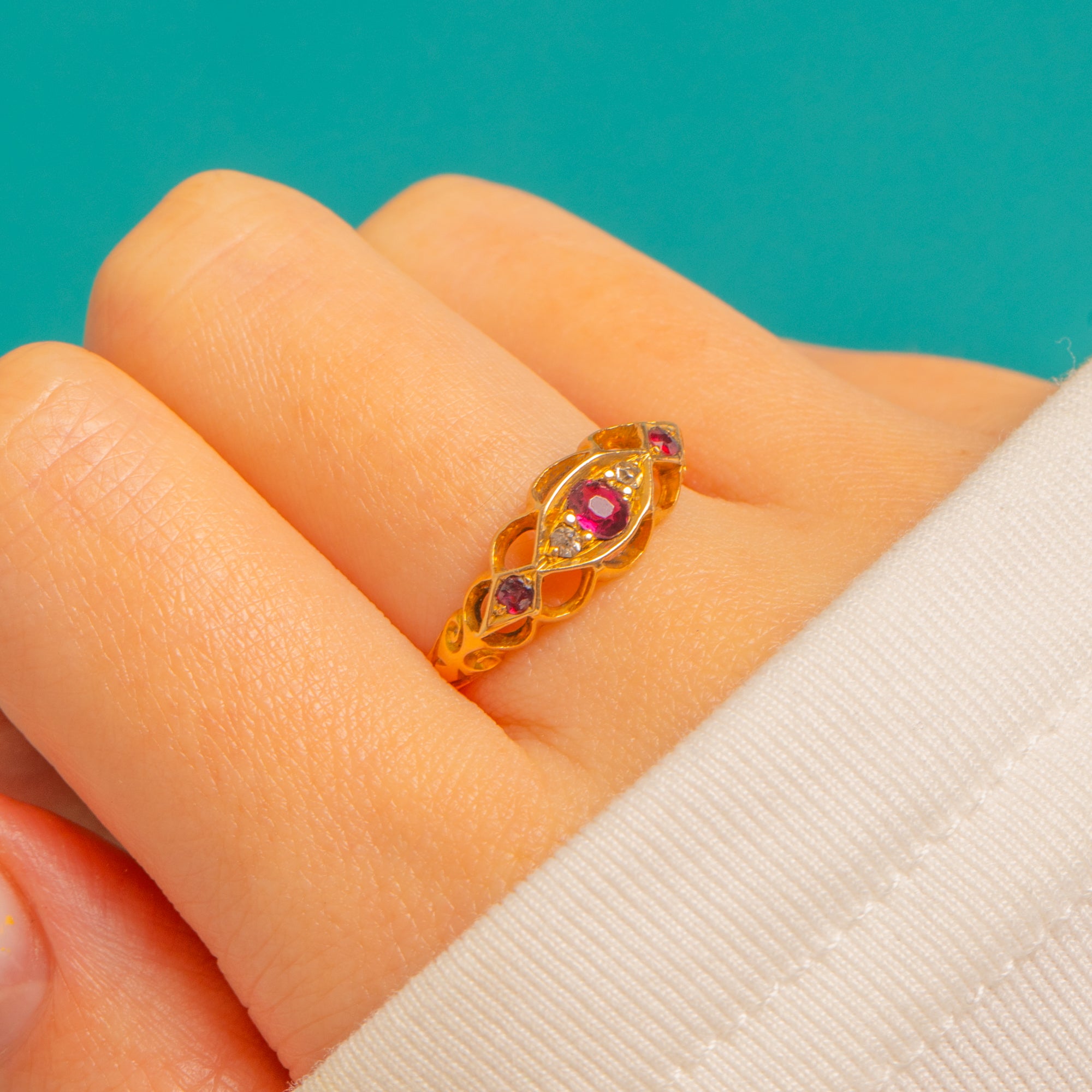 Edwardian 18ct Gold Ruby and Diamond Five-Stone Ring c.1907
