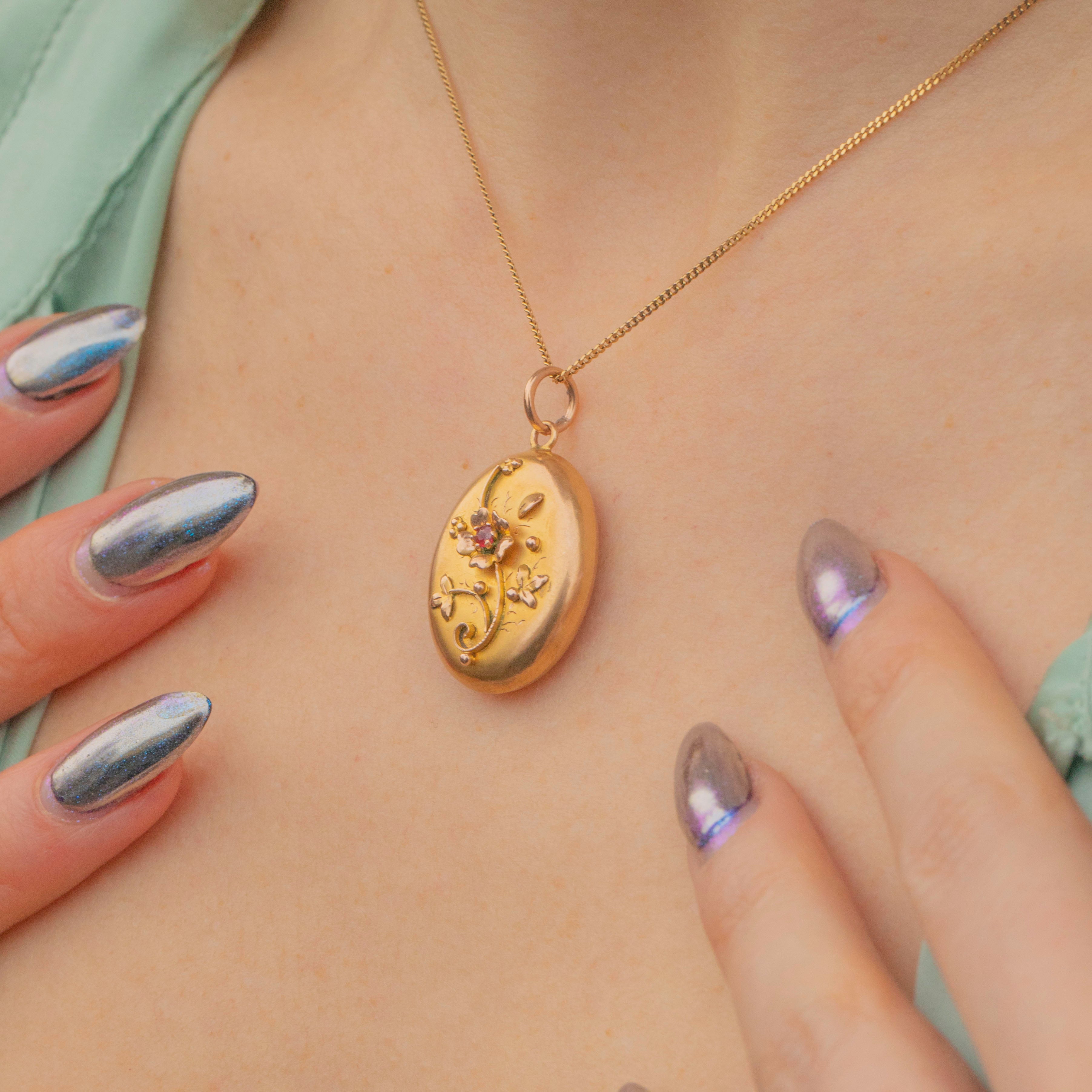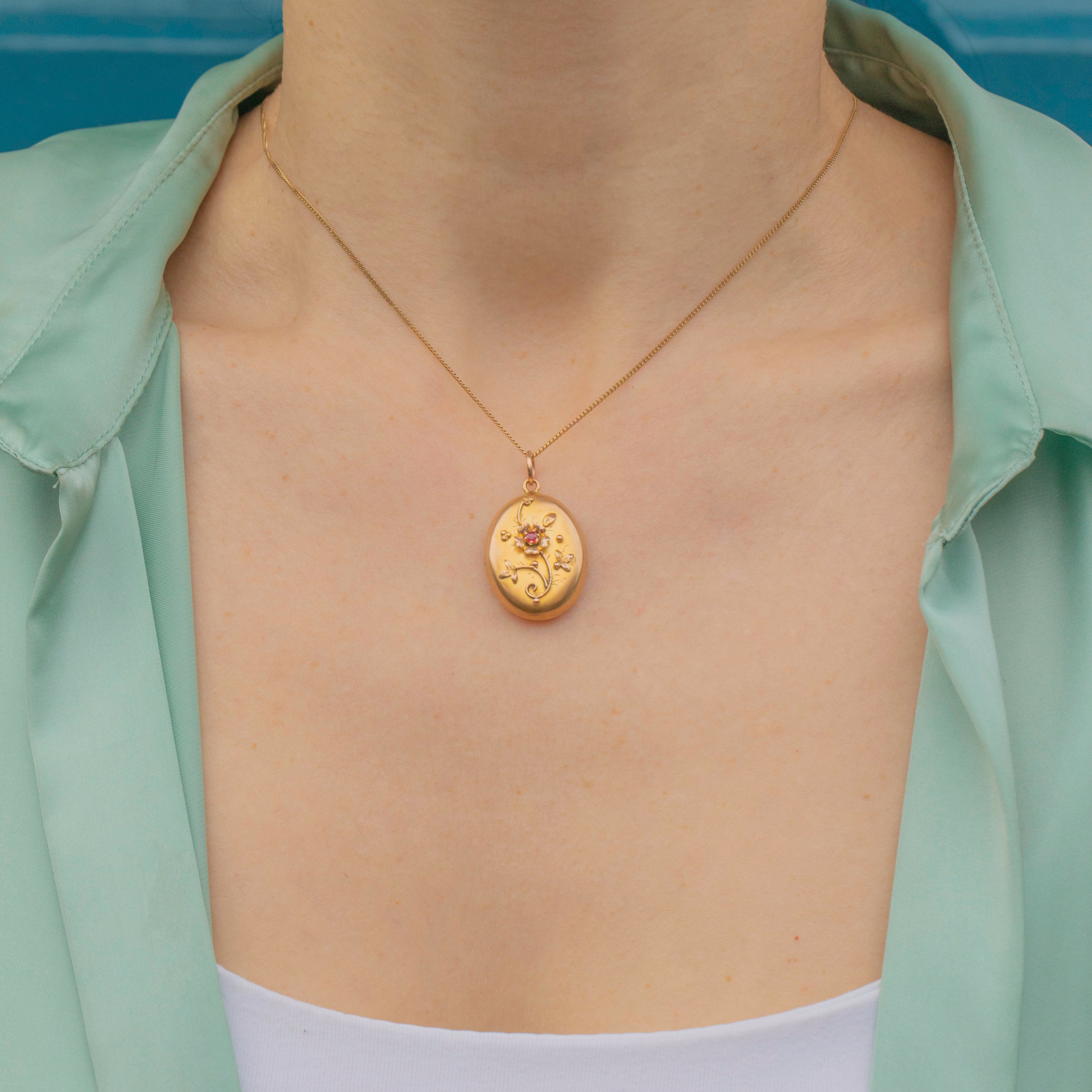 This Edwardian 9ct Gold Garnet flower locket is just adorable!