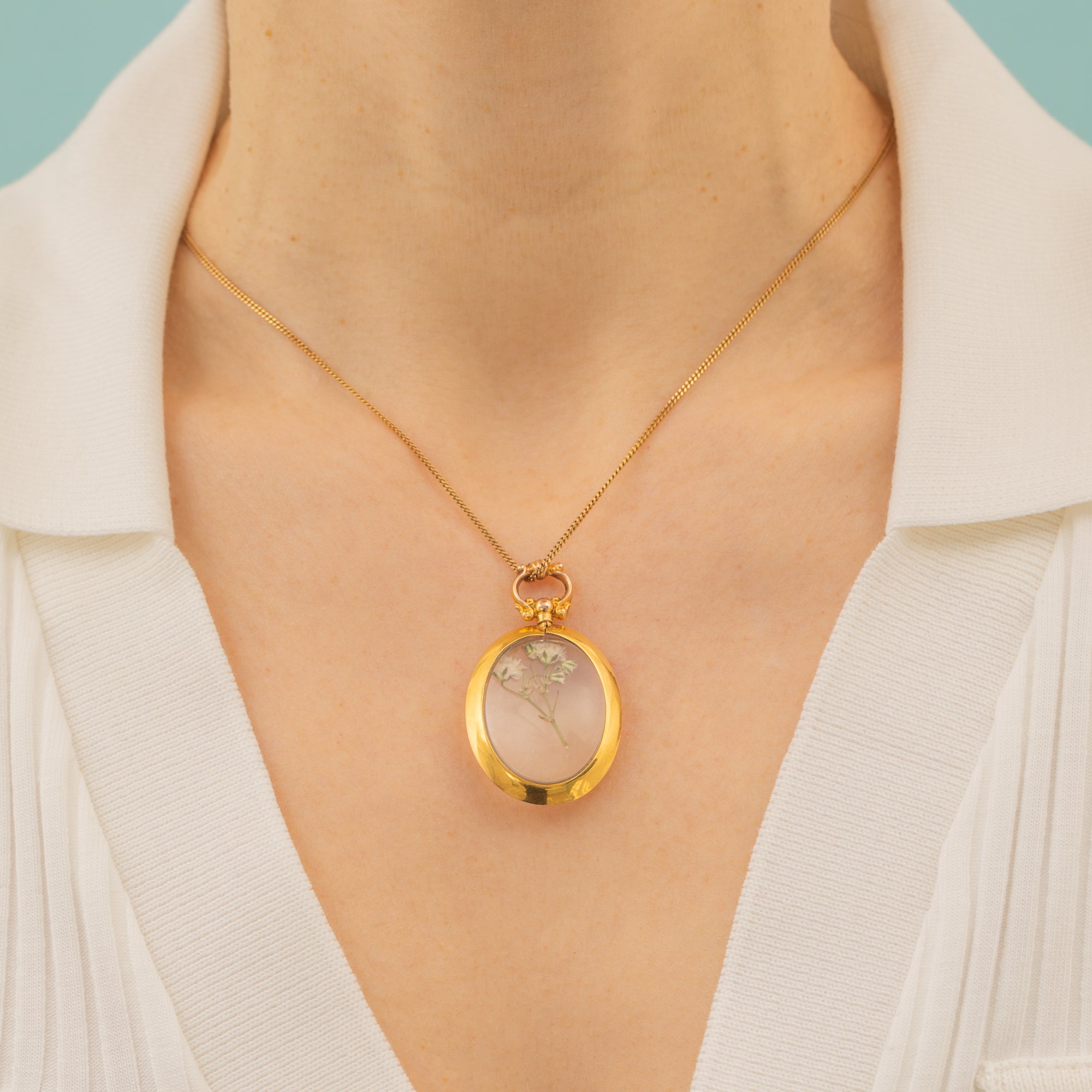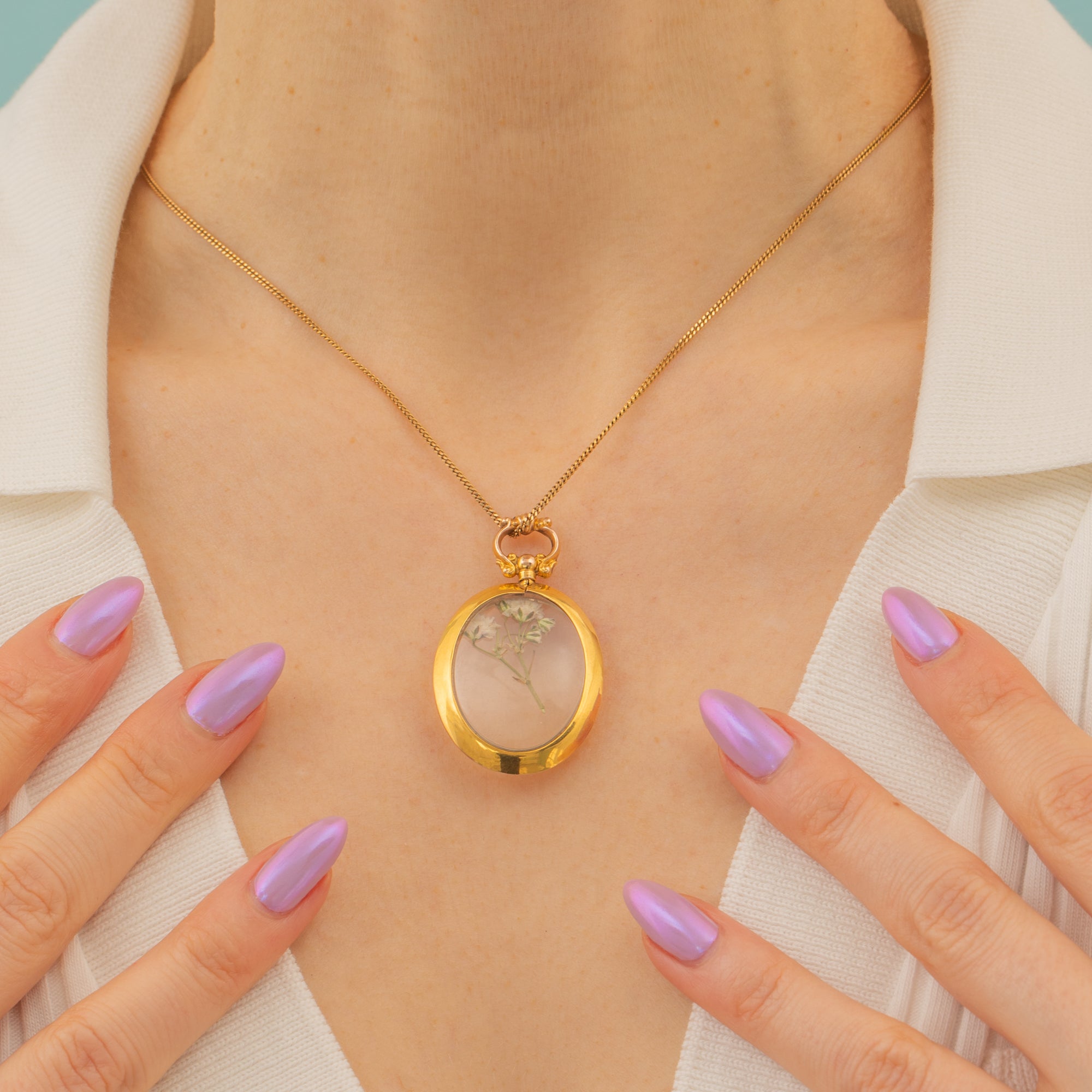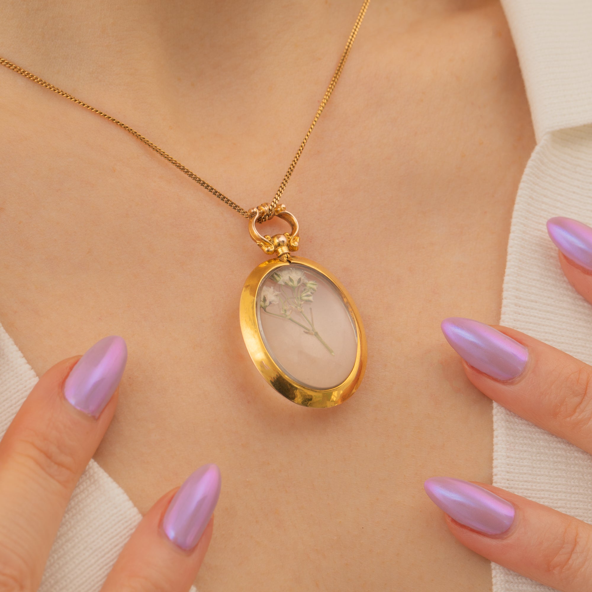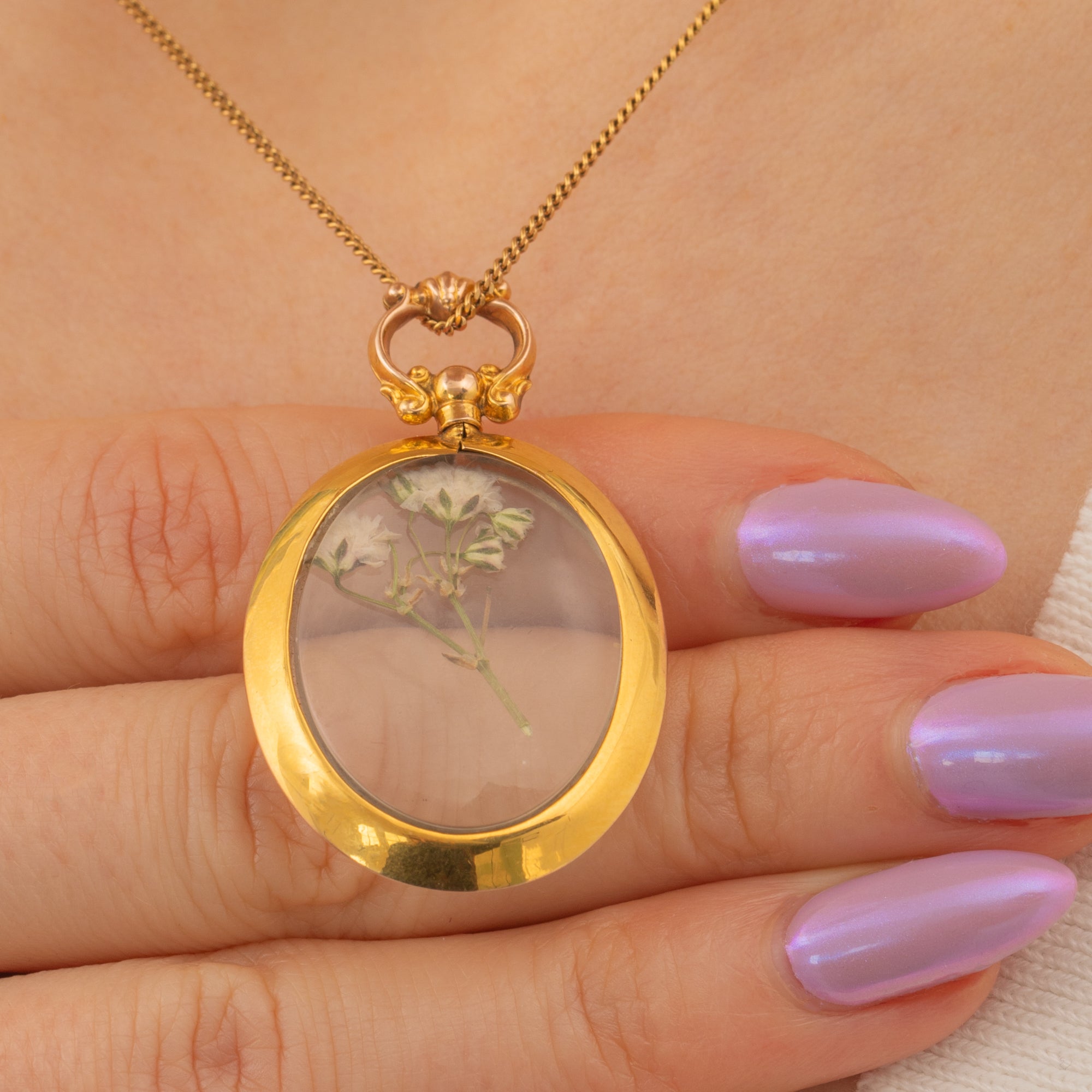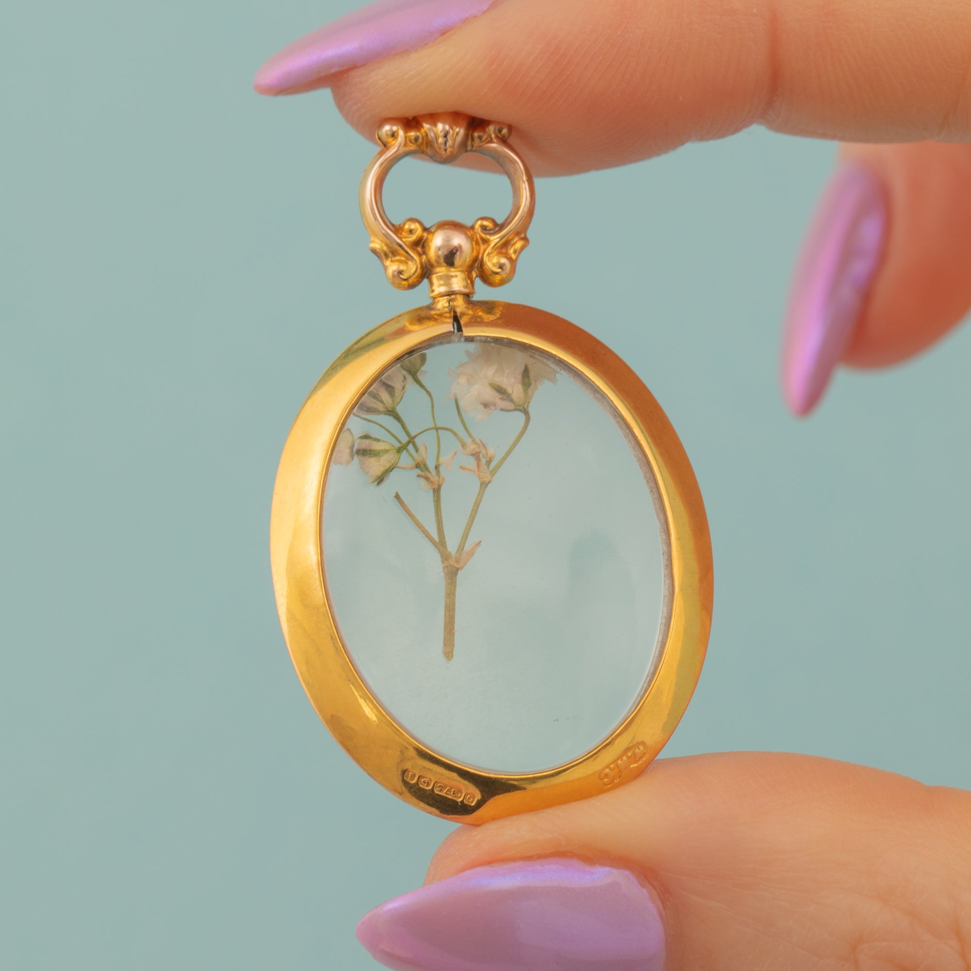Edwardian 9ct Gold Oval Pressed Flower Locket