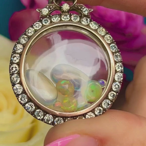 This spectacular Edwardian 9ct Gold Paste shaker locket has been filled with a fine selection of Moonstone and Opals that will dazzle anyone lucky enough to lay eyes on her!
