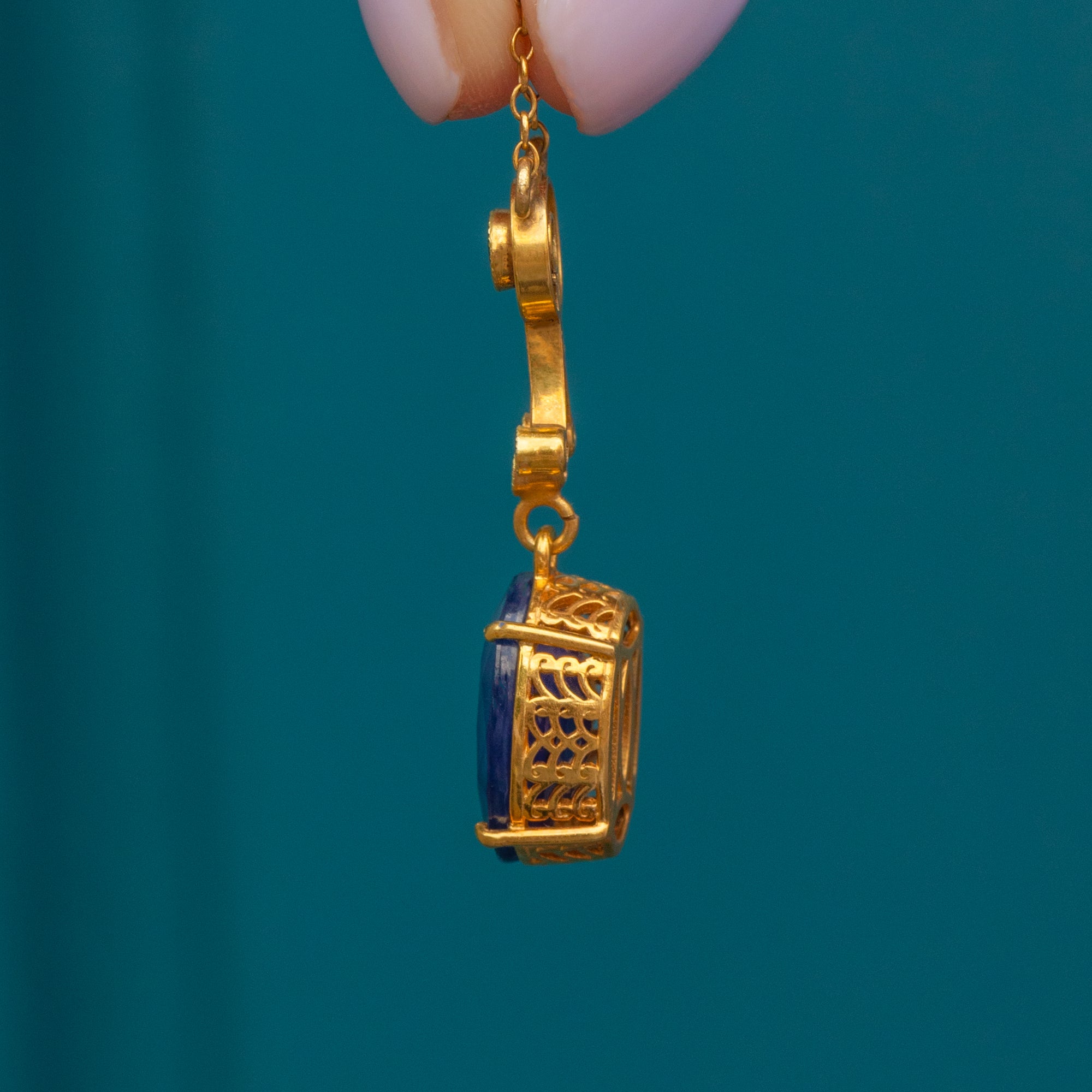 This sublime Edwardian 9ct Gold Sapphire Diamond drop necklace has a gorgeous design! Sitting beautifully against your décolletage, this striking antique pendany has striking blue Sapphires and twinkling Diamonds that you can't help but fall in love with!