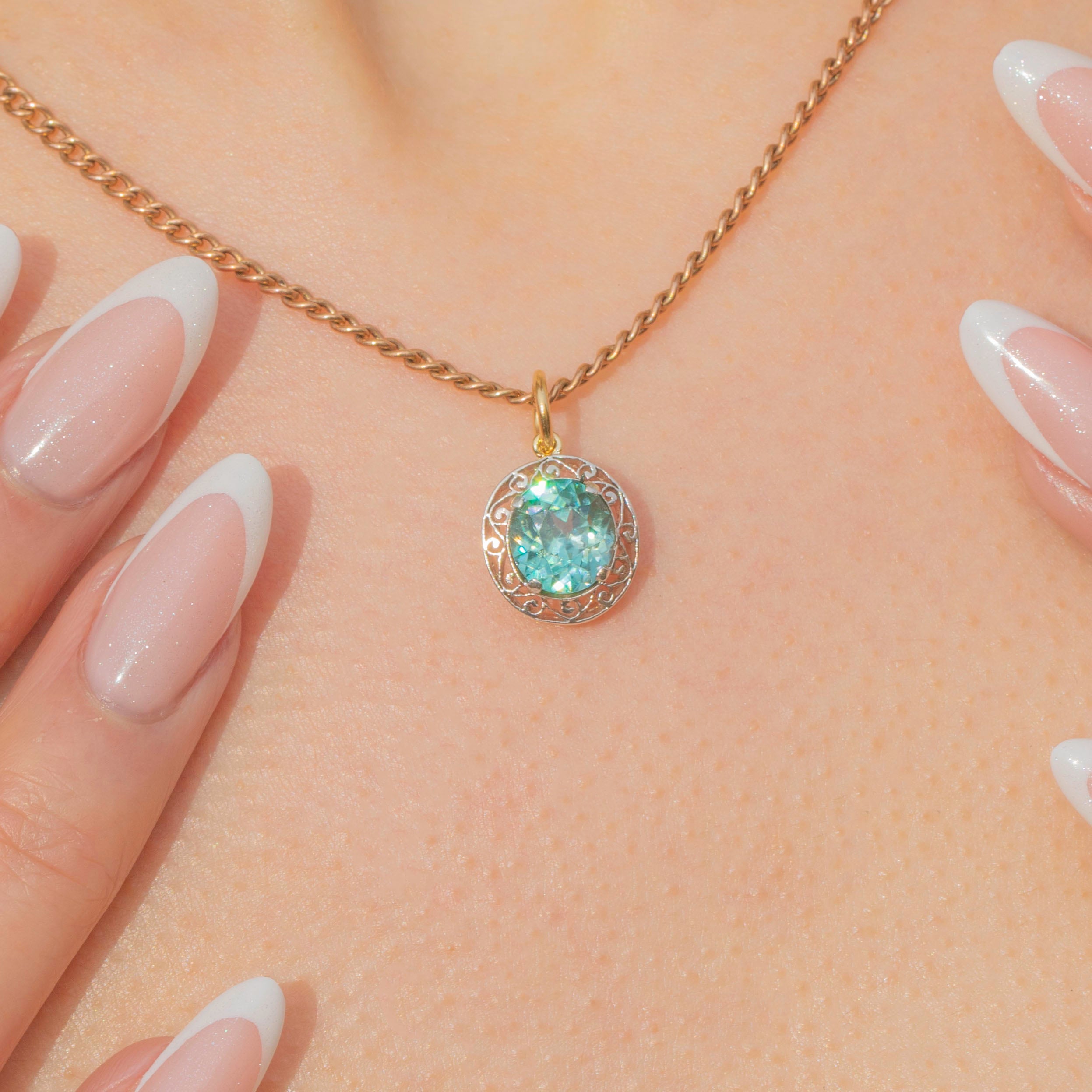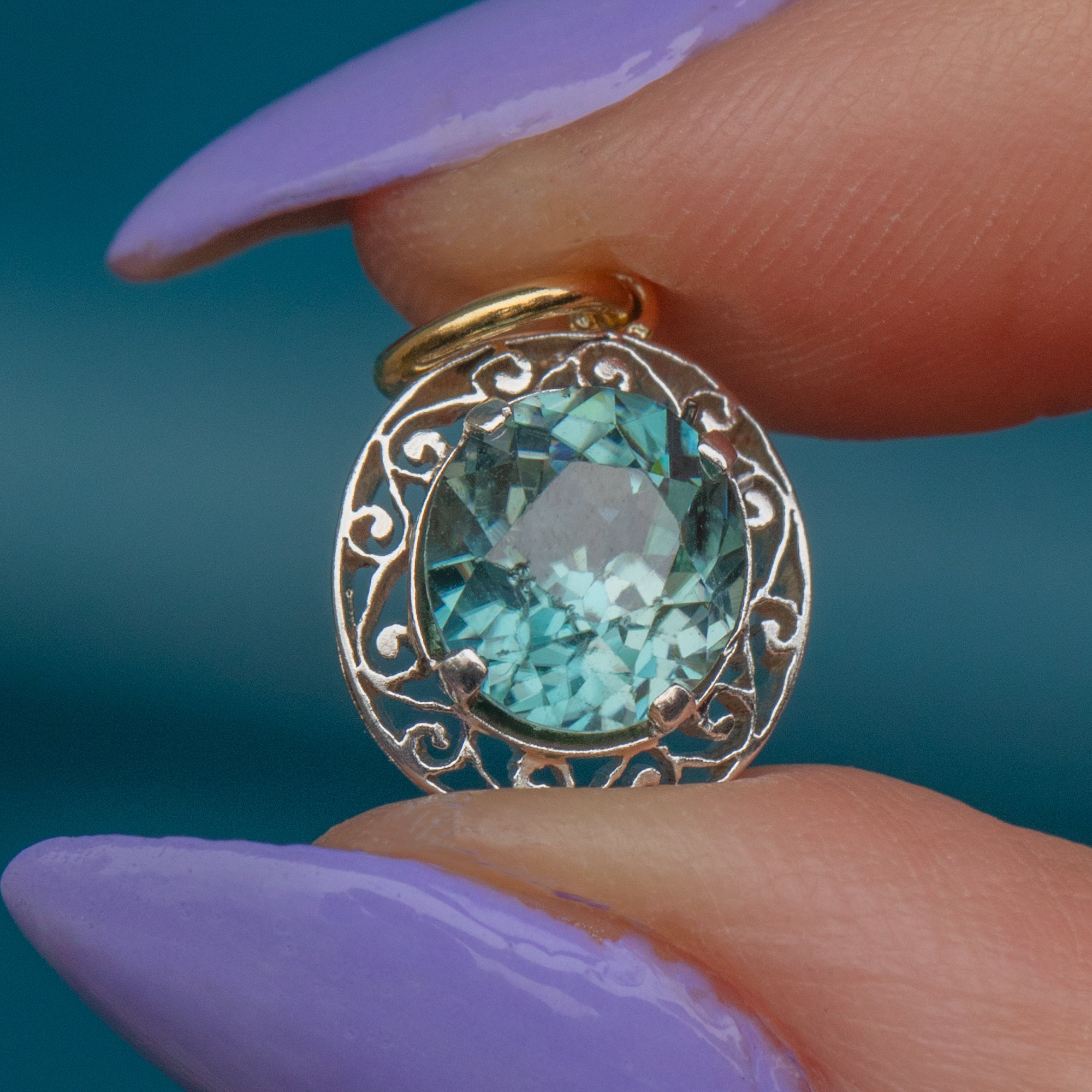 Edwardian Blue Zircon Filigree Charm, 1.30ct