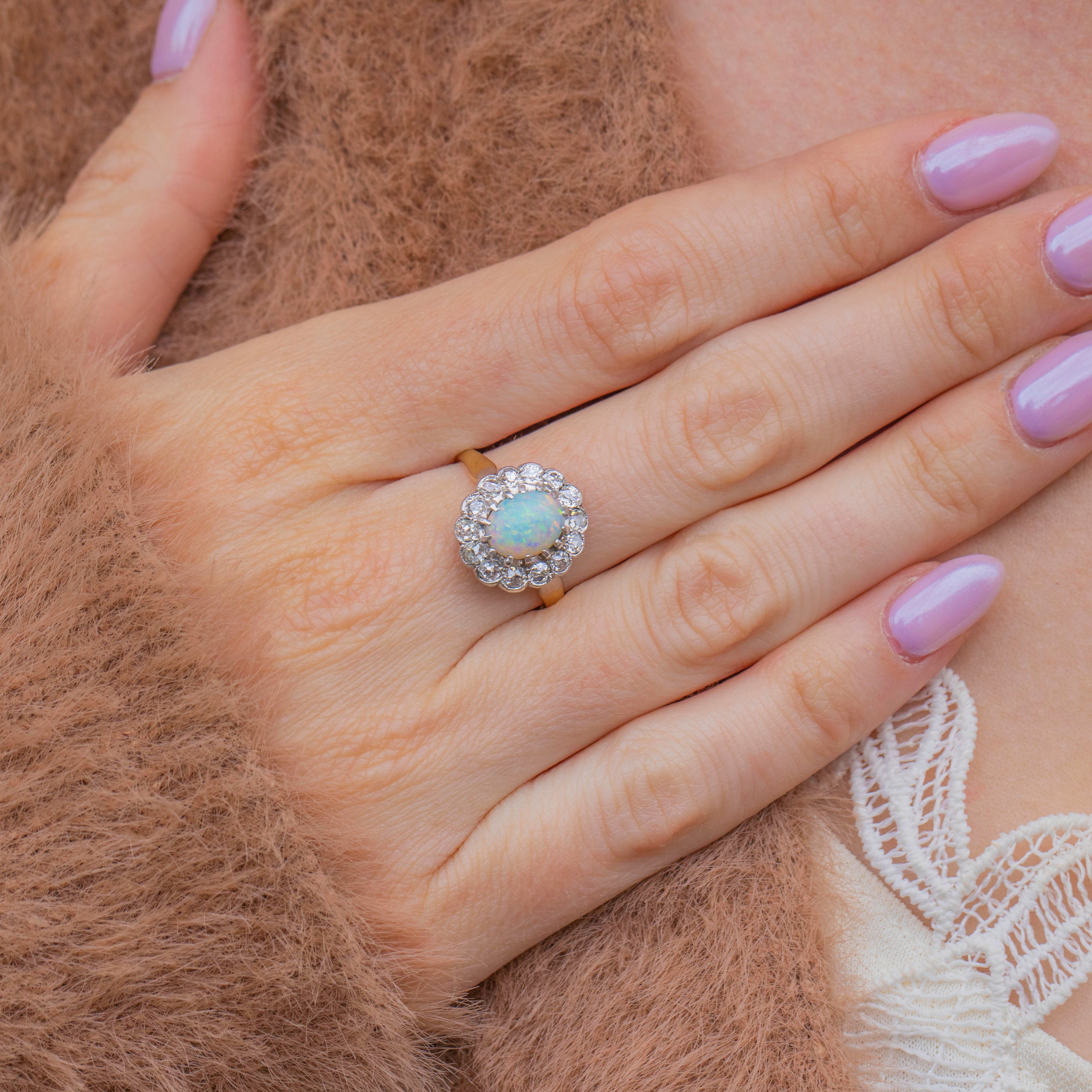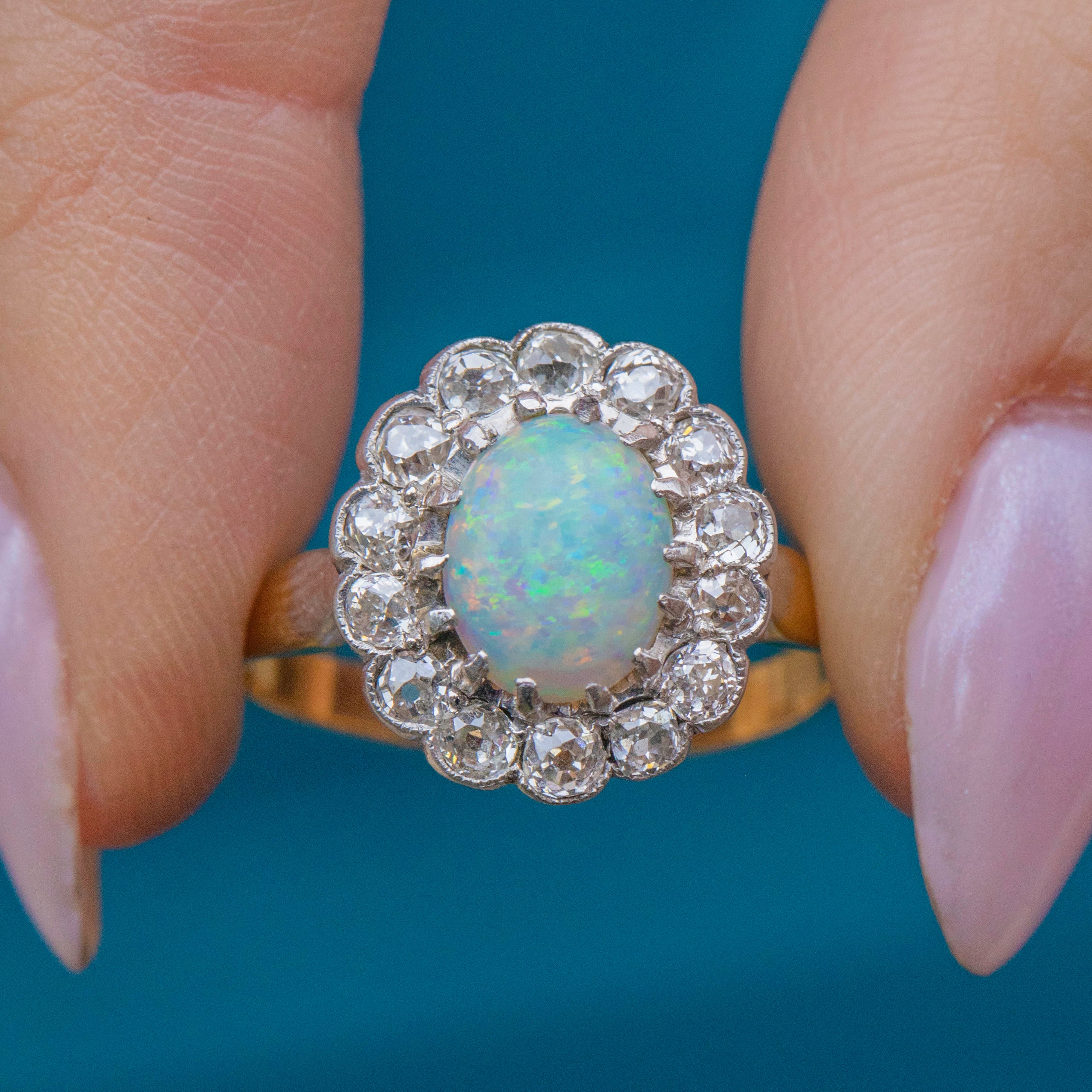 Edwardian Opal Diamond Cluster Ring, 0.75ct Opal, 18ct Gold & Platinum