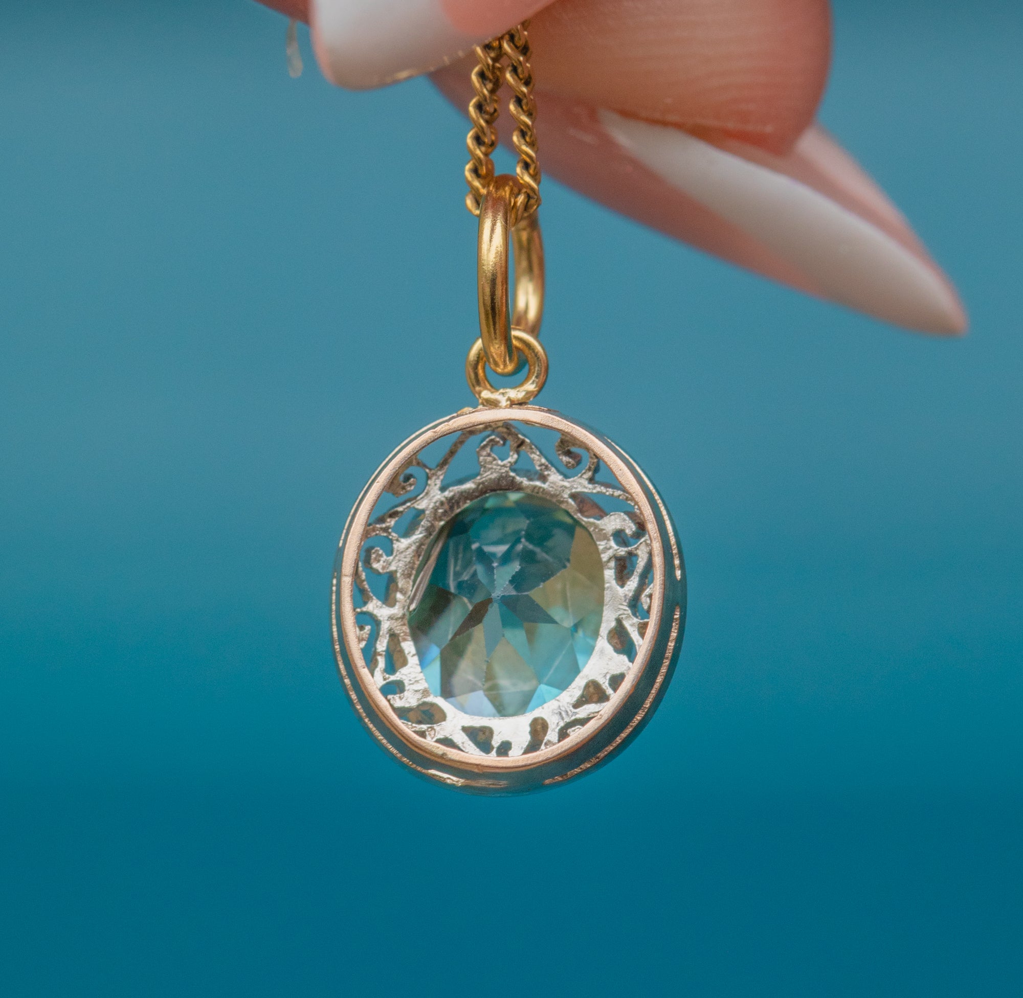 A decorative Silver filigree border wraps elegantly around the Zircon, creating an eye-catching design, with the 9ct Gold jump ring making it easy to style. A dainty delight, this antique Zircon pendant will make a lovely addition to your collection!
