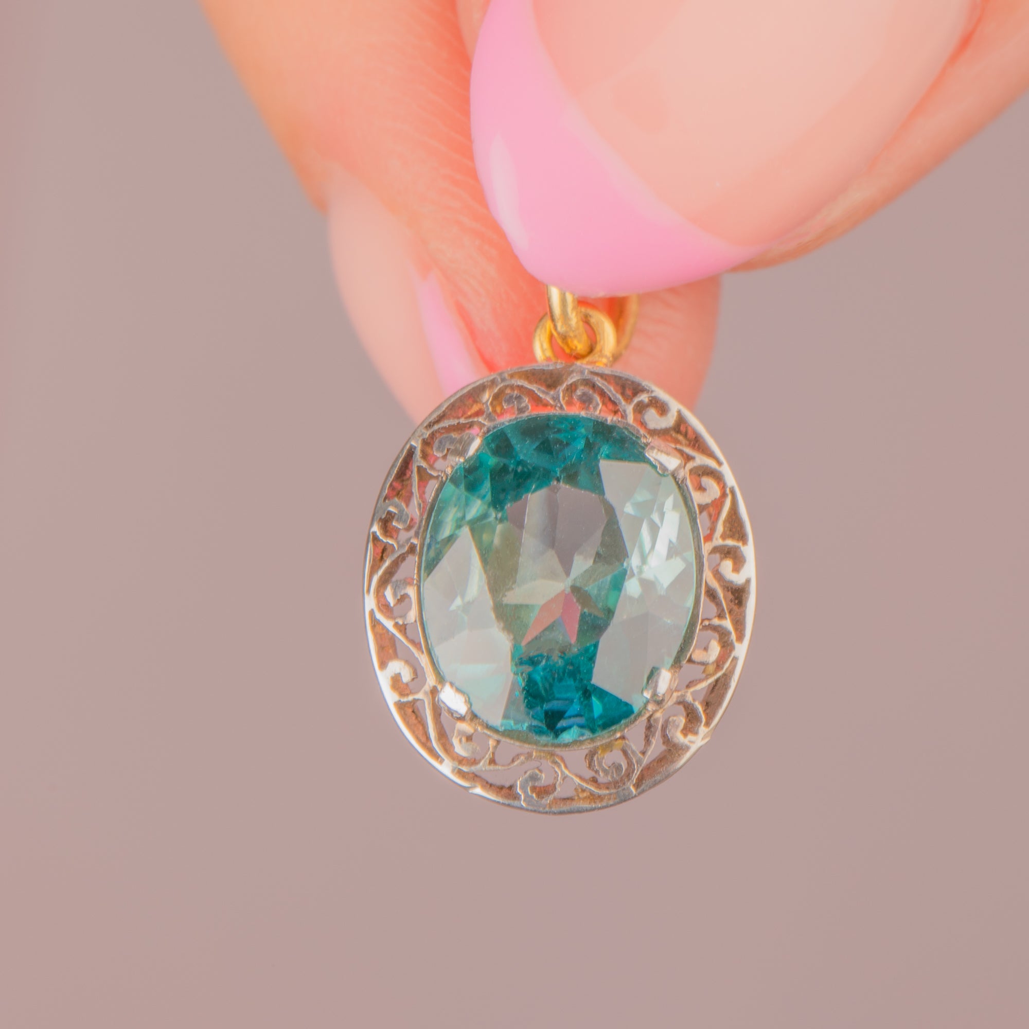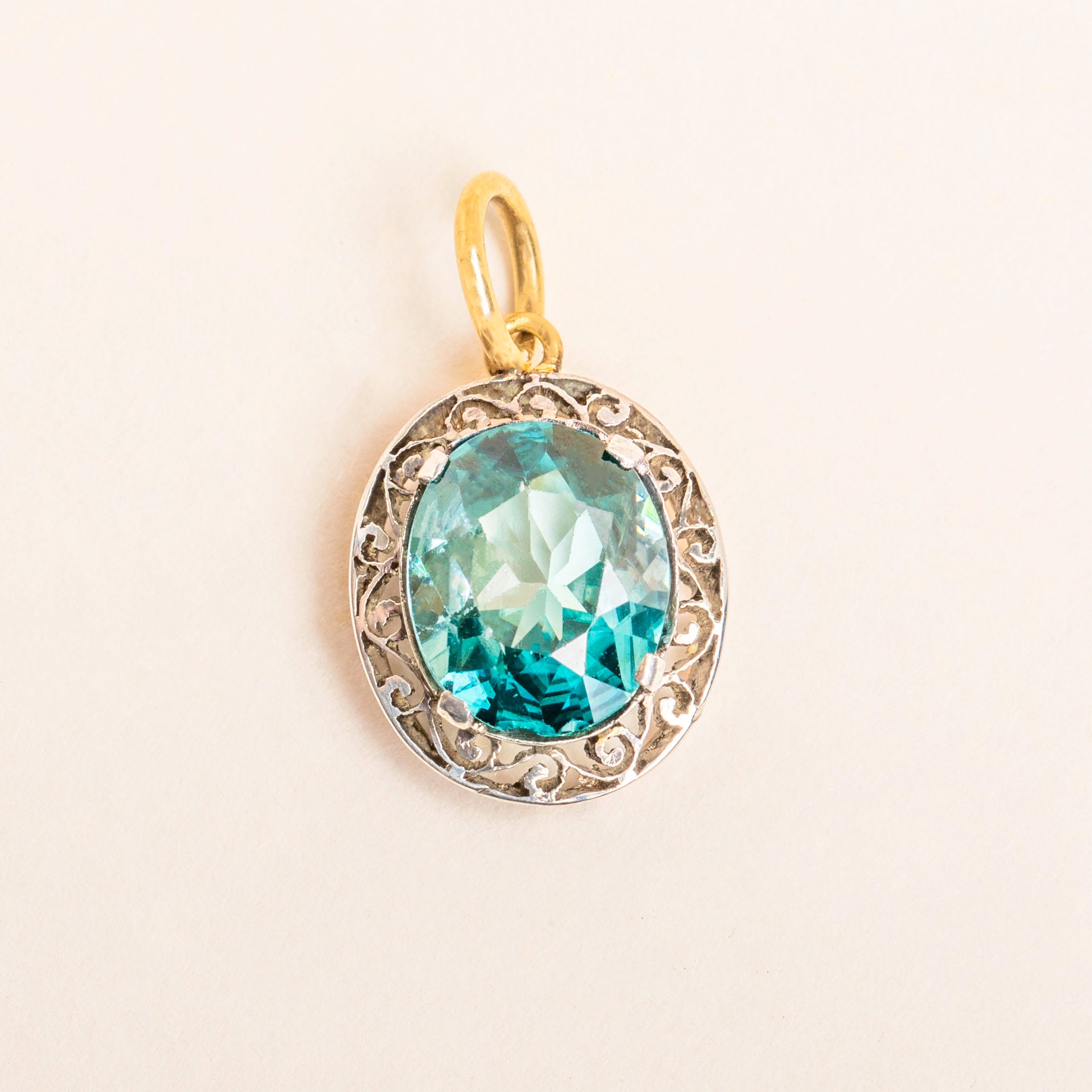 Edwardian Silver & 9ct Gold Blue Zircon Charm, 1.80ct