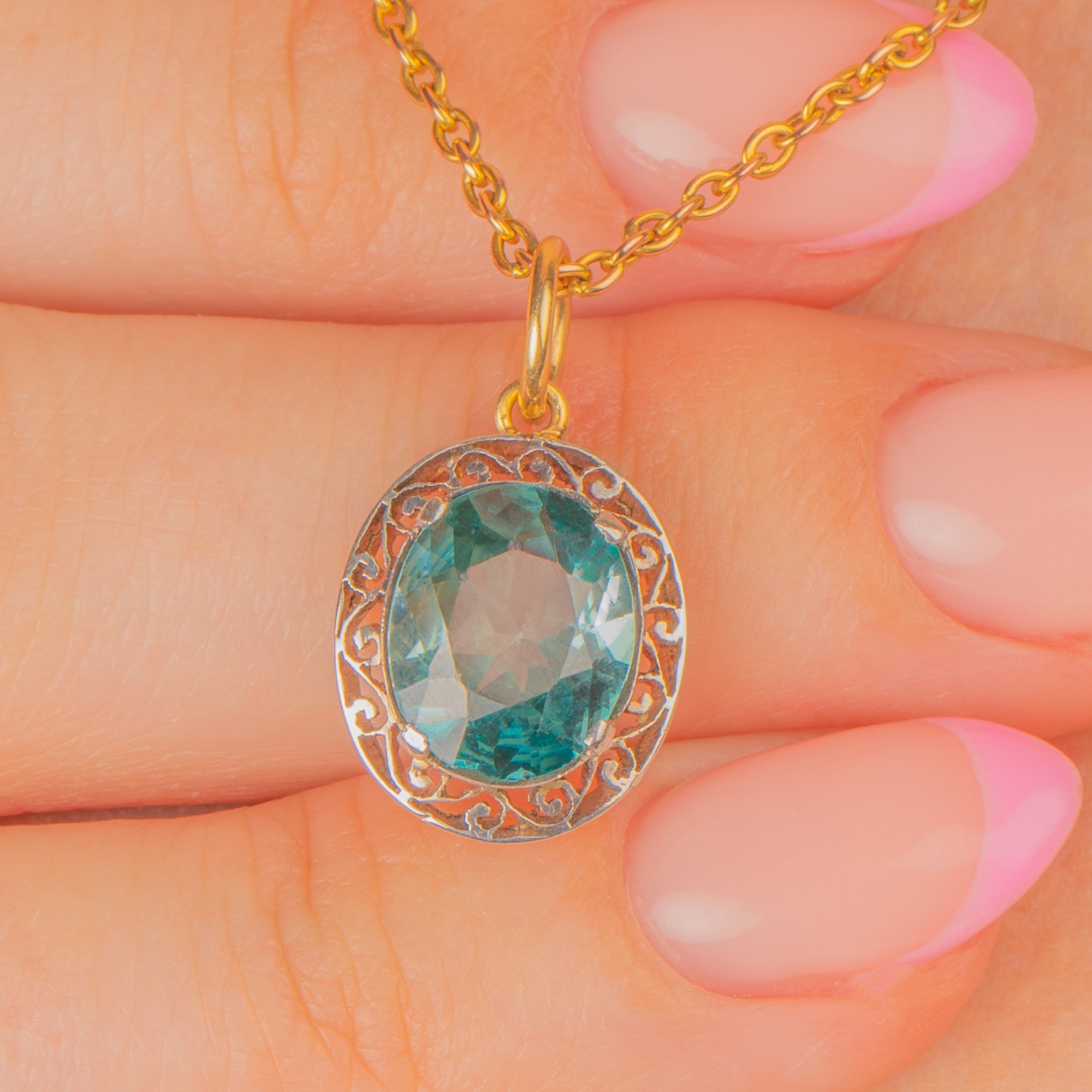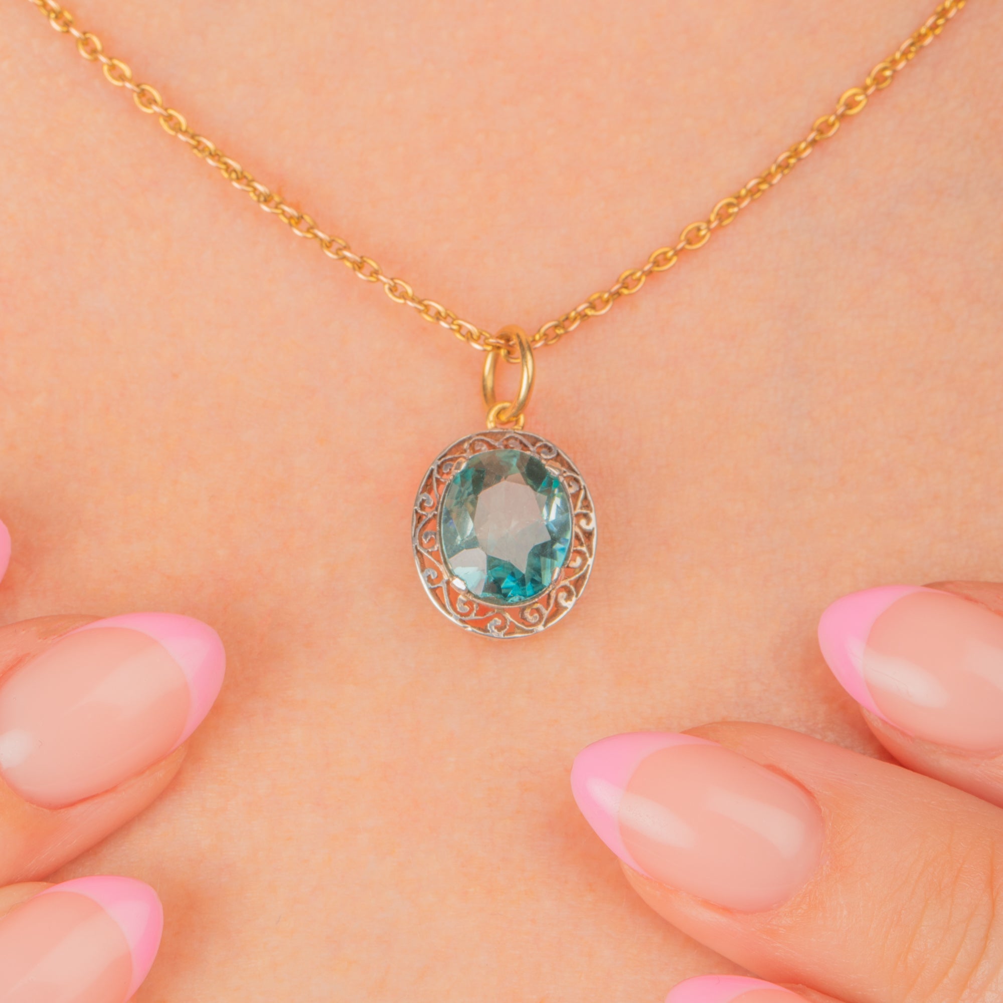 MATERIALS: Tests as Sterling Silver pendant, 9ct Gold jump-ring, Blue Zircon (1.80ct).