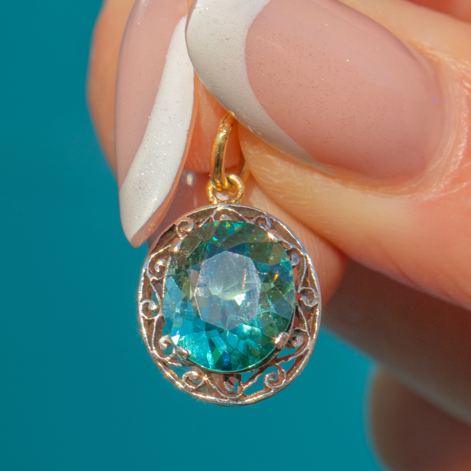 Edwardian Silver & 9ct Gold Blue Zircon Charm, 2.50ct