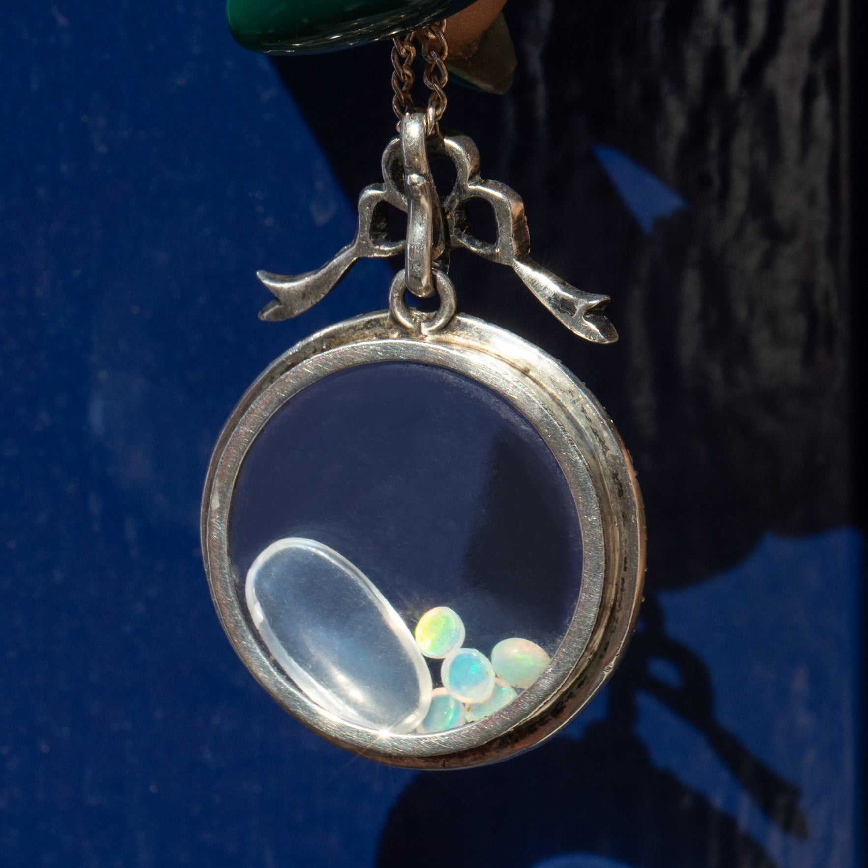Edwardian Silver Paste Shaker Locket, Moonstone & Opals