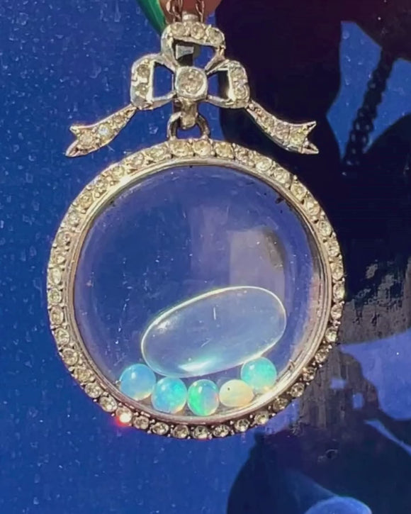 This spectacular Edwardian Silver Paste shaker locket has been inlaid with a fine selection of Moonstone and Opals that will dazzle anyone lucky enough to lay eyes on her!