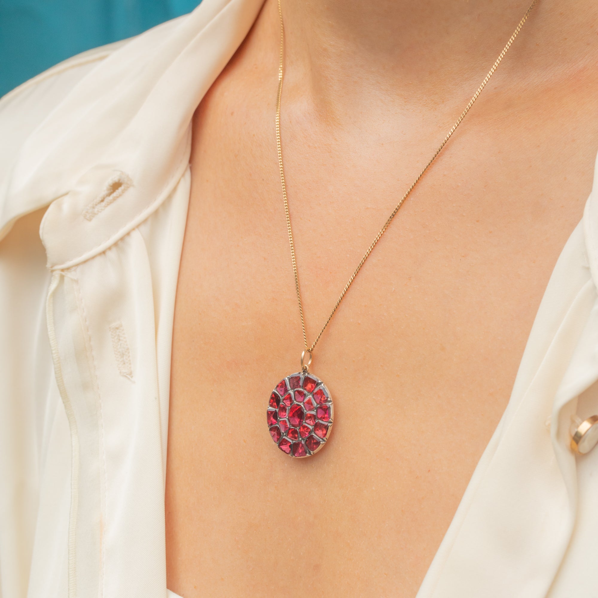 English Georgian Era Foiled Flat Garnet Cluster Pendant, c.1800