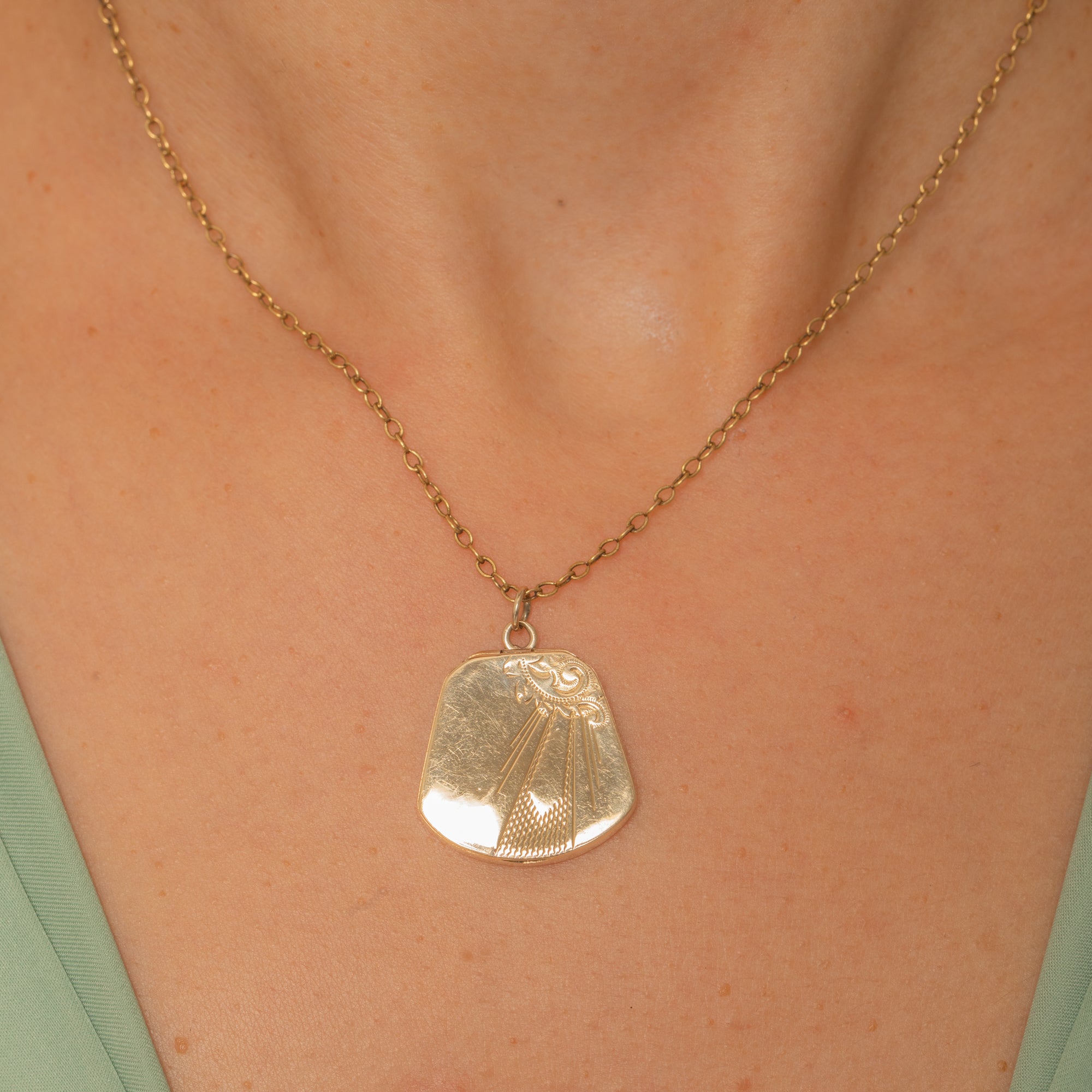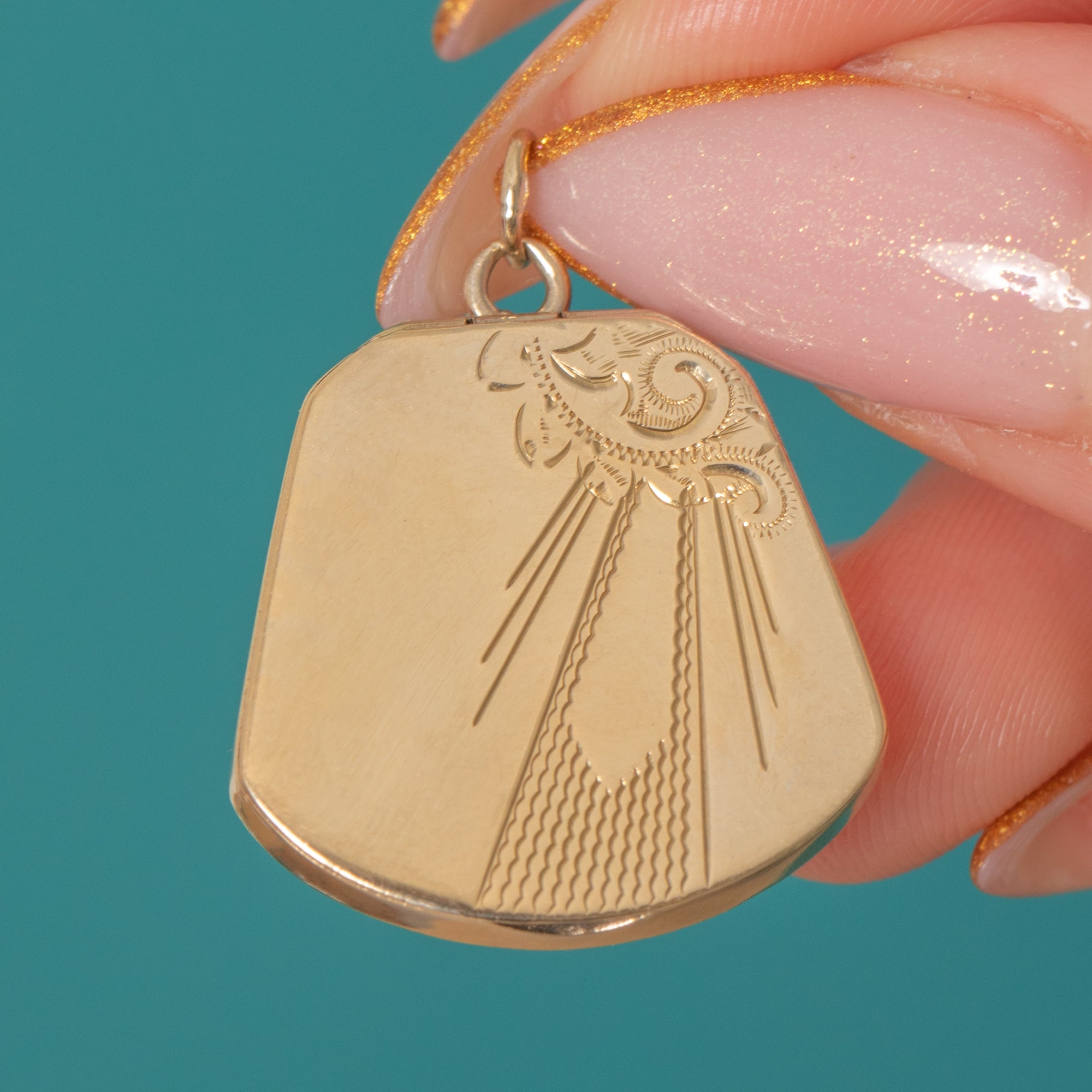 A sleek and stylish Art Deco locket with a classic geometric design, crafted in 9ct Gold back and front. Its crisp lines and softly polished panels give it that unmistakable 1920’s elegance — clean, modern, and effortlessly wearable. Light yet sturdy, it’s the perfect everyday locket for adding a touch of Deco glamour to any chain.