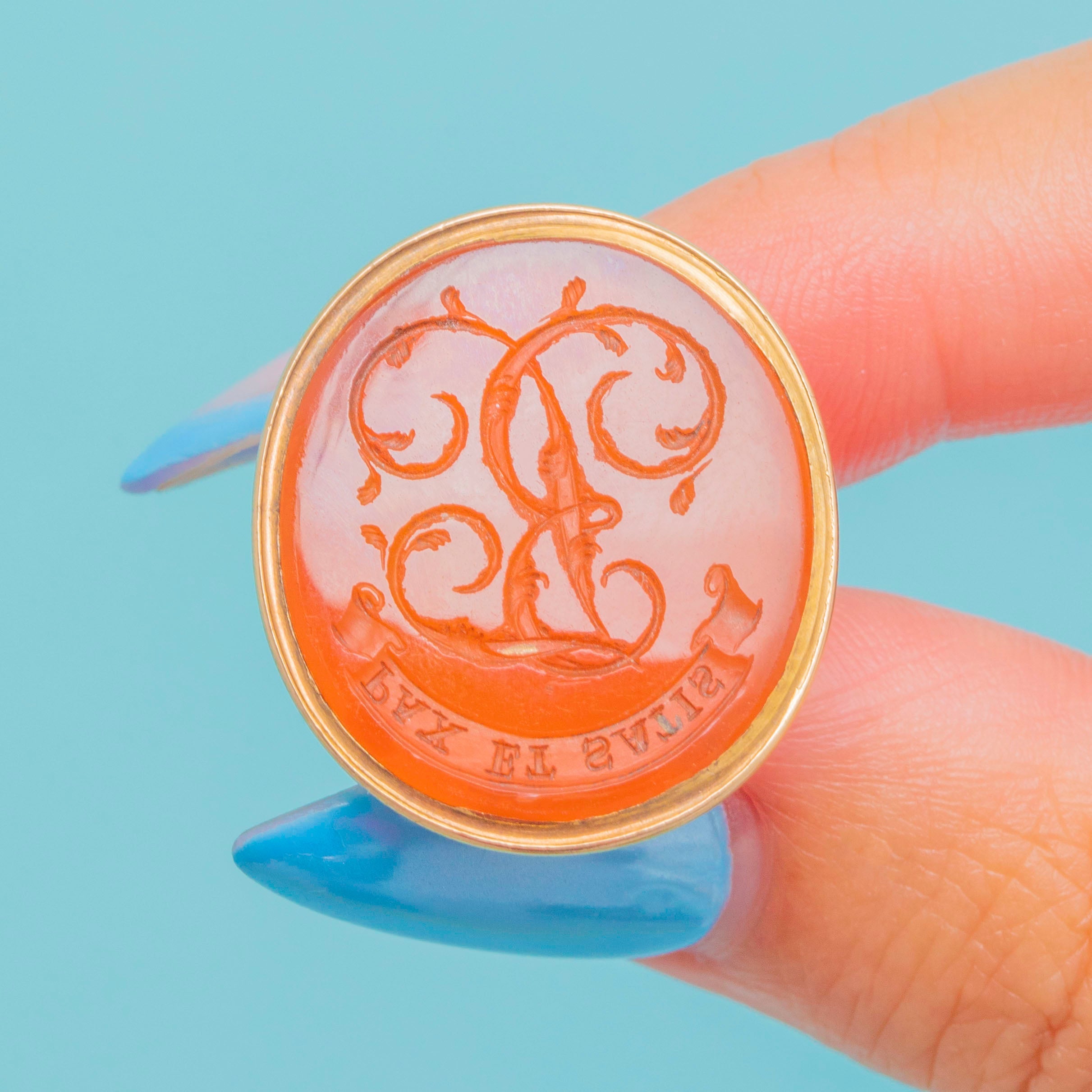 The Carnelian intalio reads "PAX ET SATIS" - Latin for "Peace & Enough", a heartfelt motto encouraging us to take stock, find peace and gratitude in the things we have. A beautiful motto to live by!