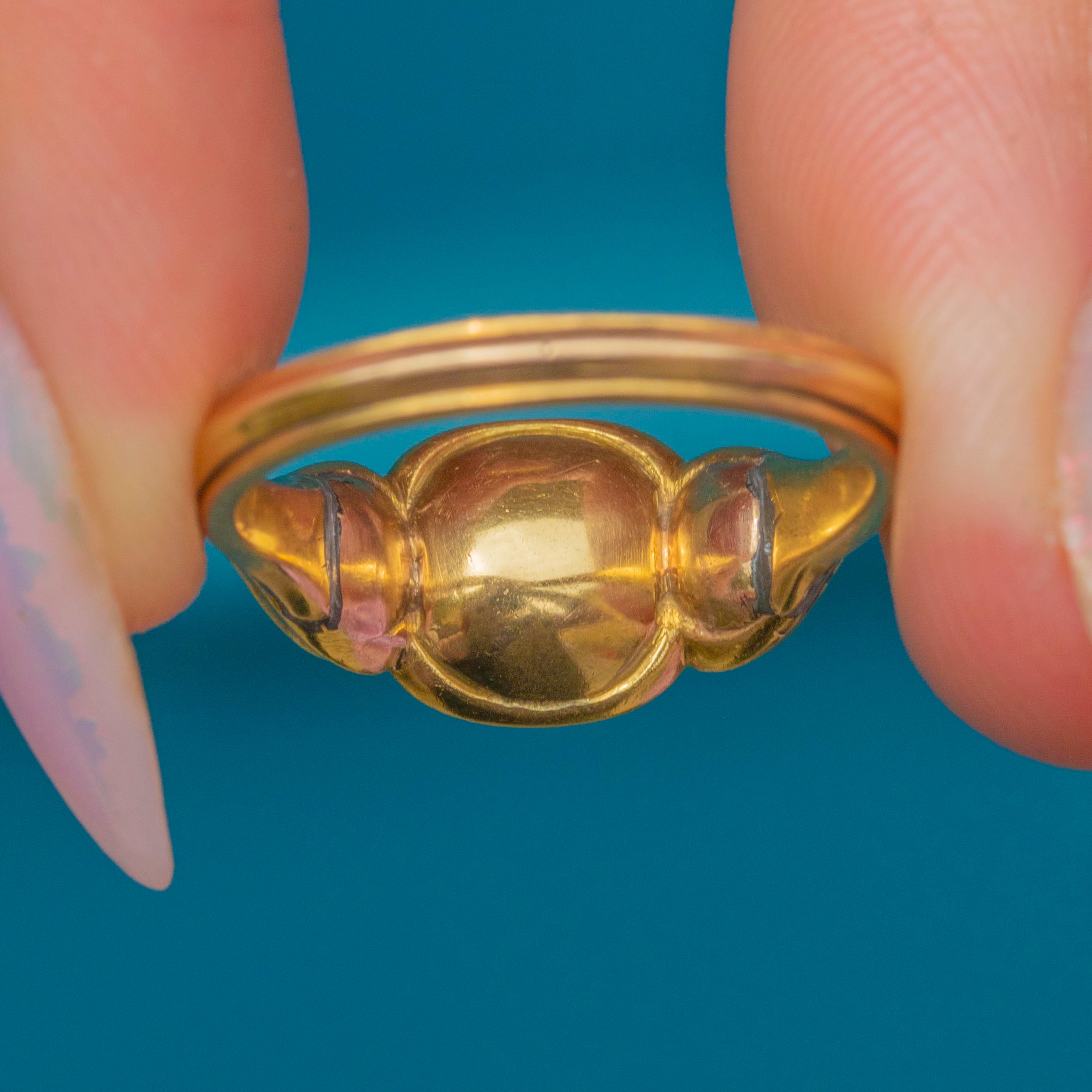 EXCELLENT: The gemstones are all pristine, with no chips or abrasions, each one secure within its setting. The Gold is brightly saturated and smooth, providing a comfortable fit. With little else to note, this rare piece of Georgian jewellery will make an eye-catching addition to your collection!
