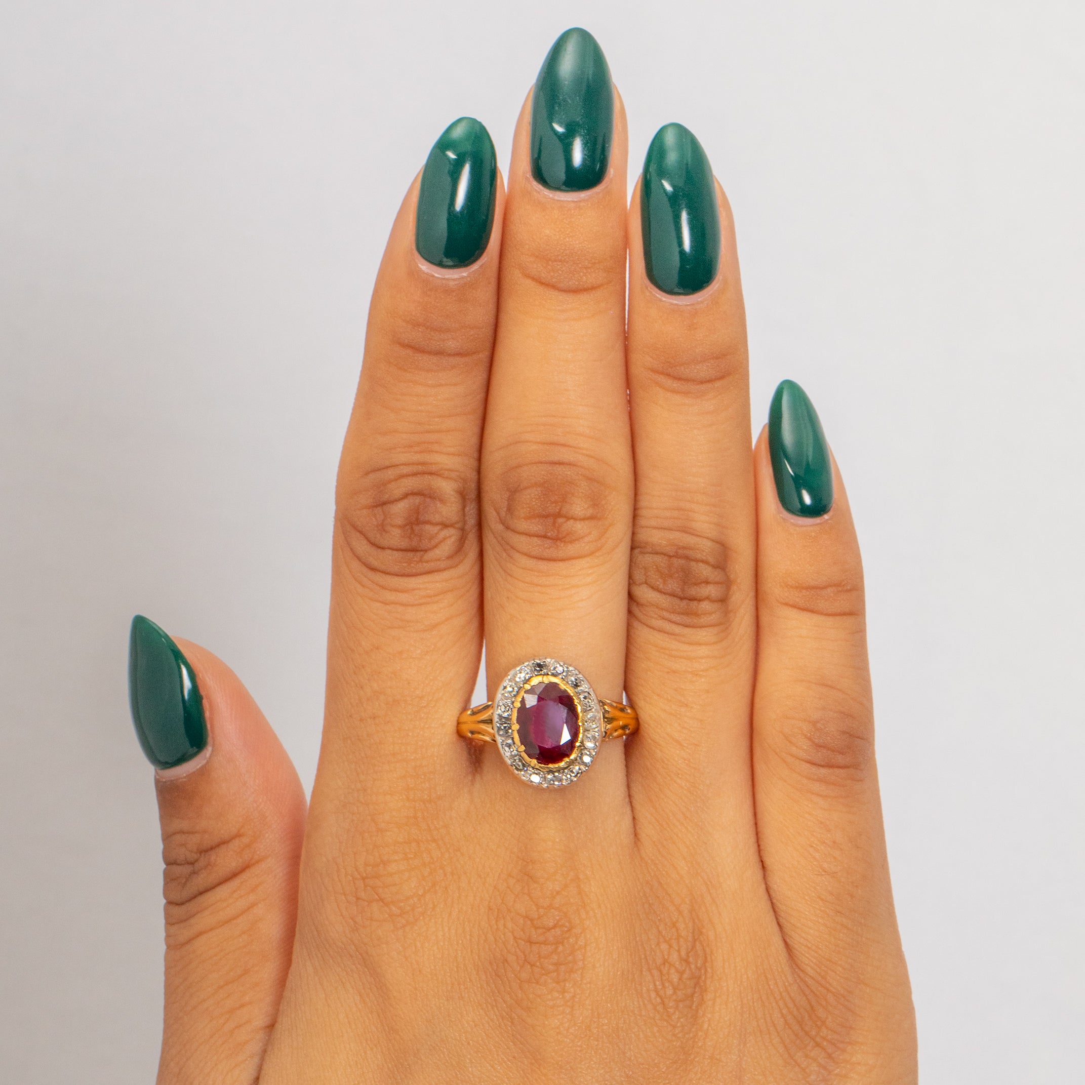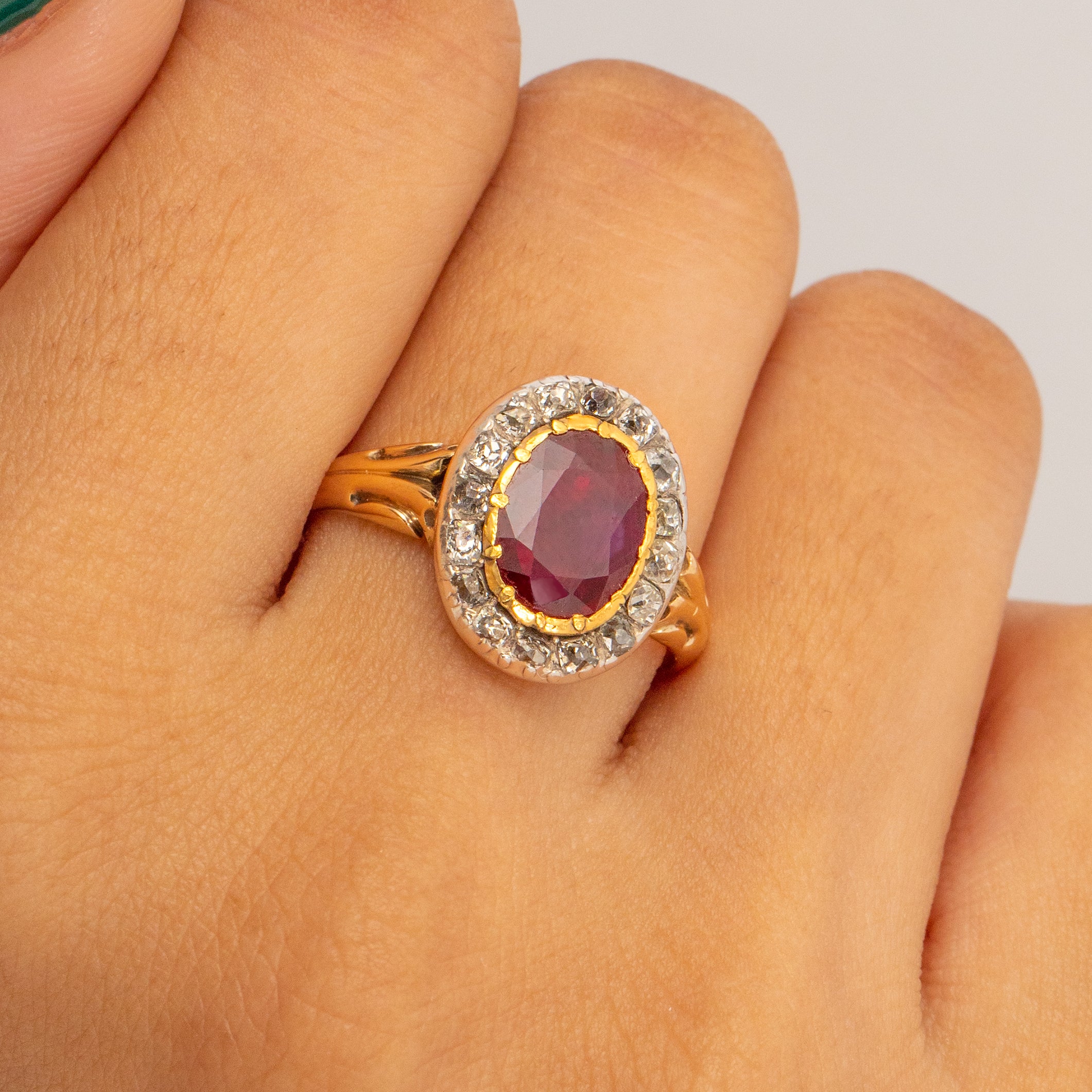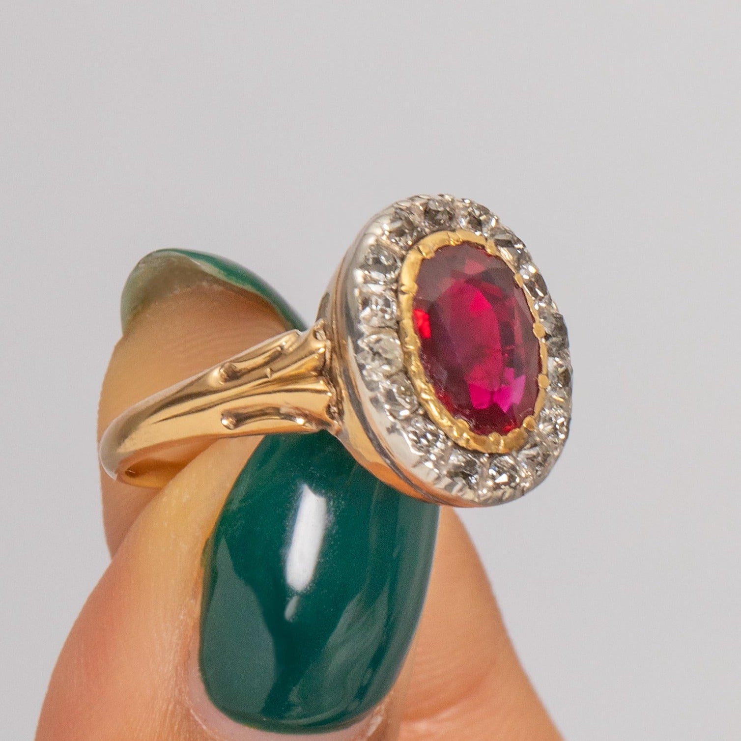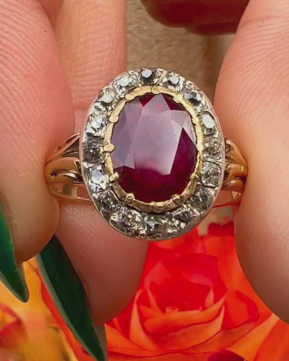 Georgian 18ct Gold Ruby Diamond Cluster Ring, 2.40ct Ruby.