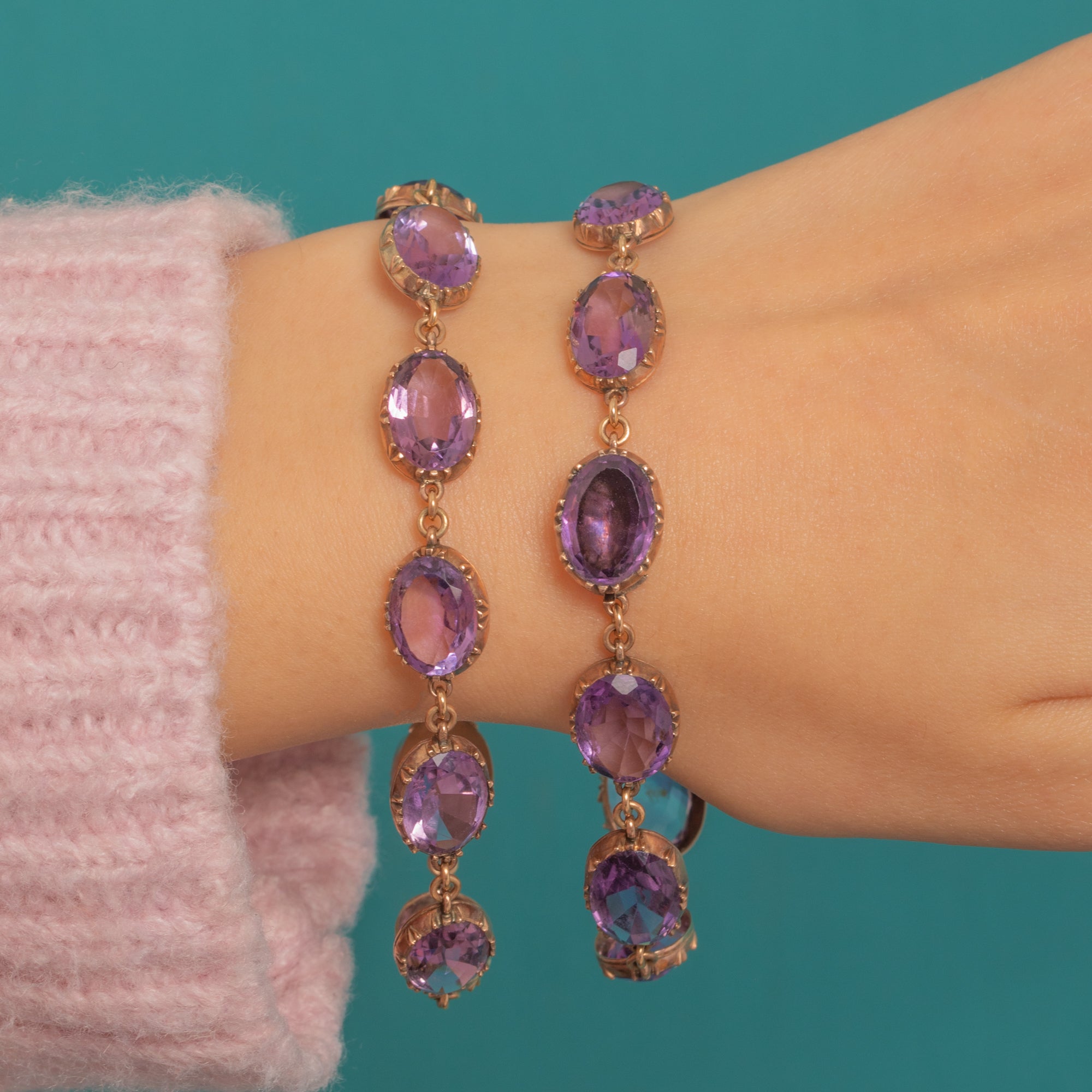 Beautifully wearable and wonderfully versatile, this rivière converts into two bracelets for day-to-night styling. With approximately 38.50 carats of Amethyst and that distinctive Georgian craftsmanship, it’s an exquisite sweep of colour and light.