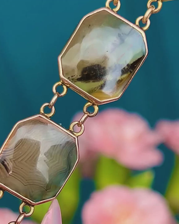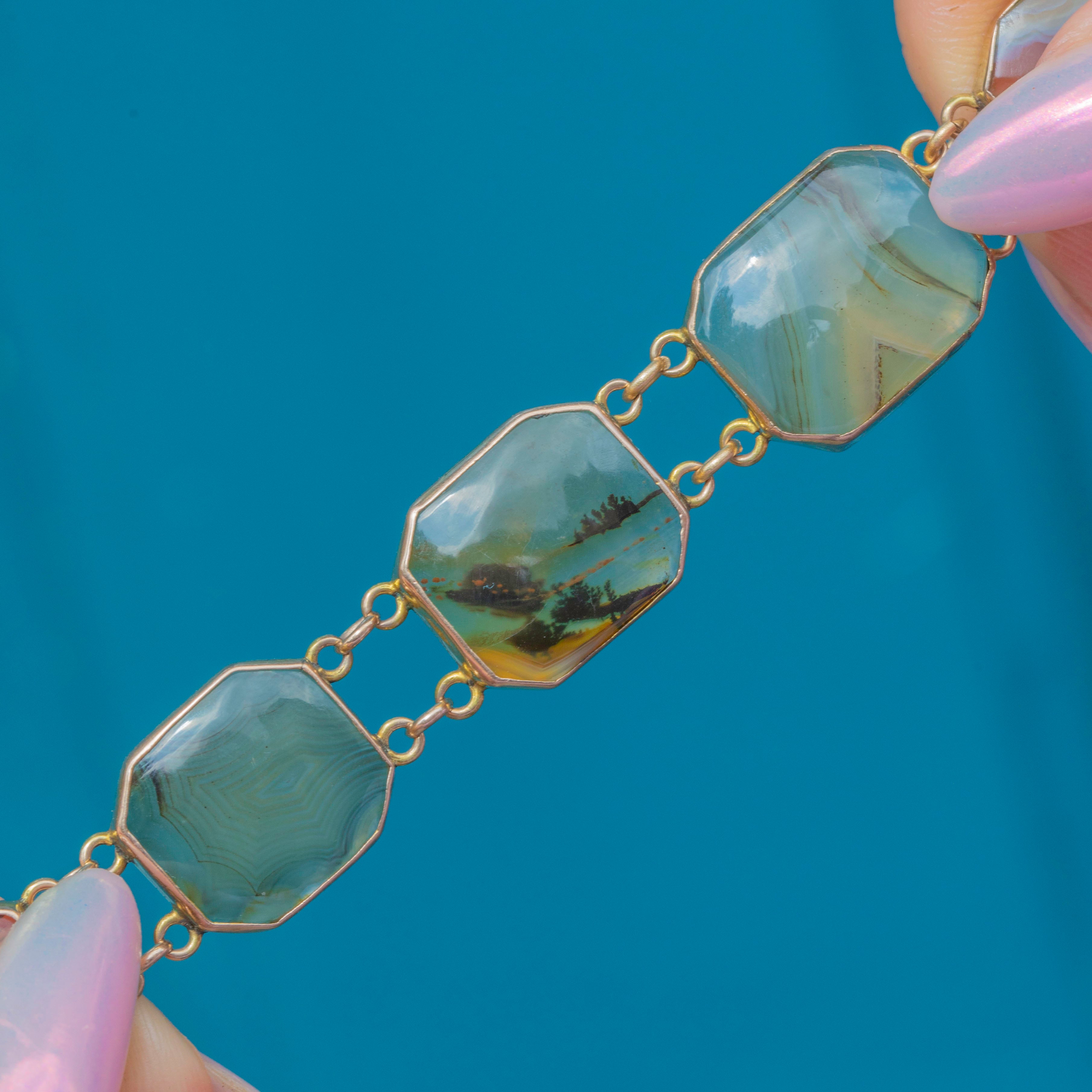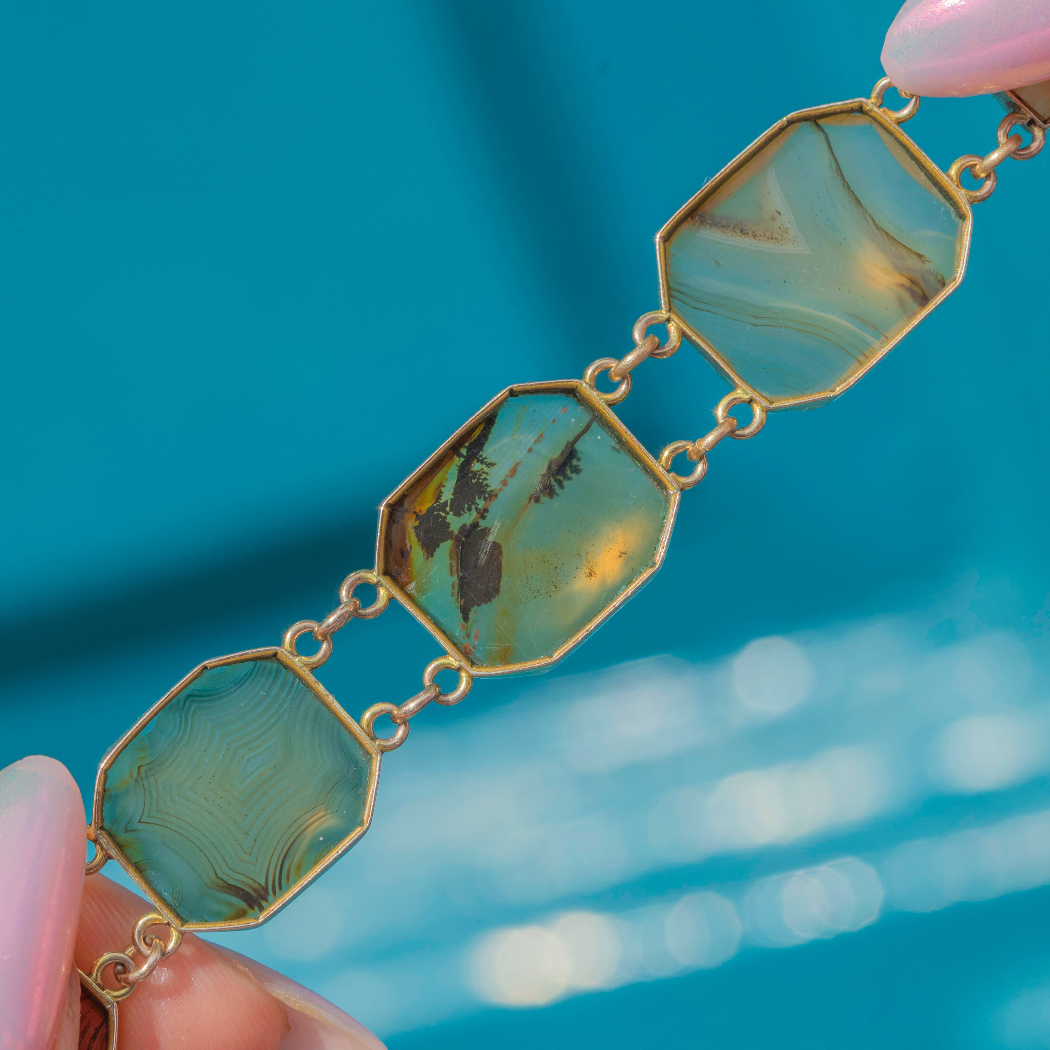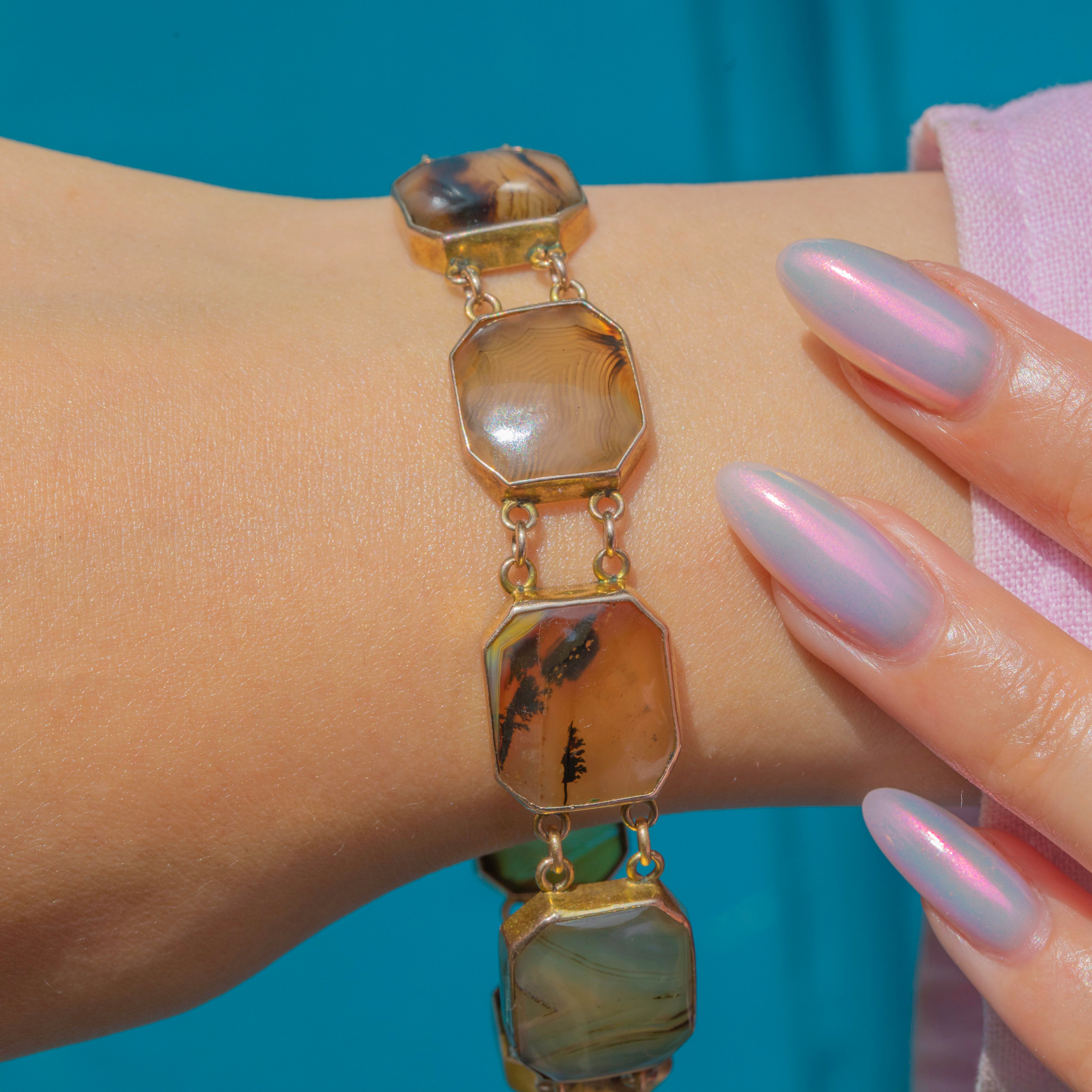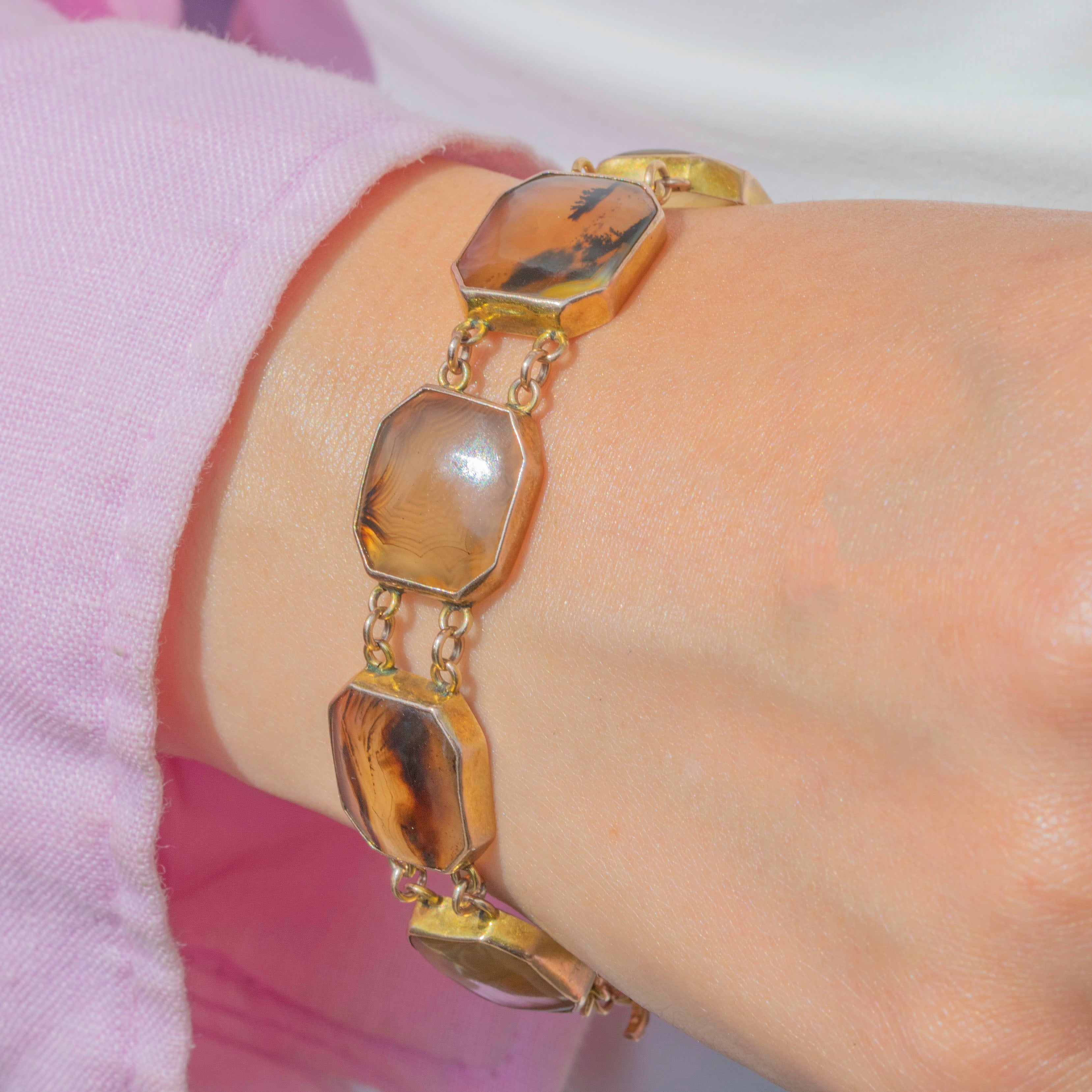 A charming Georgian Gold bracelet, formed from eight distinctly unique Dendritic Agate stones!