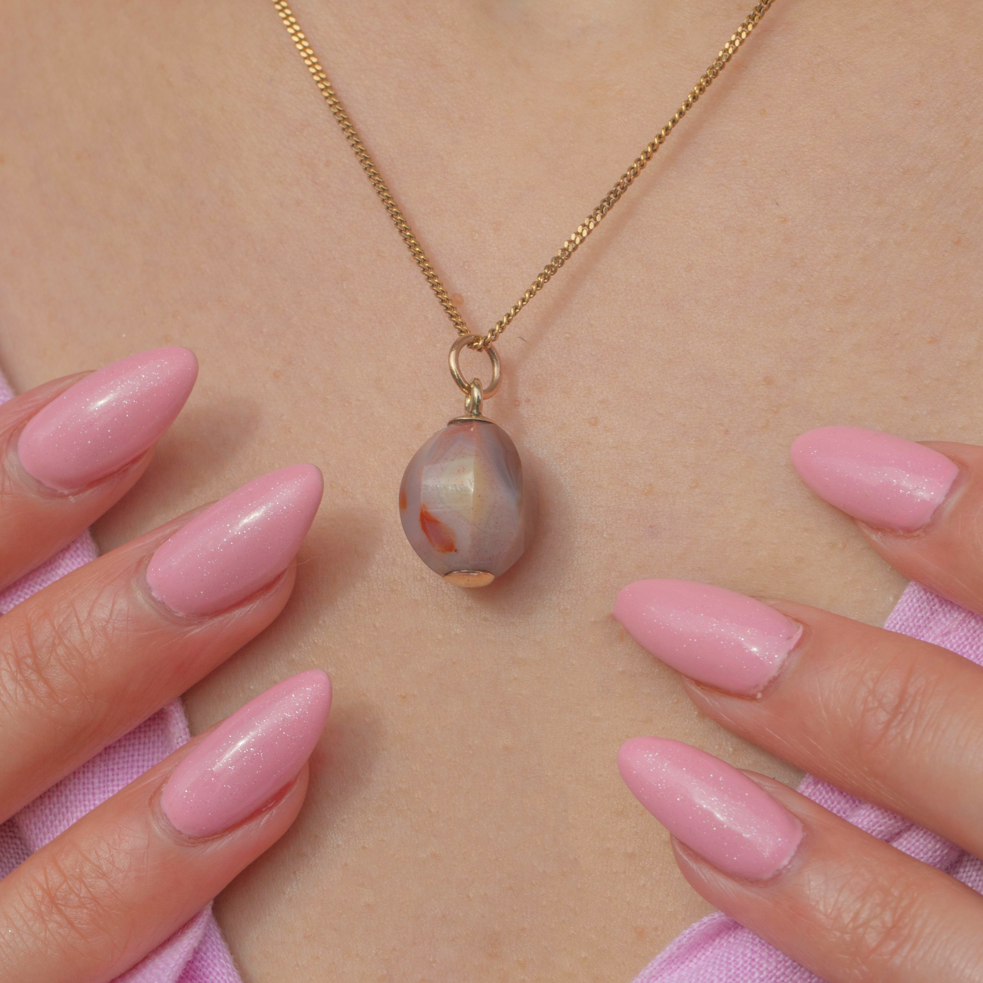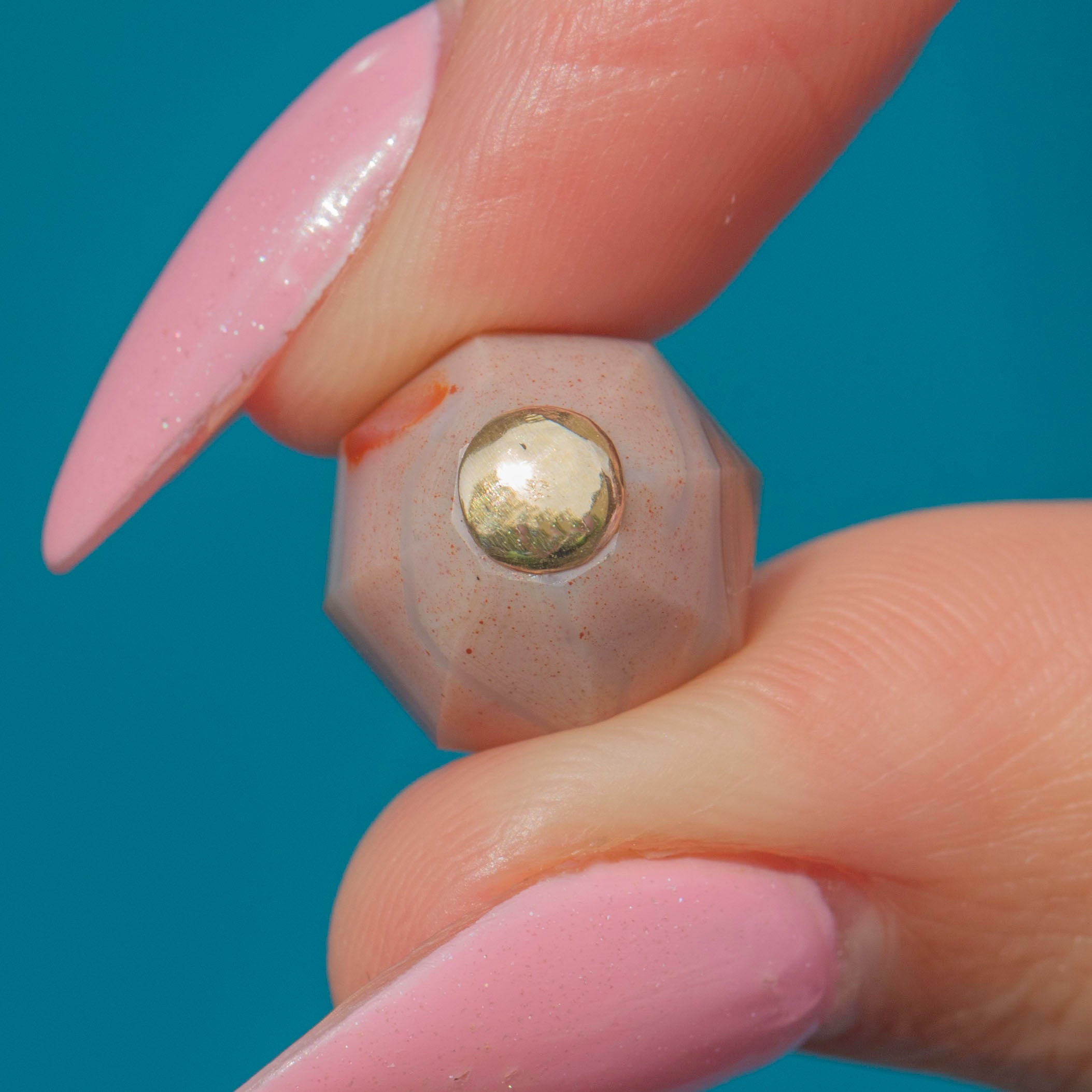 EXCELLENT: This Georgian 9ct Gold faceted Agate orb pendant remains in exceptional condition. The Agate is wonderfully faceted, with sharp, defined edges that reflect light beautifully. Set securely in its warm Gold mount, the piece is finished with a generously sized jump ring—offering versatile styling options to suit your personal look.