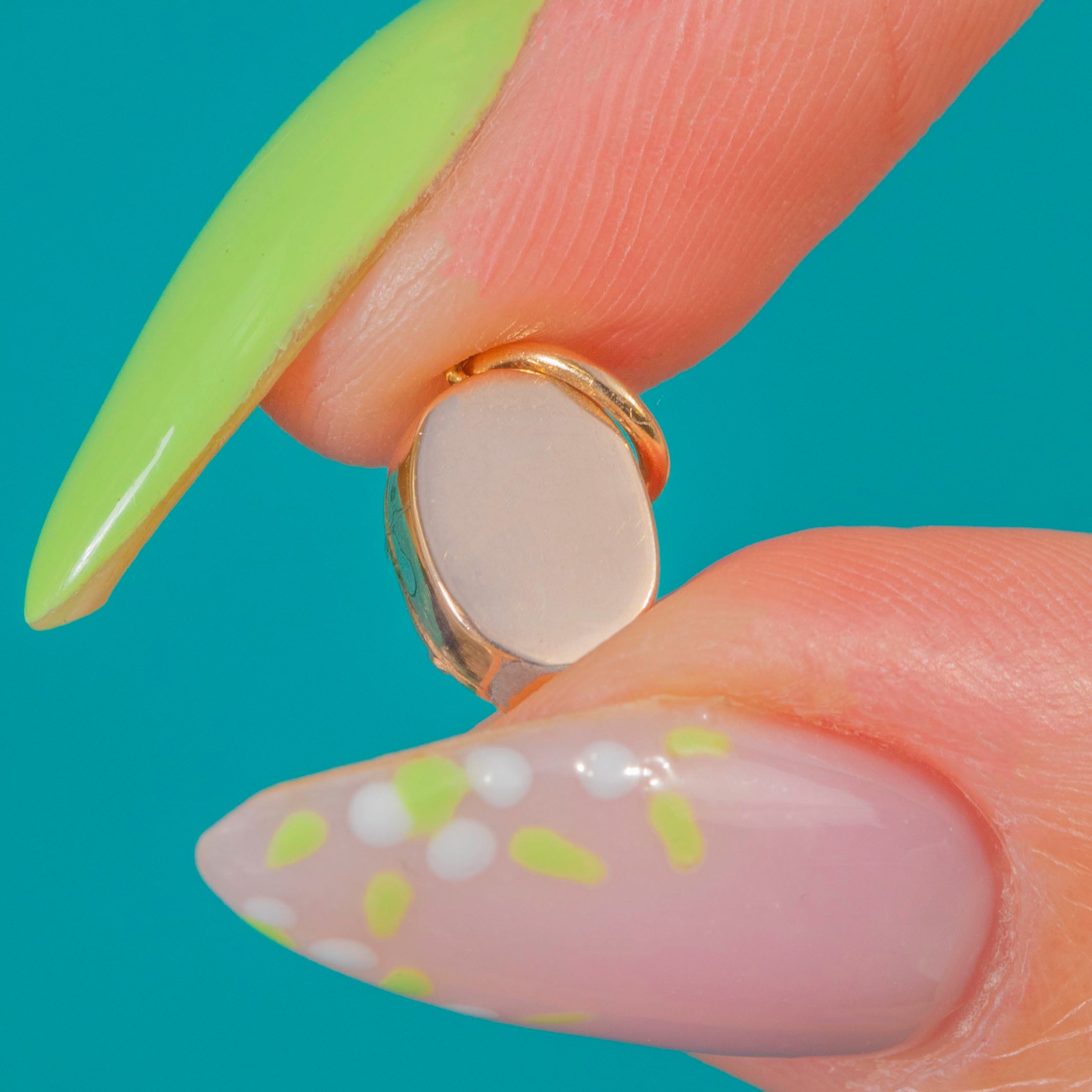 Petite and oh‑so elegant, this Georgian charm centres on a richly hued flat‑cut Garnet of approximately 0.75ct. The oval stone glows a deep claret red and is cradled in a refined 9ct Gold collet, its smooth silhouette offering timeless simplicity with a luxurious finish.