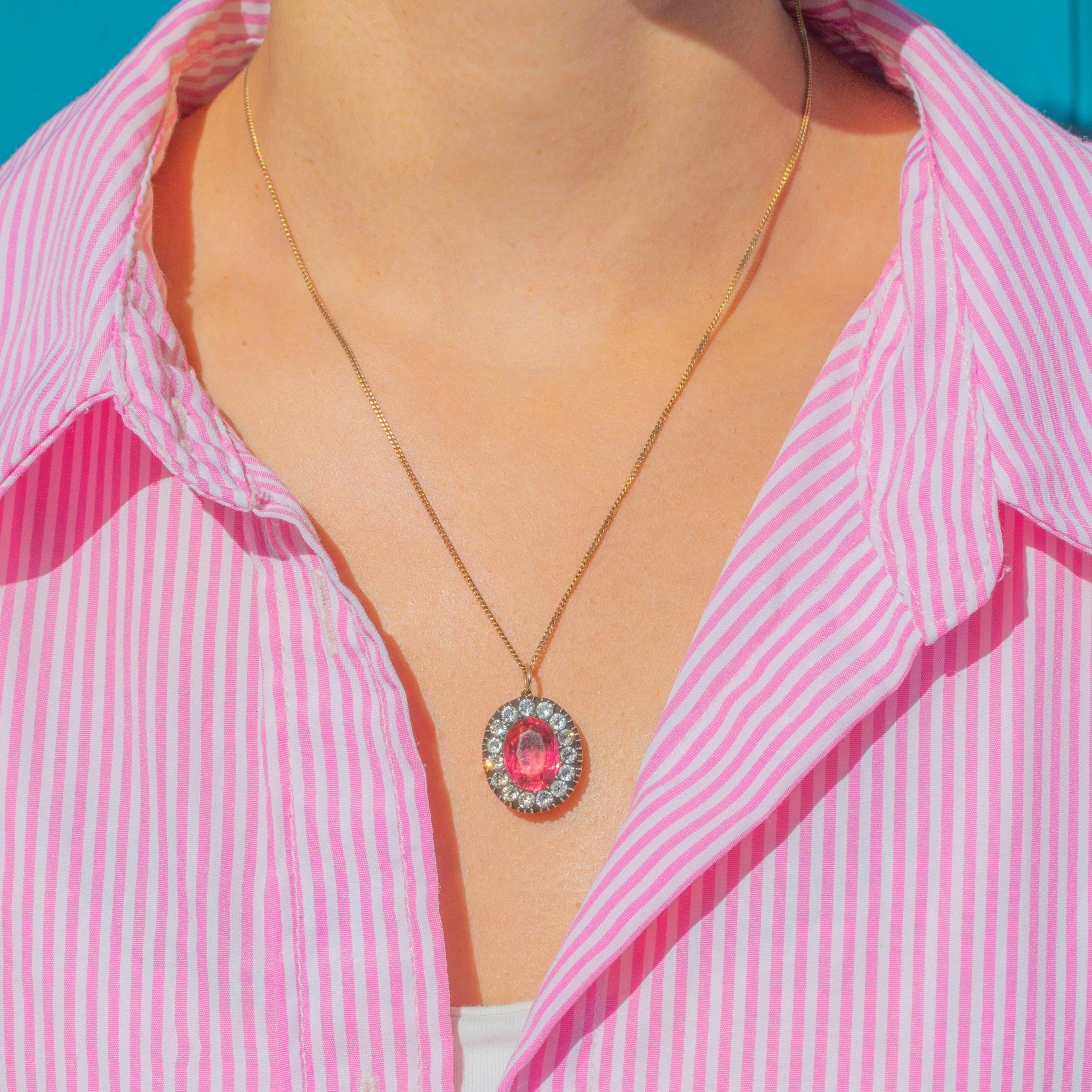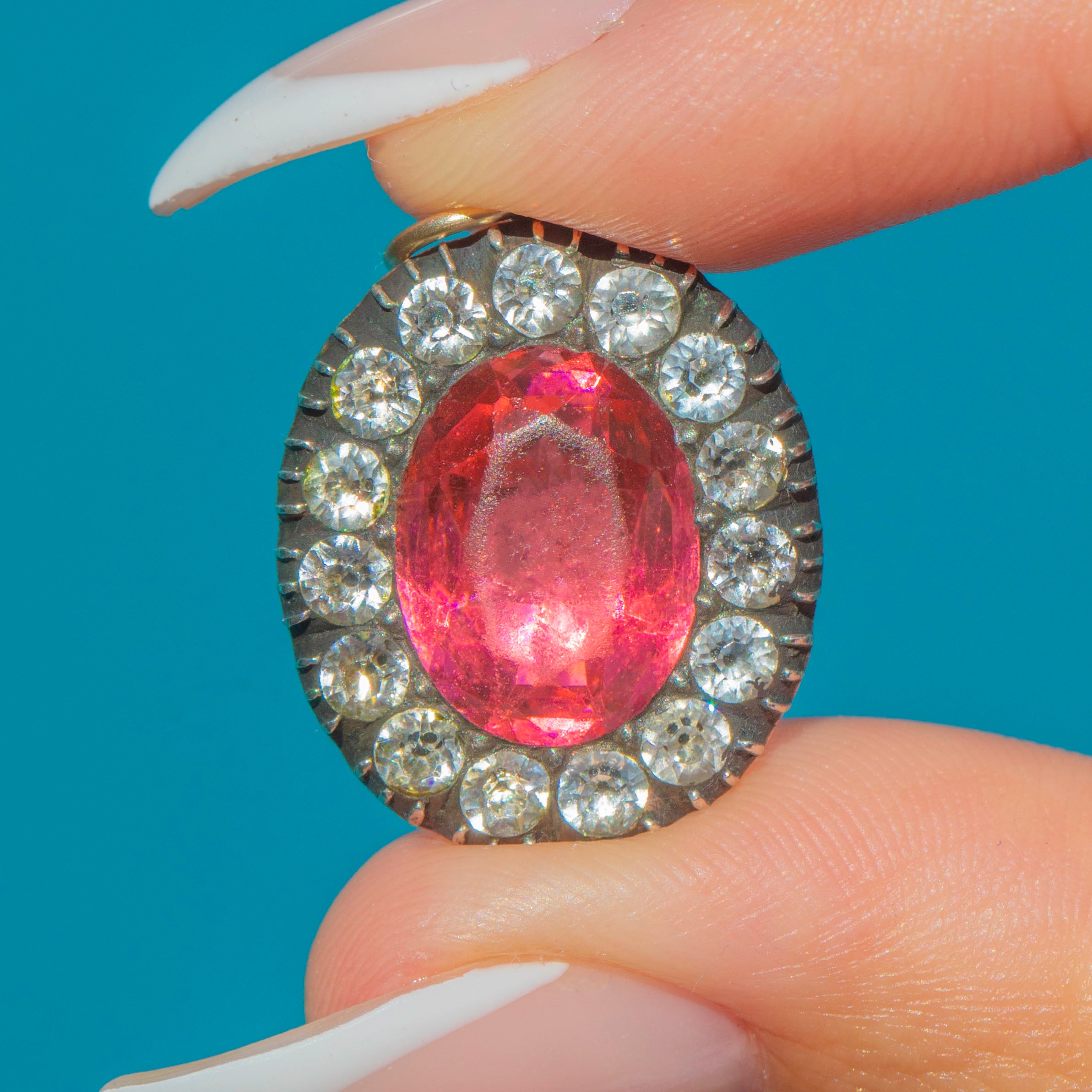 Georgian 9ct Gold & Silver Pink Paste Pendant, c.1820