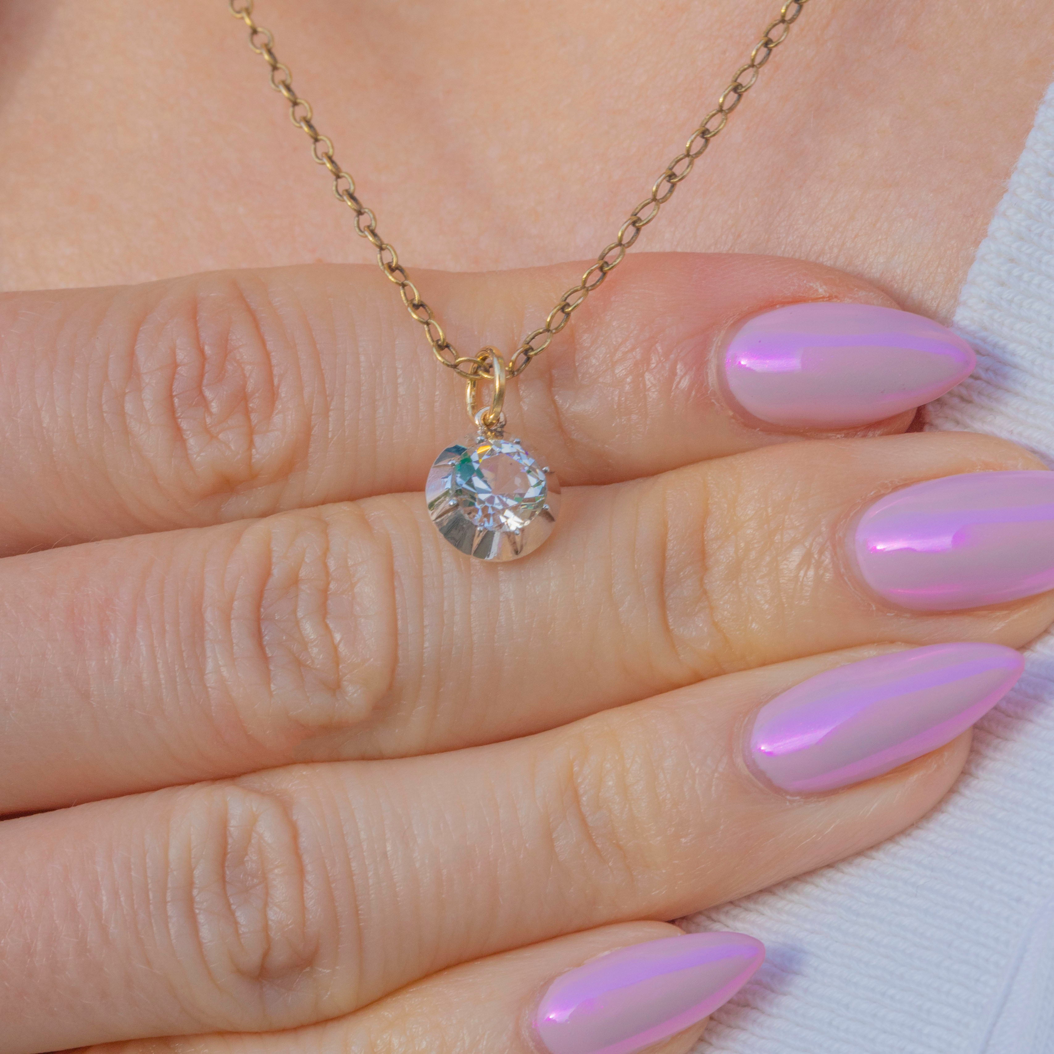 Petite yet punchy, it throws lovely antique sparkle and gives a convincing “Diamond” look—perfect for a fine chain or charm stack.