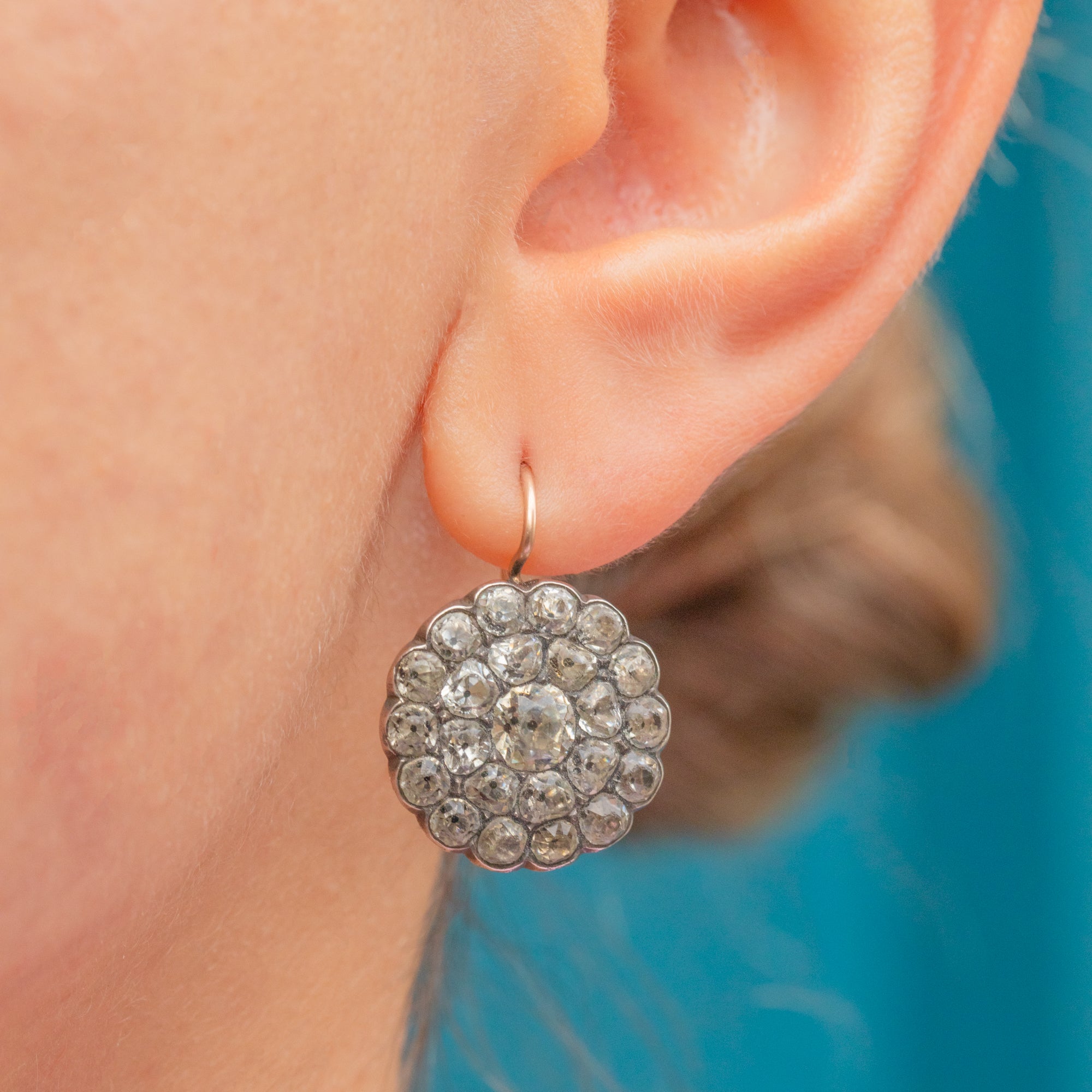 Georgian Paste Cluster Earrings with 9ct Gold Hooks